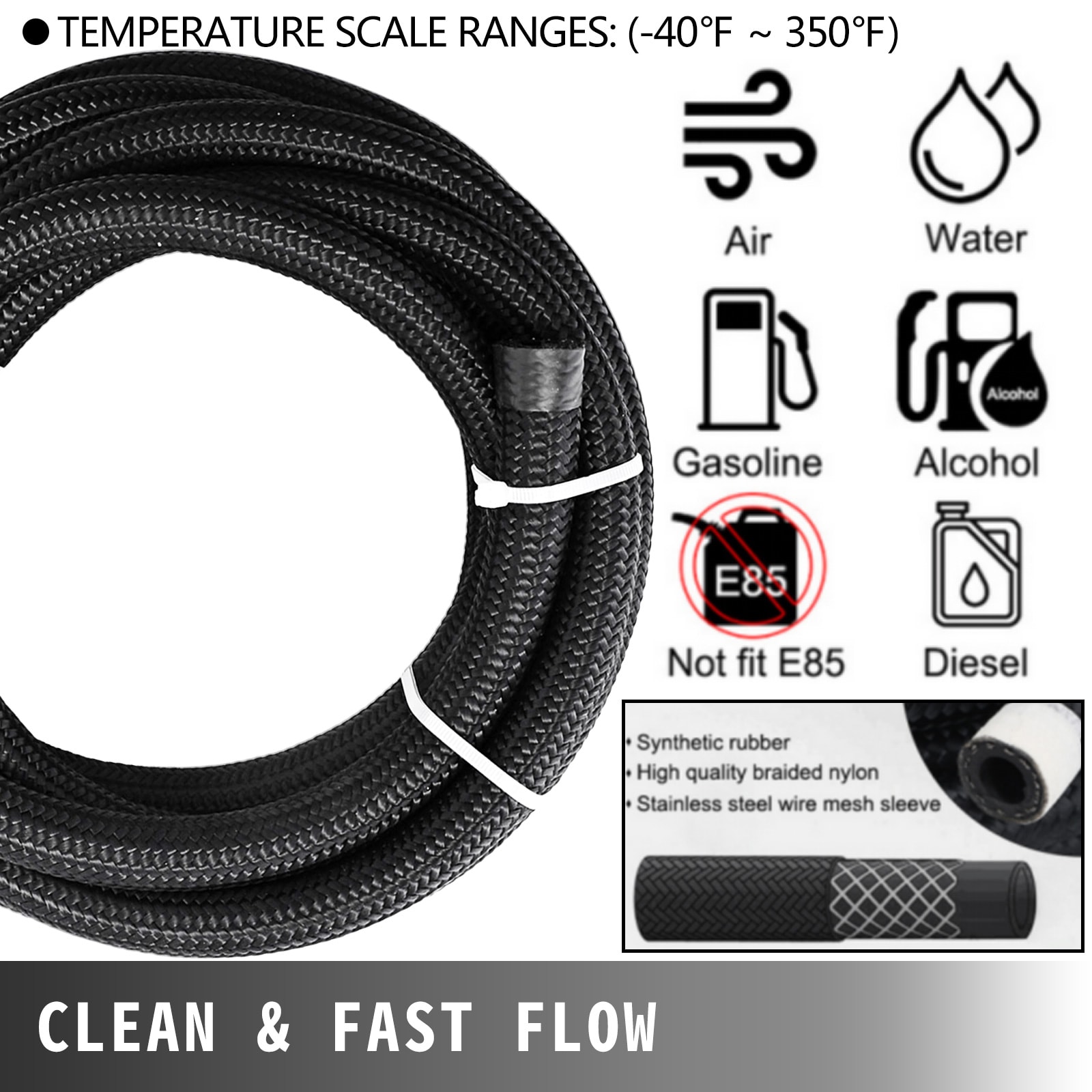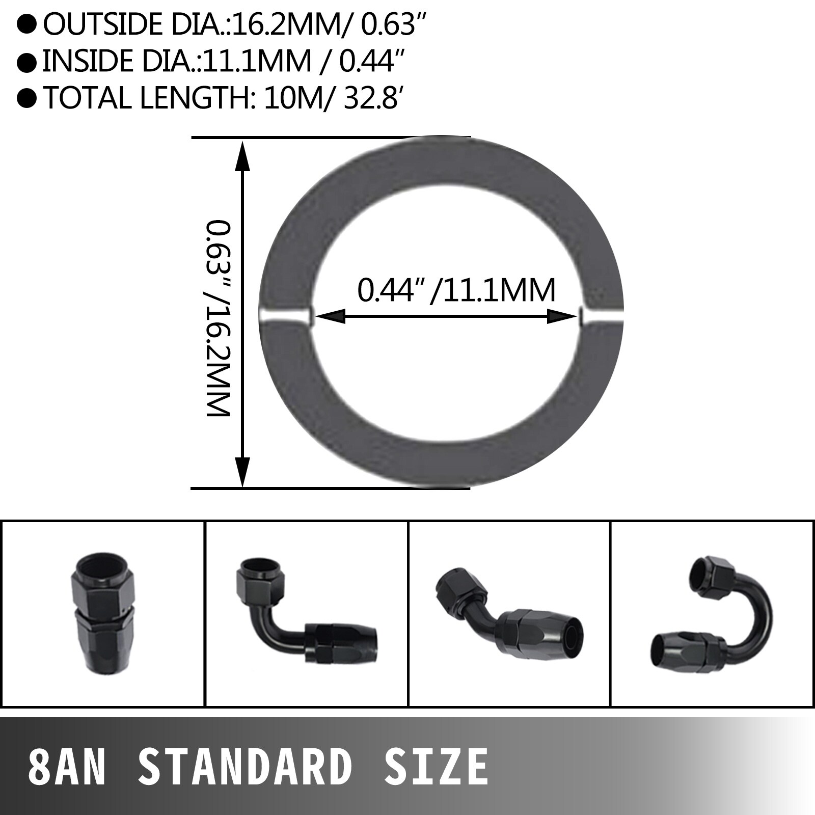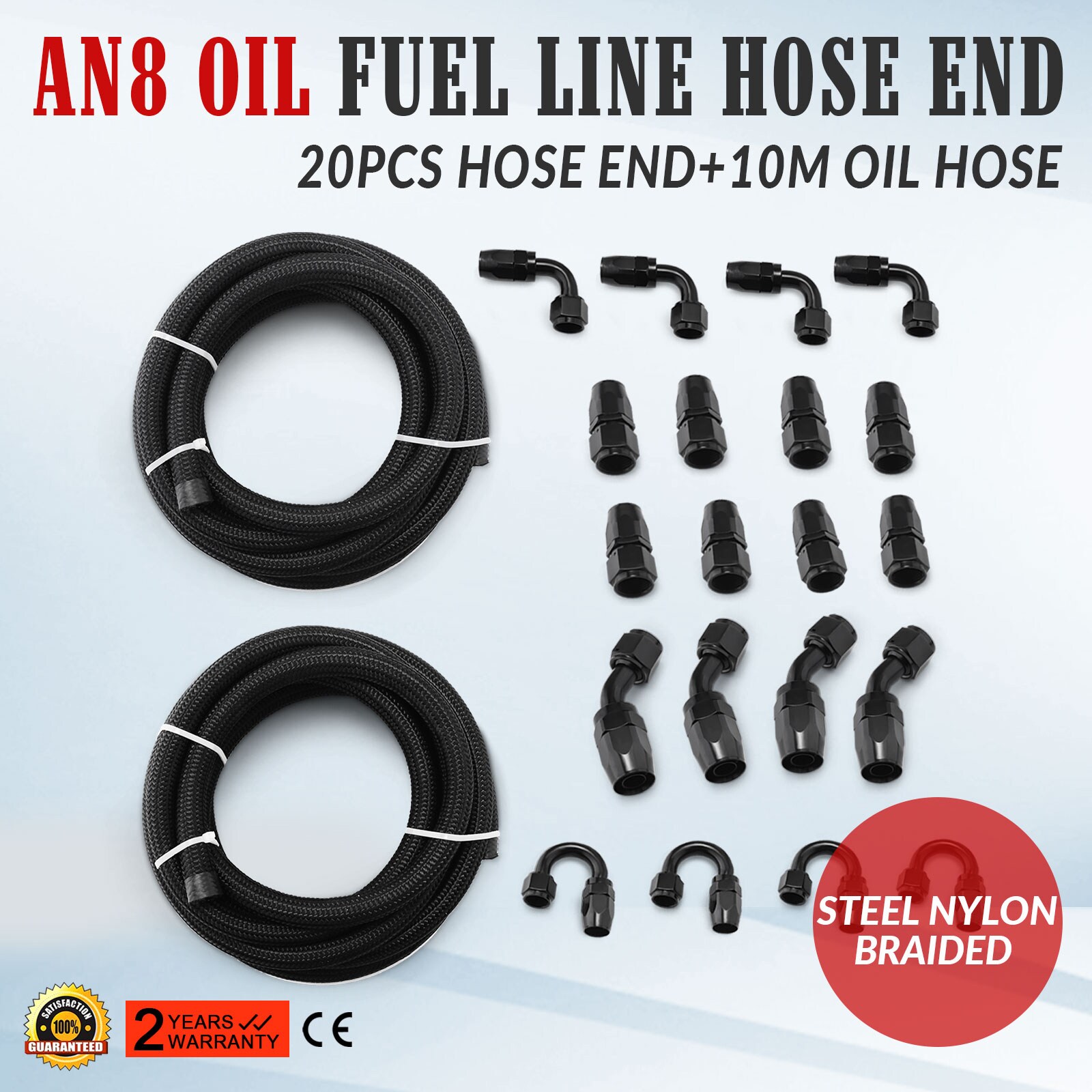 8AN Steel Nylon Braided Oil Fuel Hose Line Kit: This hose line fitting kit with 6an standards size, 20 pieces hose ends and 32.8ft braided fuel line; Superior to other fuel line kits in the market in standing heat and extreme circumstances; Fully equipped for all kinds of applications; [Package Content] 8 X AN-8 Straight Reusable Swivel Hose End; 4 X AN-8 45 Degree Reusable Swivel Hose End; 4 X AN-8 90 Degree Reusable Swivel Hose End; 4 X AN-8 180 Degree Reusable Swivel Hose End; 1 X AN-8 Stainless Steel Braided Hose