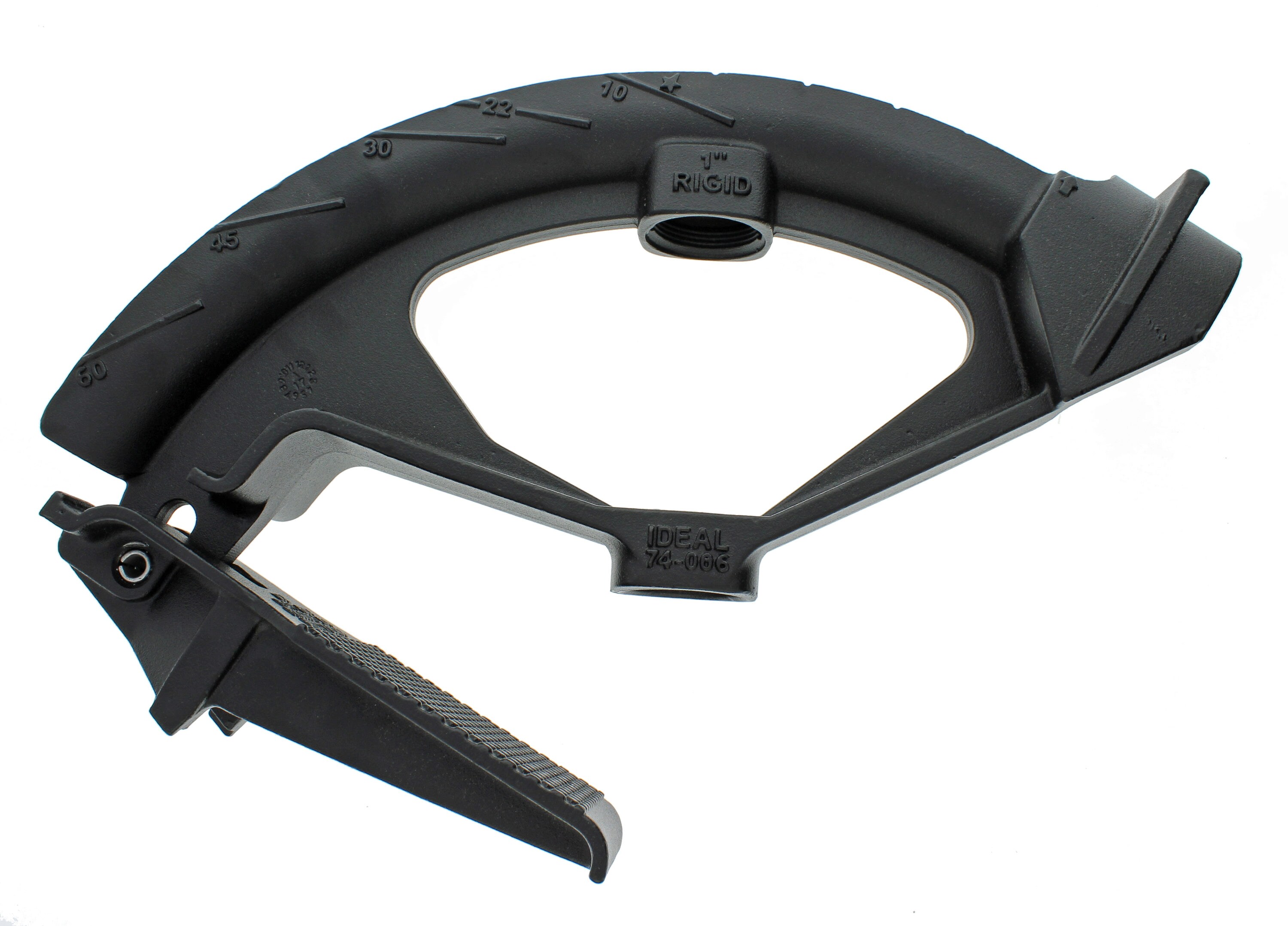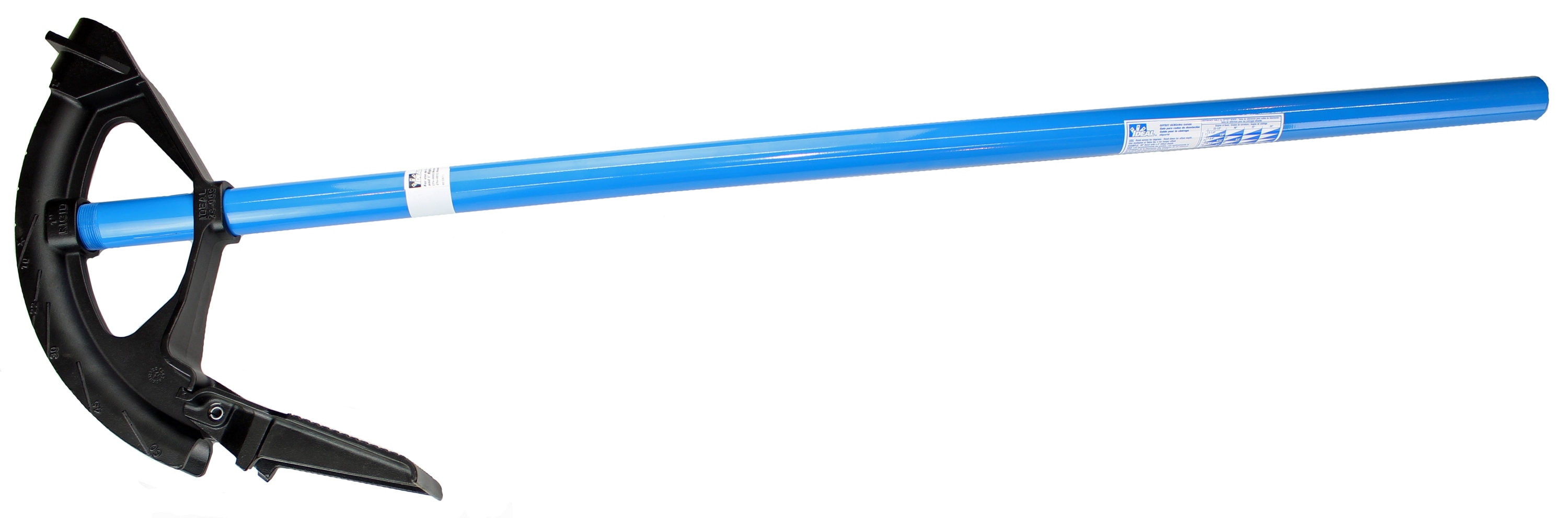 IDEAL iron conduit bender head with handle has ductile iron construction for exceptional durability and rugged construction that withstands a lifetime of heavy use. Bends conduit pipes to fit around any corner, ceiling, wall or irregularly shaped passageways. It features precision marks locating degree scale, star and arrow and rim notch for perfect bends every time.