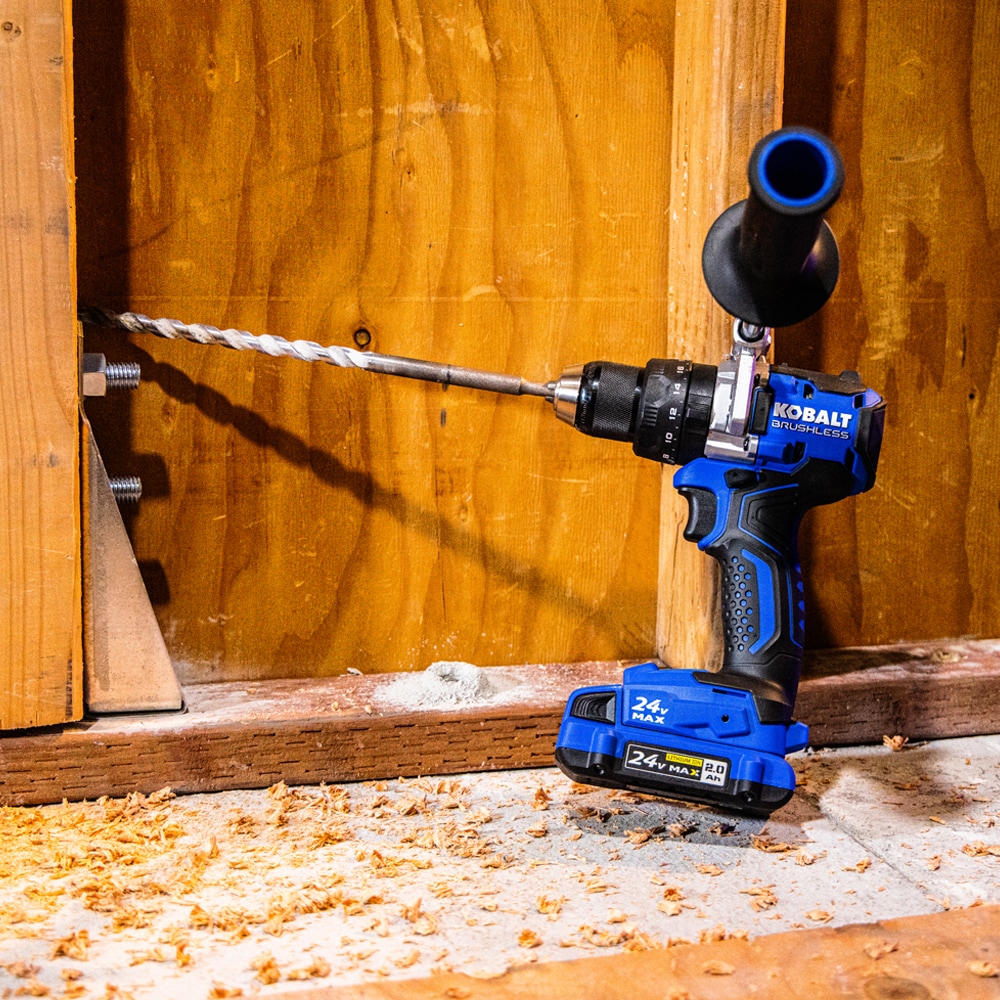 This new generation Kobalt hammer driver uses the most innovative electronics and motor technology in the industry to deliver up to 850 in-lb of torque and the performance to tackle any job. The new compact size allows the user to fit the tool into tighter spaces. The compact size offers a lightweight tool which maximizes productivity and reduces user fatigue on long workdays. The newly designed grip with soft overmold provides superior comfort along with improved balance makes this tool the go-to for every job. The Kobalt hammer drill is equipped with a 2-speed mechanical gear box; Speed 1 provides 550 RPM while speed 2 provides 2000 RPM. Hammer mode delivers up to 32,000 blows per minute (BPM). Easily select between hammer, drill, and screwdriver mode using independent selector ring. A second selector ring provides 24 clutch settings. The metal gear case and nylon plastic handle maximizes durability. A bright LED is located on the foot of the tool to provide lighting on the workpiece. The Kobalt hammer drill includes a premium Jacobs brand metal 1/2-in ratcheting chuck for increased durability. A 2-position bit holder and metal belt clip are included with mounting positions on both sides of the tool. A metal auxiliary handle with comfortable grip is included for increased safety in bit binding conditions. The included soft bag is provided for added convenience of storing and transporting.