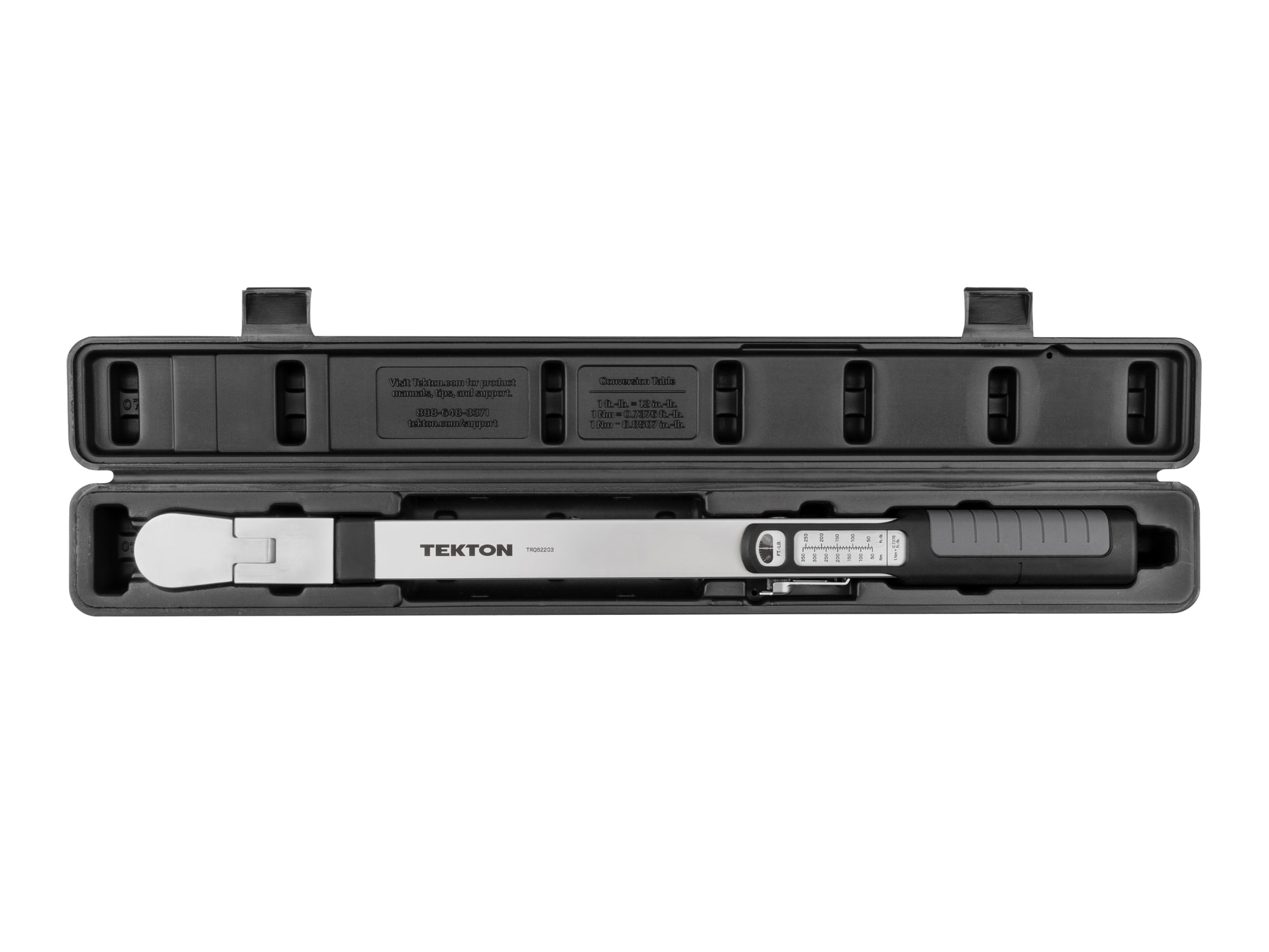 Each TEKTON 1/2 Inch Drive Split Beam Torque Wrench is serialized and calibrated according to the ASME B107.300-2010 standard. The detailed test results are recorded on the included calibration certificate. Unlike other torque wrench designs, this wrench can be stored at any torque setting without losing accuracy.