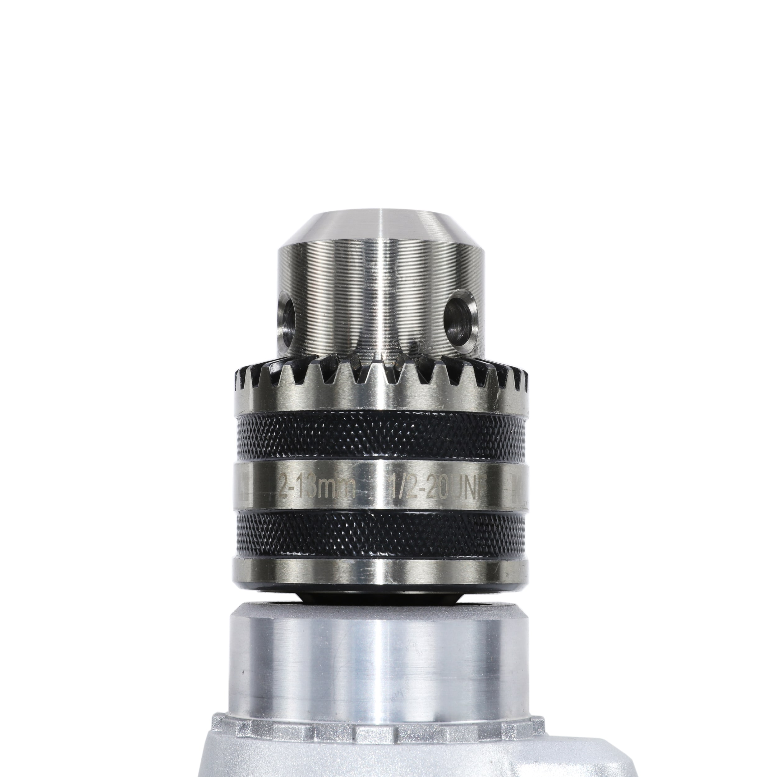 This powerful 9-amp reversible drill offers high torque for heavy-duty applications. The 2-finger variable-speed trigger delivers 0-850-RPM for versatility and control, and the auxiliary handle with a cam lever allows for quick and secure repositioning. A 1/2-in all-metal keyed chuck accepts a variety of bits and provides greater bit retention and durability, while a flexible key strap means you can tighten the chuck without detaching the key. For added safety, a live wire indicator turns on when the drill is plugged in to a power source.