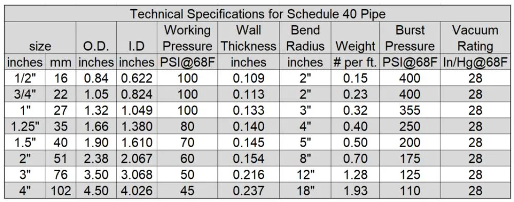 Pipe Schedule: Schedule 40