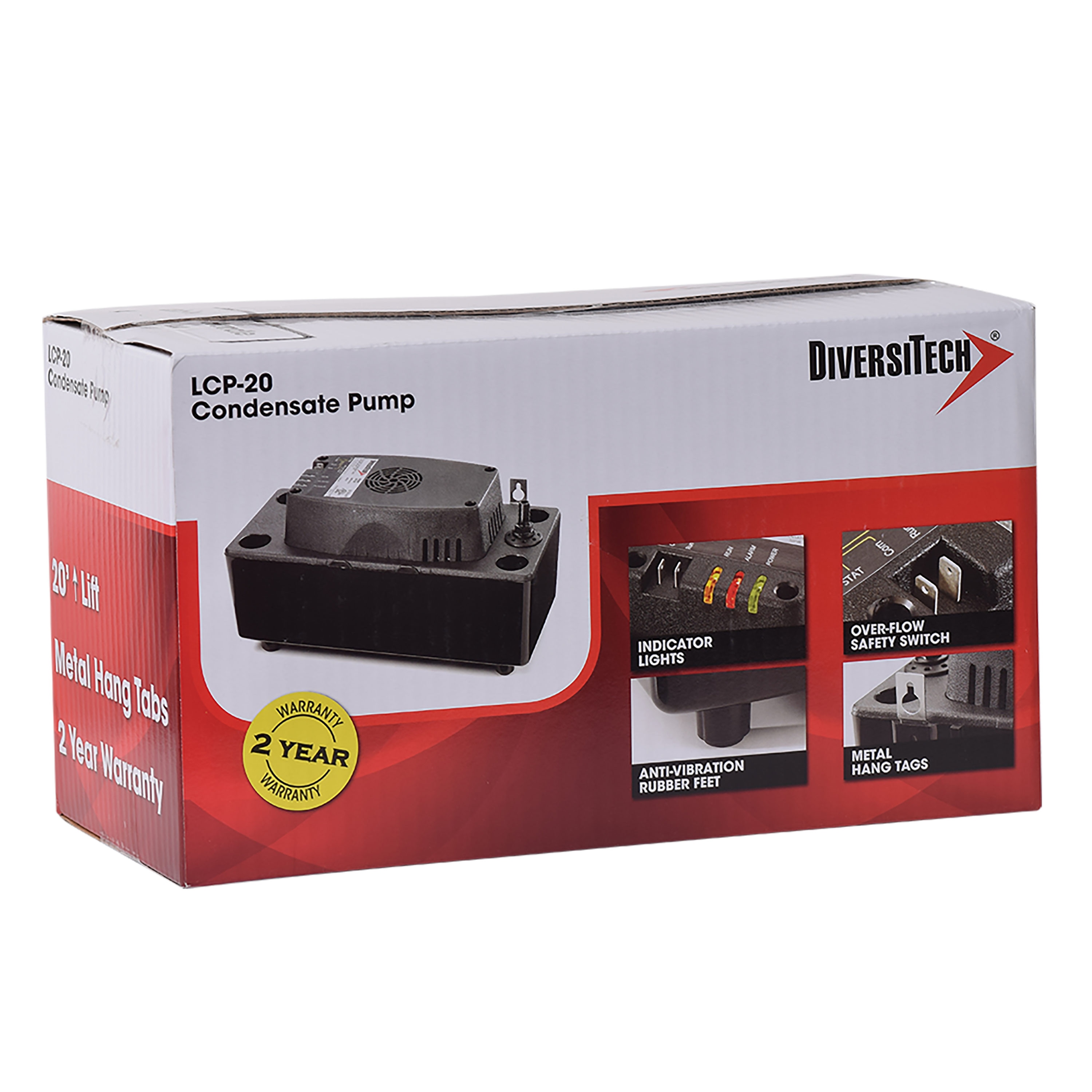 Application: Product designed to automatically pump condensate water produced by A/C units, dehumidifiers with up to 20 feet vertically once the level of condensate in the pump reservoir reaches a specified level