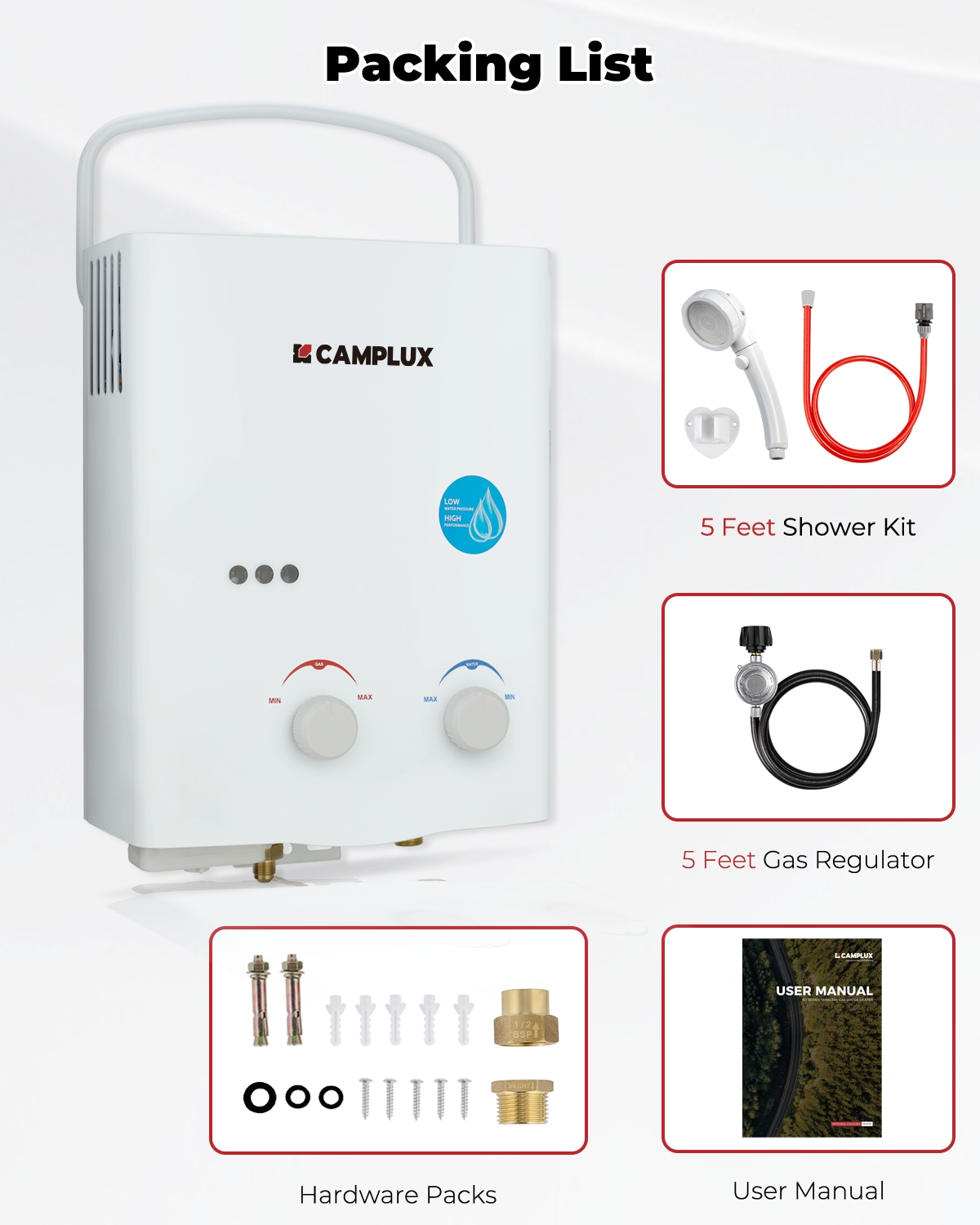 Camplux is a brand that specializes in outdoor gas tankless water heater. Camplux tankless water heaters are designed to provide hot water instantly, making them ideal for outdoor showers, washing dishes, or any other activity that requires hot water in remote locations. These water heaters are compact, easy to install, and operate using propane gas. They are energy-efficient and offer a continuous supply of hot water, which is a significant advantage for people who enjoy camping or living off-grid.