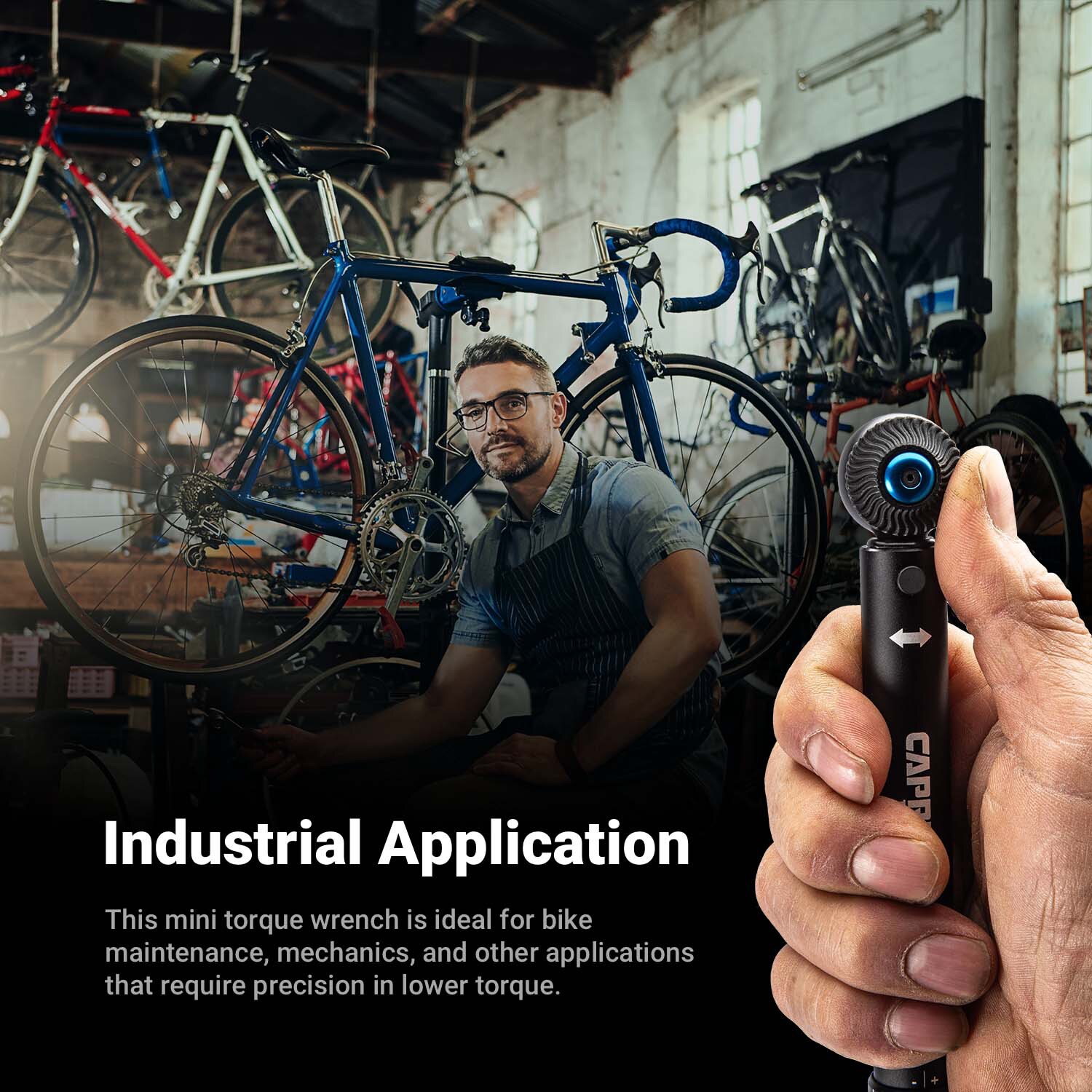 The Capri Tools 1/4 in. Drive Mini Torque Wrench is essential for working with bolts and fasteners in confined areas where larger torque wrench doesn’t fit comfortably. The 3-16 Nm torque range (in 0.1 Nm increments) and +-4% CW/CCW accuracy give you the precision you need in the lower torque range. It has a light and durable matte black anodized aluminum body and weighs just 1.7 lbs. It has a certified +-4% CW/CCW accuracy and a Certificate of Conformance with individualized traceable serial number is included. Set includes (1) hex socket adapter, (1) extension bar, (5) slotted screwdriver bits: 3, 4, 5, 5.5, 6 mm, (4) Phillips screwdriver bits: PH0, PH1, PH2, PH3, (6) hex screwdriver bits: 3, 4, 5, 6, 8, 10 mm, and (4) star screwdriver bits: T10, R15, T25, T30, organized in a premium custom carry case.