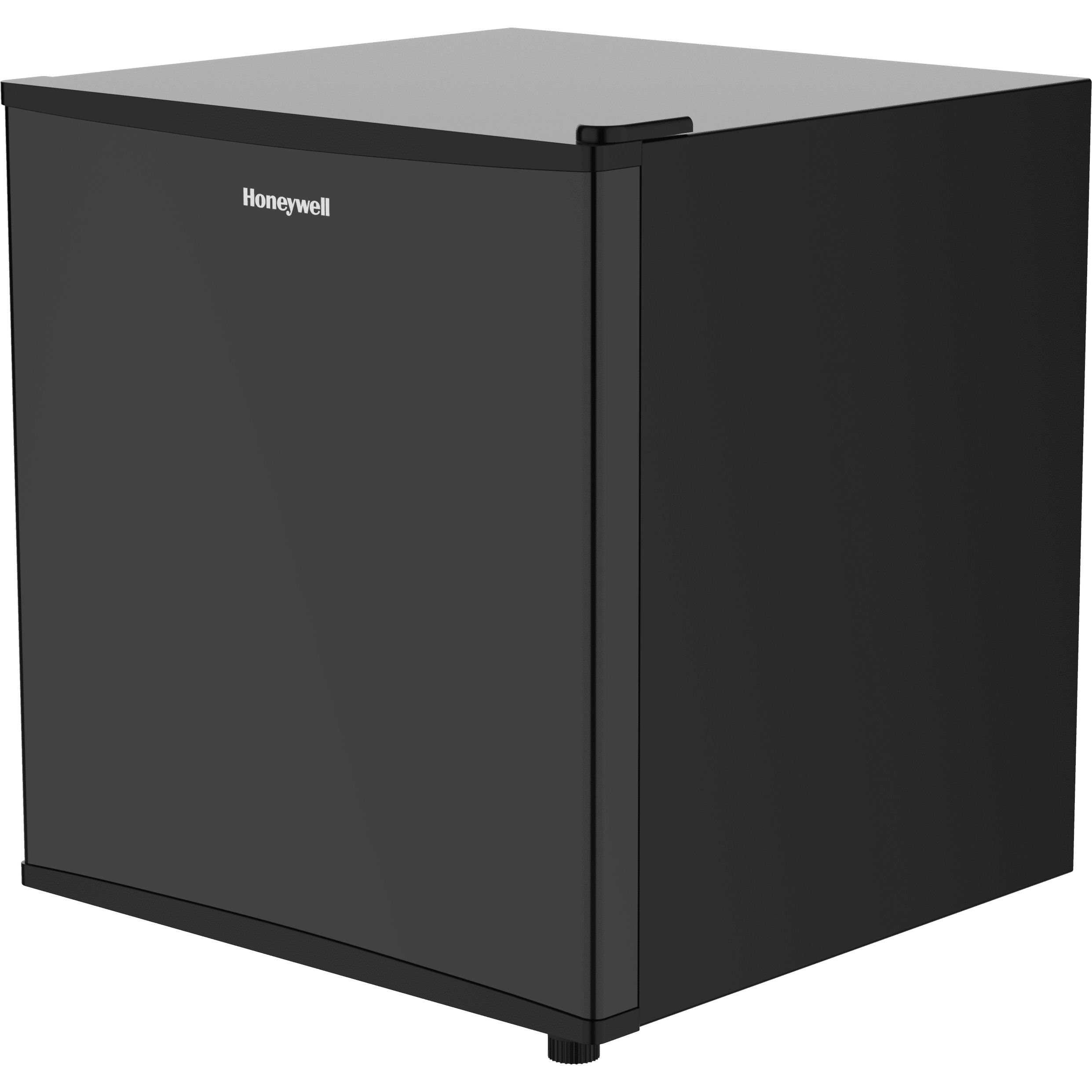 Black compact refrigerator 1.6 cubic ft.mini fridge with freezer, single door, low noise, and adjustable temperature settings for bedroom, office, or dorm room.