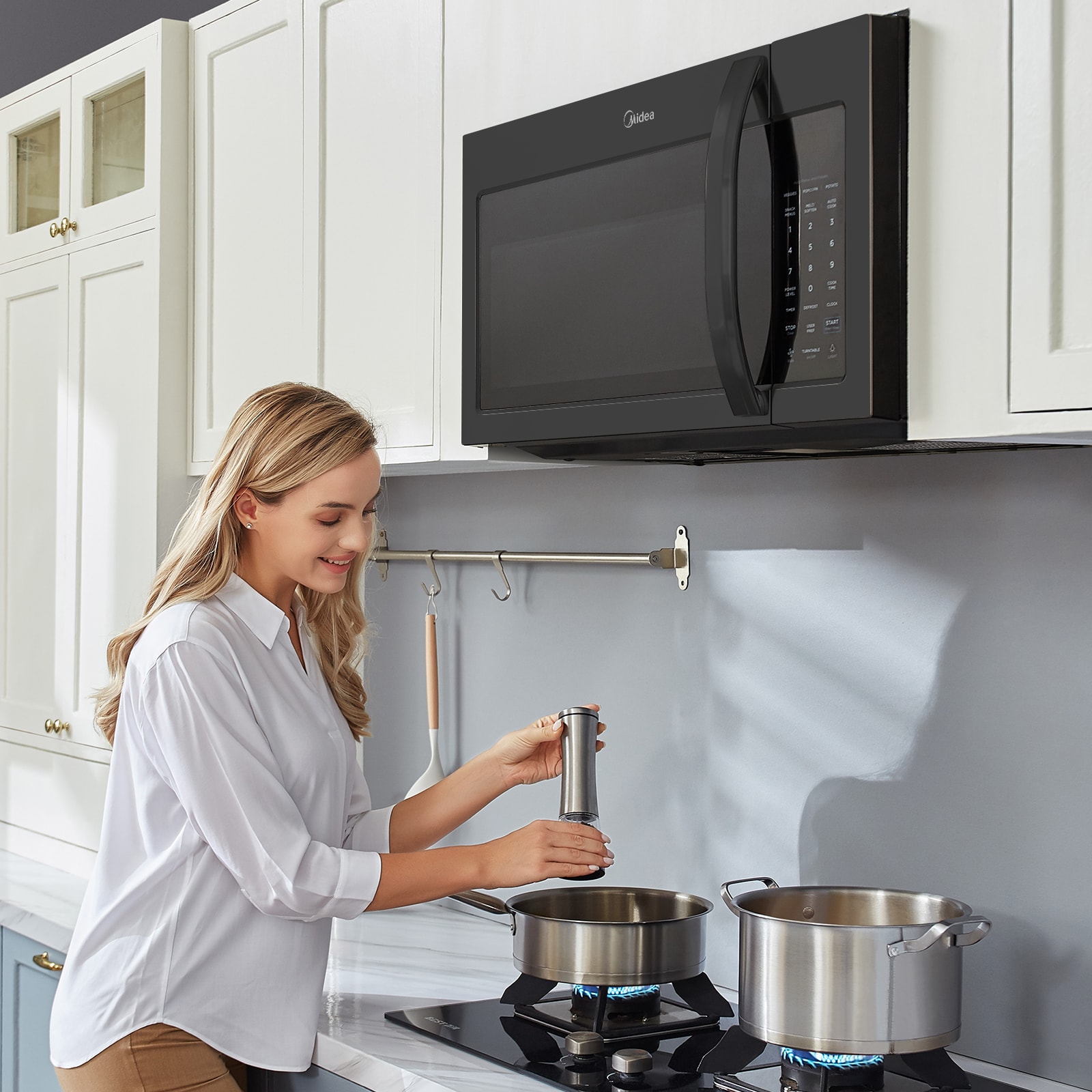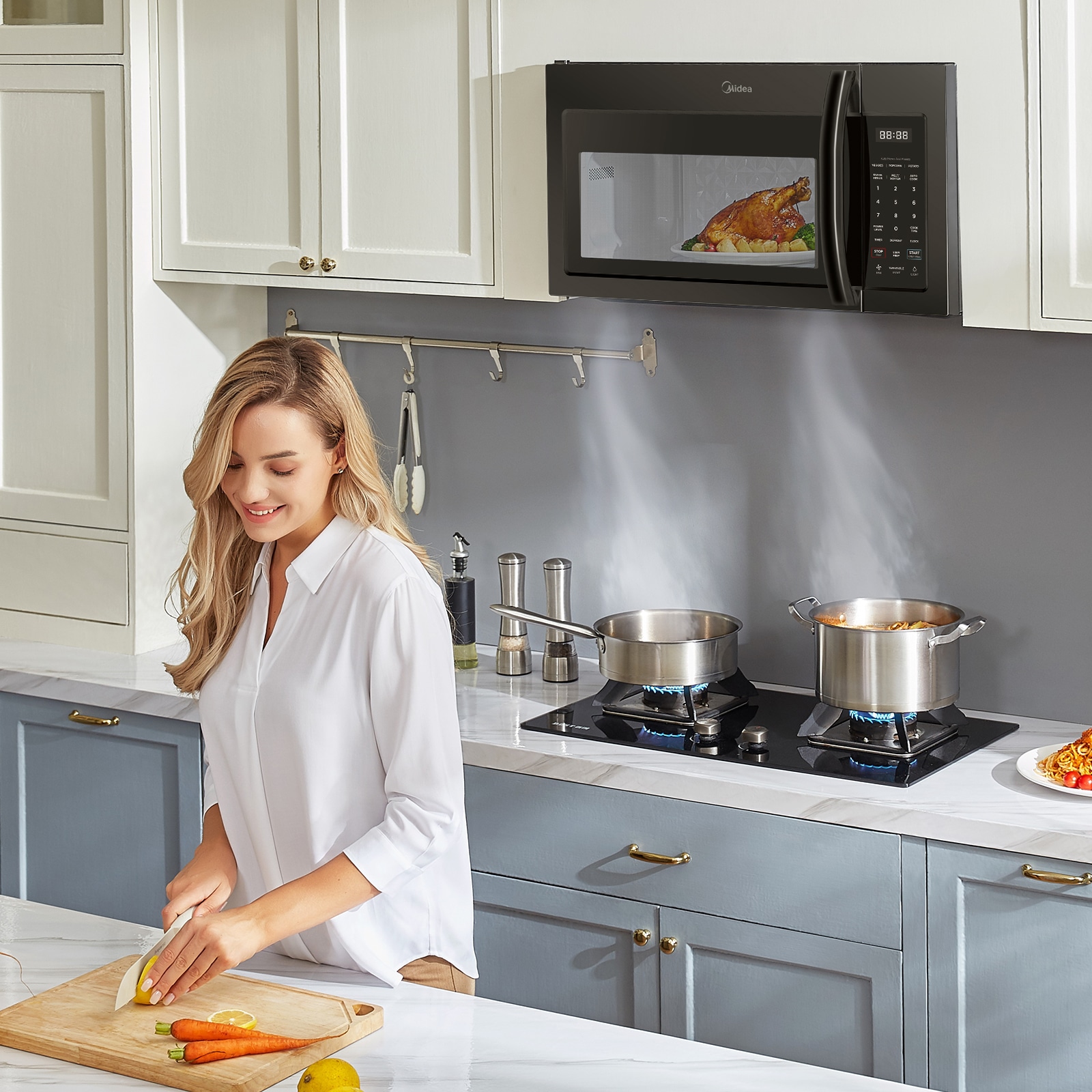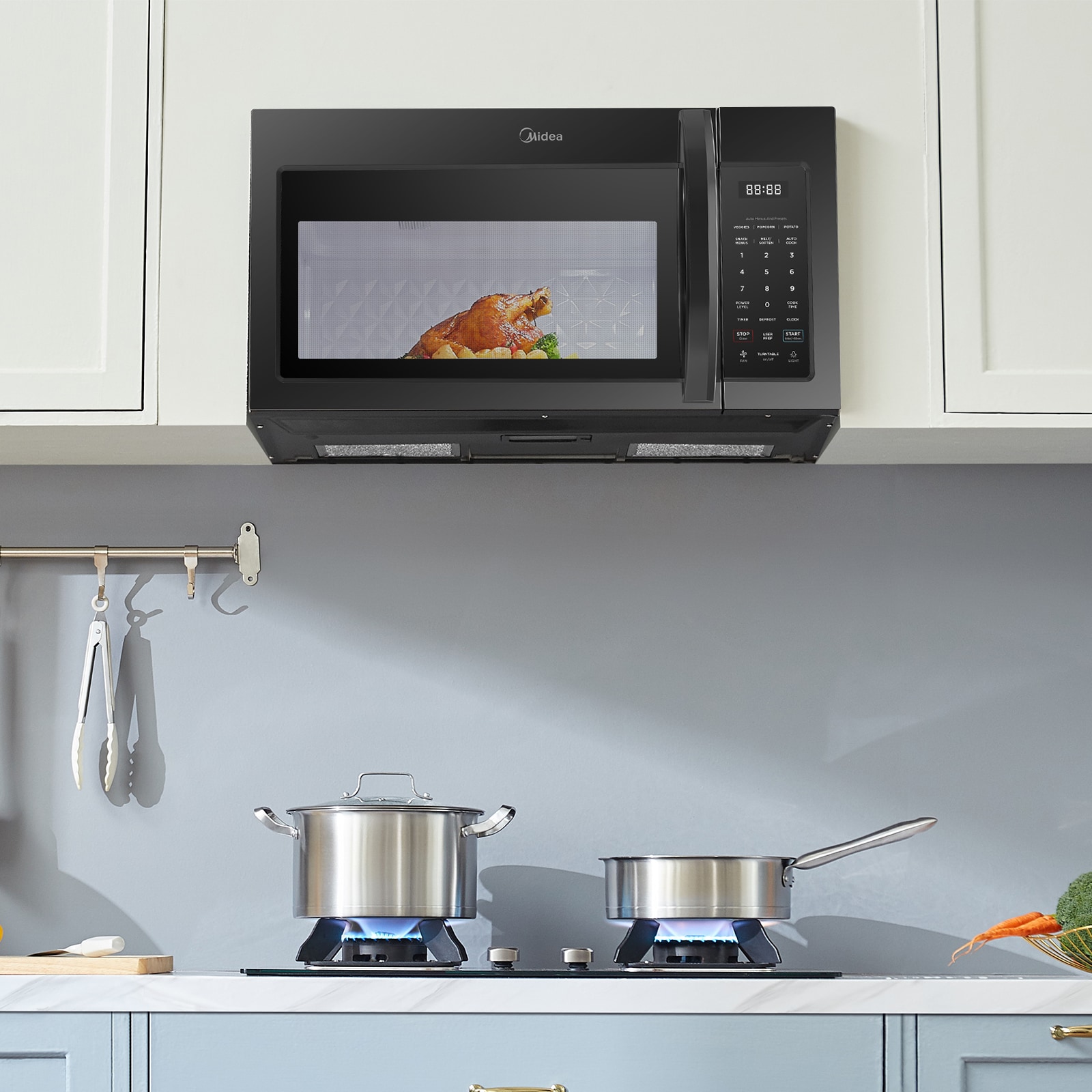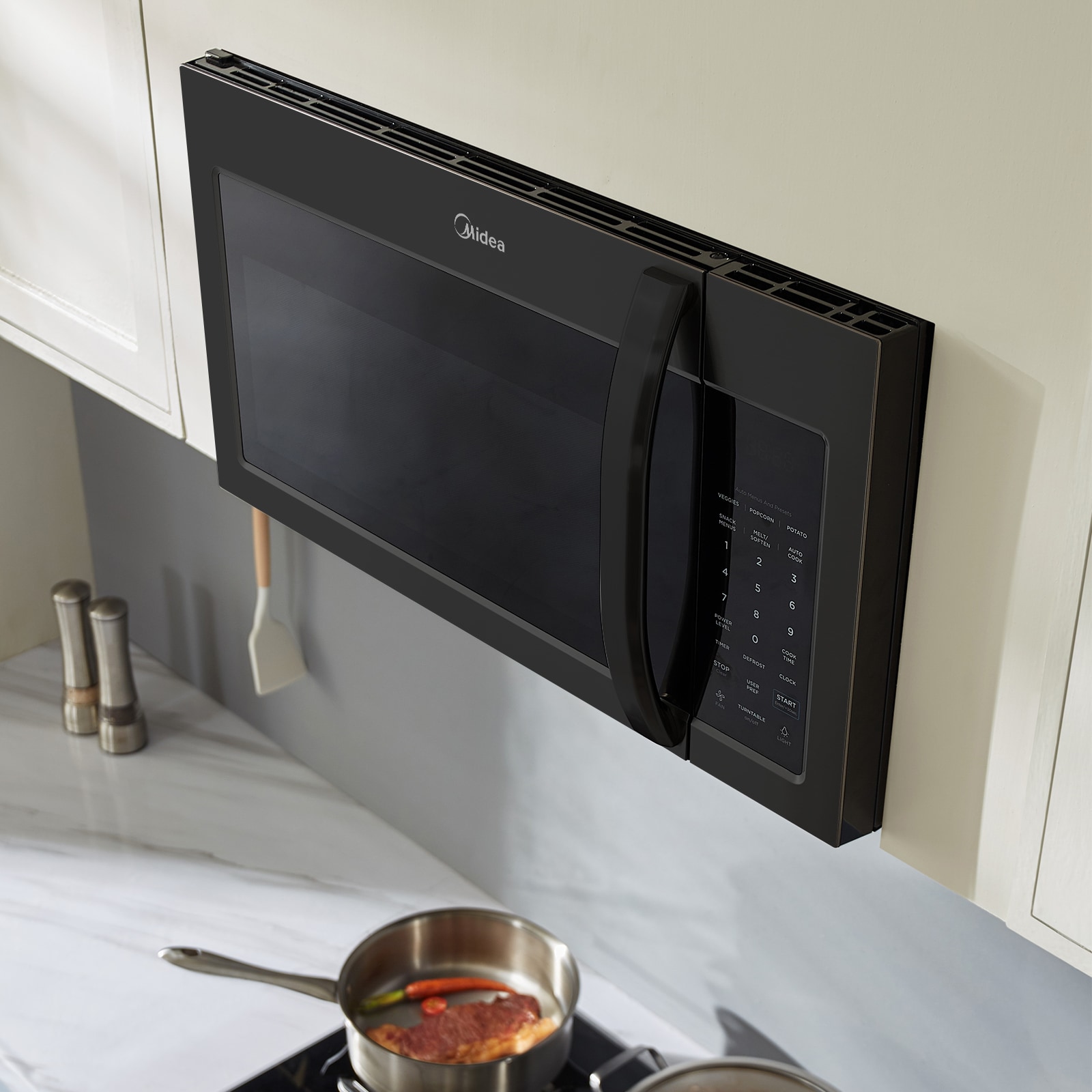 With its modern and versatile design, our Over-the-Range Microwave is perfect for upgrading your kitchen. This microwave offers 1.7 cubic feet of capacity, allowing you to easily heat up large plates of food. Its 2-Speed 300 CFM fan quickly refreshes the air above your cooktop to remove steam and odors. You can also connect your microwave to the SmartHome app to utilize voice commands, adjust settings, and monitor cooking progress from your phone. Like all Midea appliances, this microwave is covered by an industry-leading 2-year parts and labor warranty.