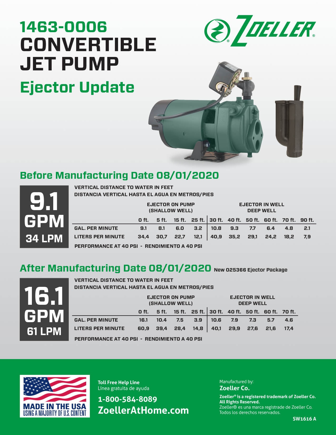 Package Contents: Pro convertible jet pump w/ejector – 1 HP cast iron