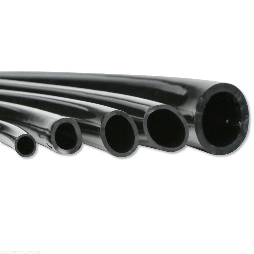 This Black Vinyl Tubing is lightweight and flexible and is widely used in water gardens, aquariums, fish hatcheries, and a multitude of other industries for transport of liquids, gases and some light solids. Our black tubing has an 80 Shore A Durometer and may be steam sterilized. Black vinyl tubing is recommended in water gardening and fountain applications since it is generally not able to be seen in ponds and water gardens. Manufactured to have a smooth interior and exterior, our black vinyl tubing prevents solid or sediment build up. It is lightweight, strong, yet very flexible and can easily hold up under situations requiring rough handling. Trimming or cutting it is simple, most sizes can but cut with scissors or heavy duty shears. Black vinyl tubing easily conforms to barbed vinyl tubing fittings and connectors and is clamped using hose, wire or ratcheting clamps. The smooth interior reduces friction, boosting your efficiency and lowering your overall operating cost. It also coils easily for storage and transport.