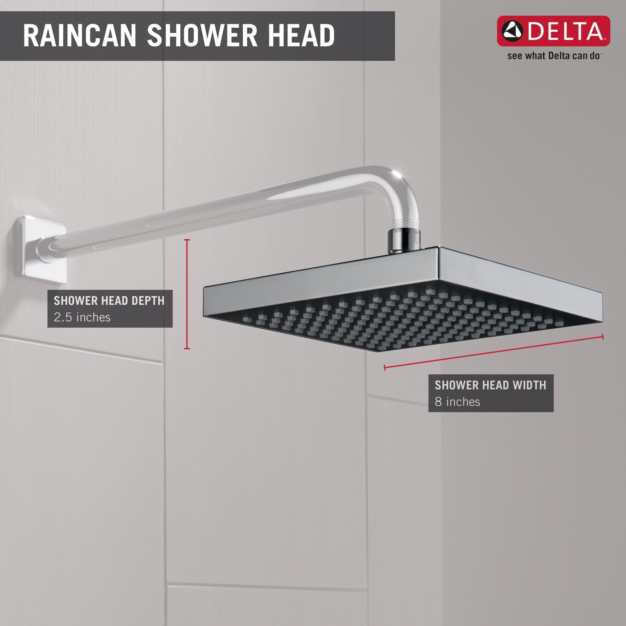 Soft, rubber spray holes allow you to easily wipe away calcium and lime build-up from the spray face of your showerhead and hand shower with the touch of a finger Spray settings include: Soft Rain 2 1/2″ shower head length Single function raincan design