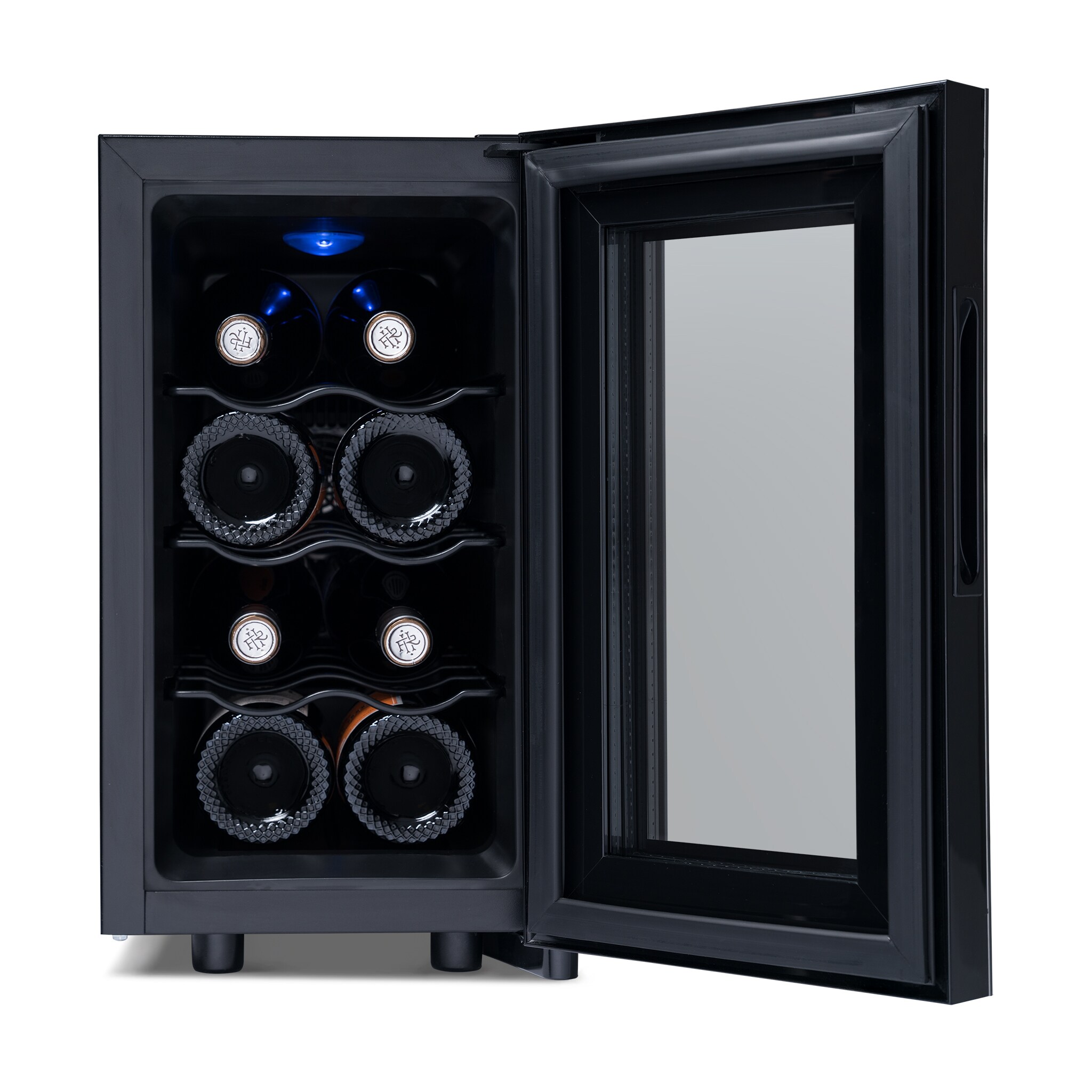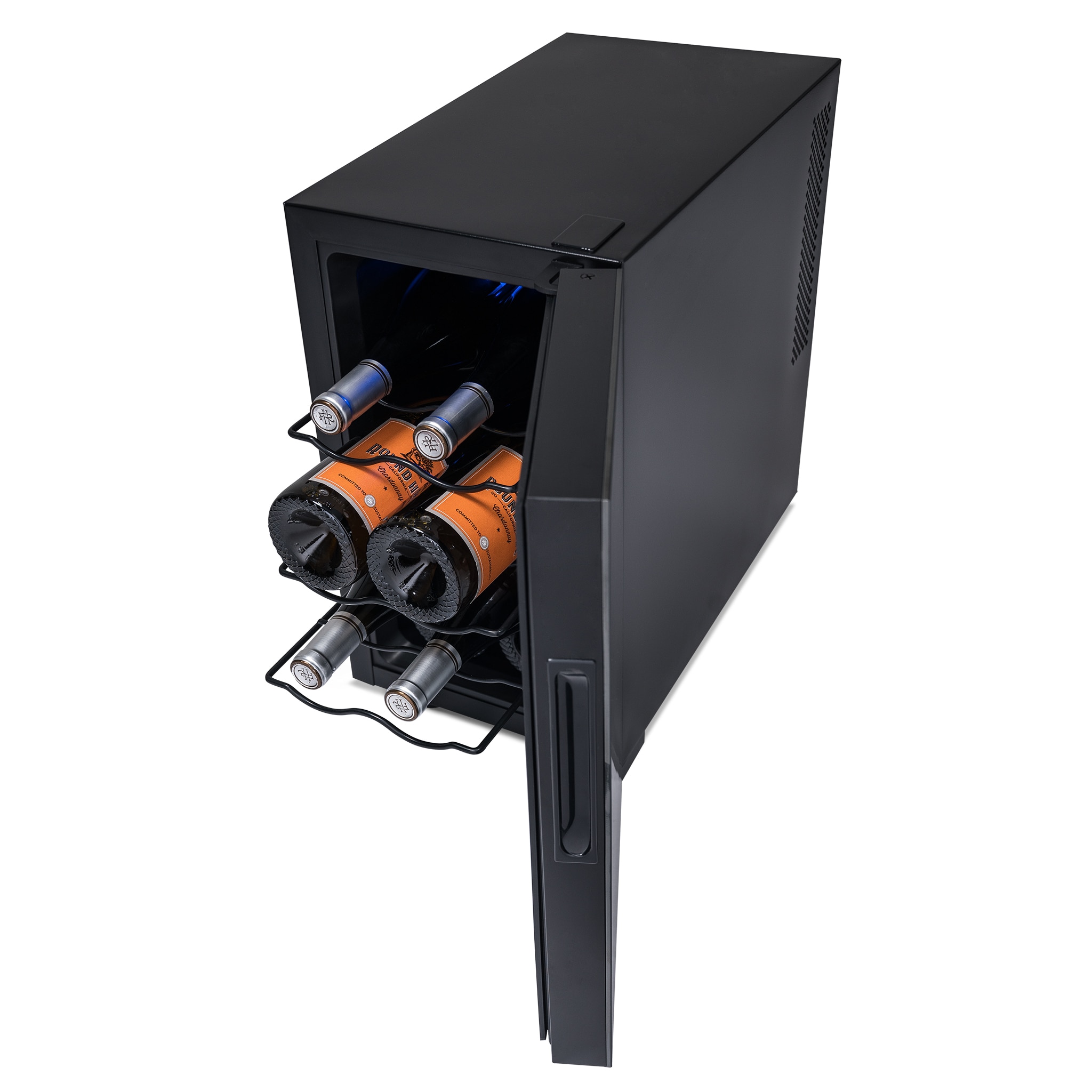 This countertop wine cellar is designed to be seen and not heard. The Newair Shadow-T Series 8 Bottle Thermoelectric Wine Fridge delivers the ultimate storage system for your collection, whether you’re new to wine or a lifelong connoisseur. Ultra-quiet thermoelectric cooling eliminates vibrations that can disturb sediment and destroy the delicate flavors of your wine. The sleek, compact design features a black mirrored glass door with a frameless design and hidden hinge. The triple-pane glass blocks harmful UV rays to protect your wine’s flavor and aroma while resisting smudges and fingerprints. This modern and durable wine mini fridge boasts a user-friendly control panel that is seamlessly built into the glass, making it effortless to select the perfect temperature for your reds, whites, and sparklers.