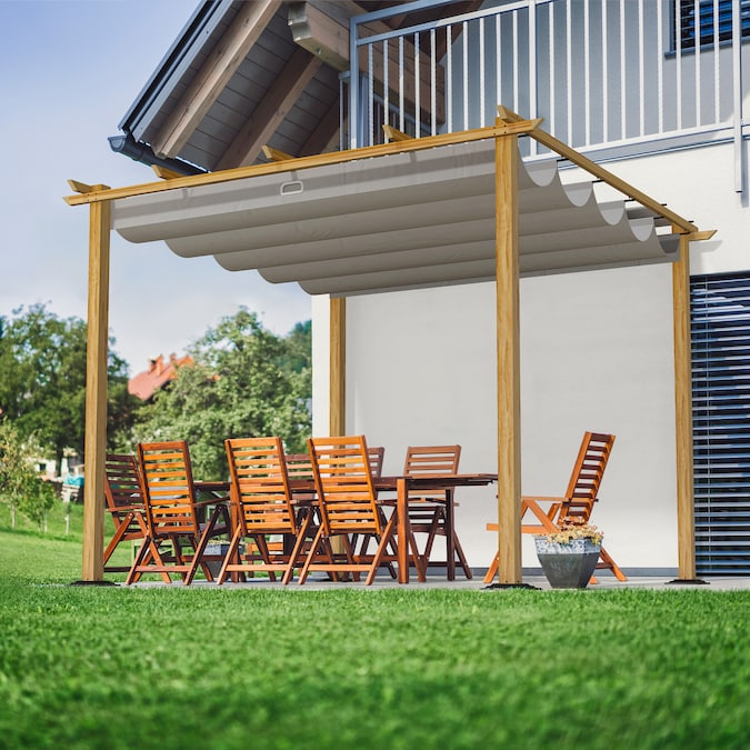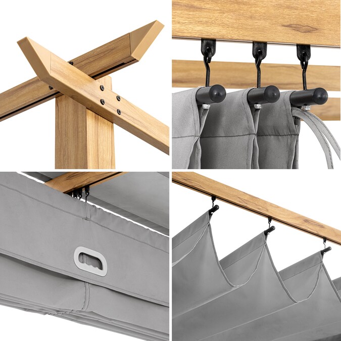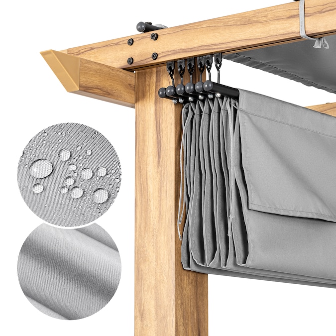 - HIGH-QUALITY FABRIC – The canopy is made of polyester which is waterproof, UV resistant and fade resistant, and there is a sheltered cover on top of the pergola to prevent rainwater accumulation when the canopy is stowed.