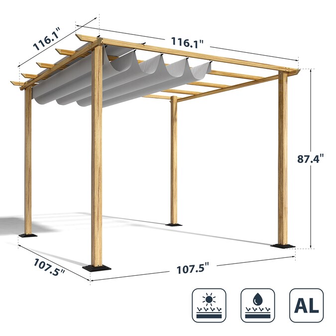 EGEIROS LIFE 10ft. x 10ft. patio pergola is made of all-aluminum frame and high-quality polyester fabric, this makes our pergola combine the advantages of waterproof, UV-resistant, rust-resistant and fade-resistant. And it has an adjustable canopy that can provide the best shade. Whether you are enjoying the sun or enjoying the shade, it all depends on your preference. This pergola is both aesthetic and functional, providing ample space for entertainment facilities, conversation facilities or lounge chairs, which can be matched with your terrace, balcony and garden in any style. Even can be used as a grape rack to decorate your backyard. Whether it is an outdoor party, a family meal or a garden dinner, etc., it can become a beautiful scenery.