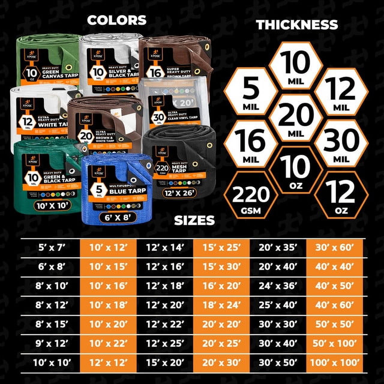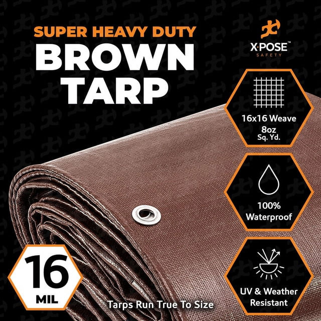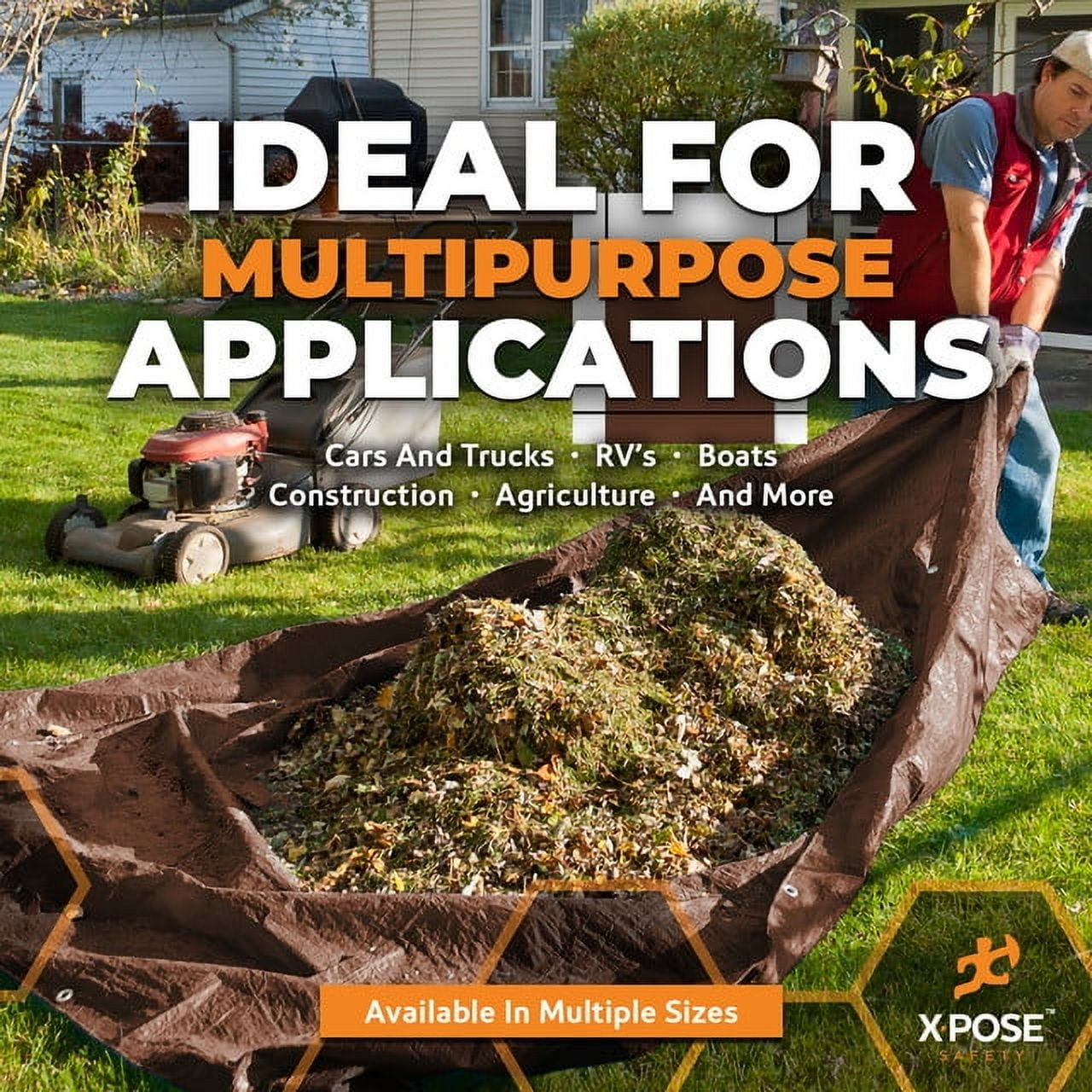 No matter what weather conditions you live with, Xpose Safety’s Super Heavy Duty Poly Tarp can protect your goods. Waterproof, rustproof and UV resistant, it keeps your precious possessions protected from water and the sun. This16 mil thick tarpaulin is rip resistant, with reinforced edges that are designed to last. PRODUCT FEATURES Made with High Quality Polyethylene Material 16 Mil Thick 8 oz. per Square Yard 16 x 16 Weave Count Waterproof Rip-resistant Reinforced Edges UV Resistant Aluminum Grommets Every 18 Inches NO MATTER THE WEATHER Spread this tarpaulin over your car before a storm and avoid having to brush off the snow. Similarly, shield your barbecue grill and central air conditioning units. Cover your backyard pool when not in use no matter what the weather to prevent entry of mosquitoes, dried leaves, and stray animals. Protect outdoor construction sites from adverse weather conditions. Enjoy exploring the great outdoors? Pack along one (or more!) of these Super Heavy Duty Poly Tarps on your next camping or hiking trip. Create a tent by pulling rope through the grommets of this tarp and securing to the ground to stay safe and dry through the night. Light a blazing flame with wood piles protected from the rain and other moisture by Xpose Safety’s tarpaulin. Sitting down to enjoy a picnic? Spread this tarp on the ground to keep clothes clean and provide protection from ticks and other insects. These weatherproof tarps can also protect your canoe or sailboat.