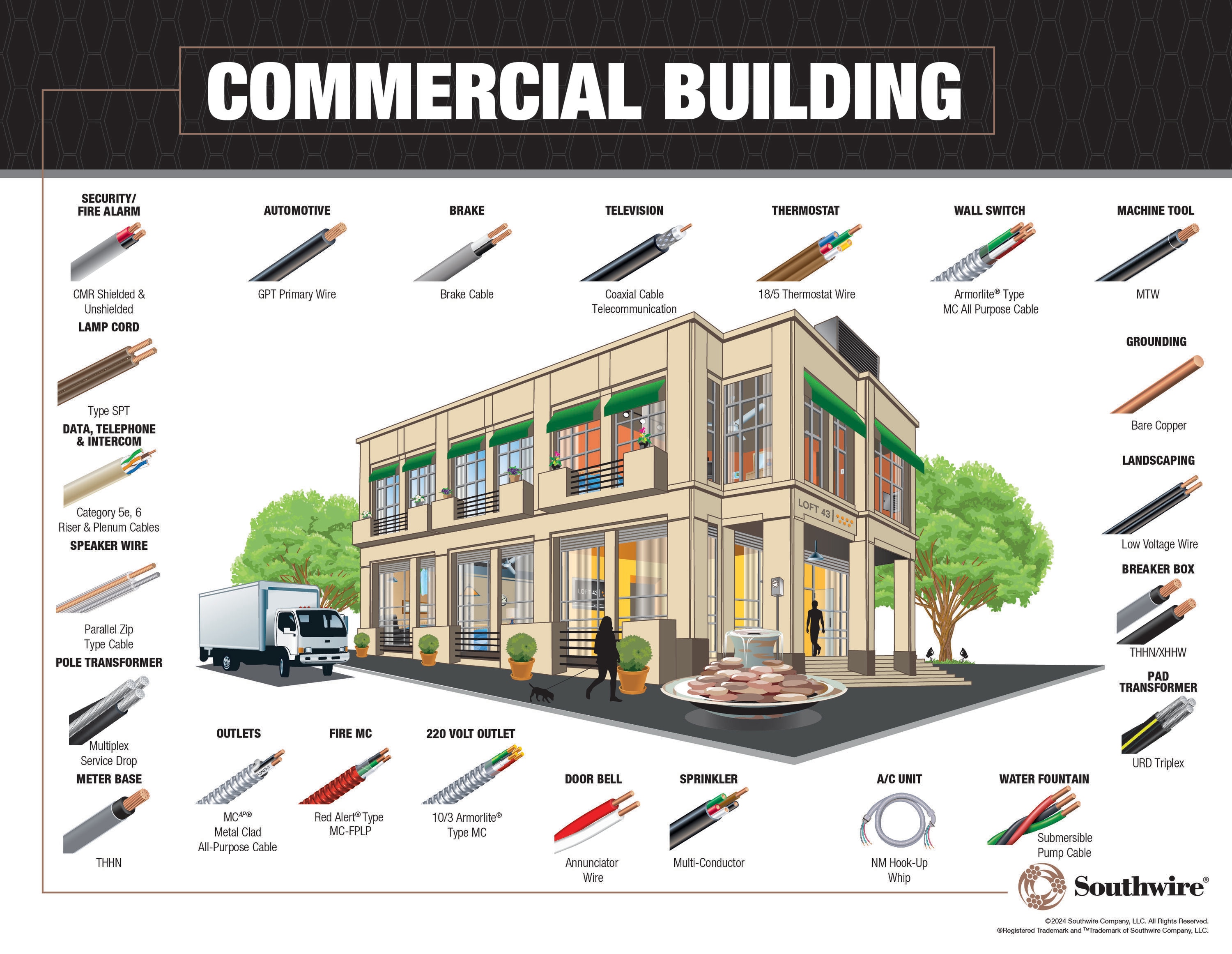 Southwire type THHN or THWN-2 conductors are primarily used in conduit and cable trays for services, feeders, and branch circuits in commercial or industrial applications as specified in the National Electric Code.