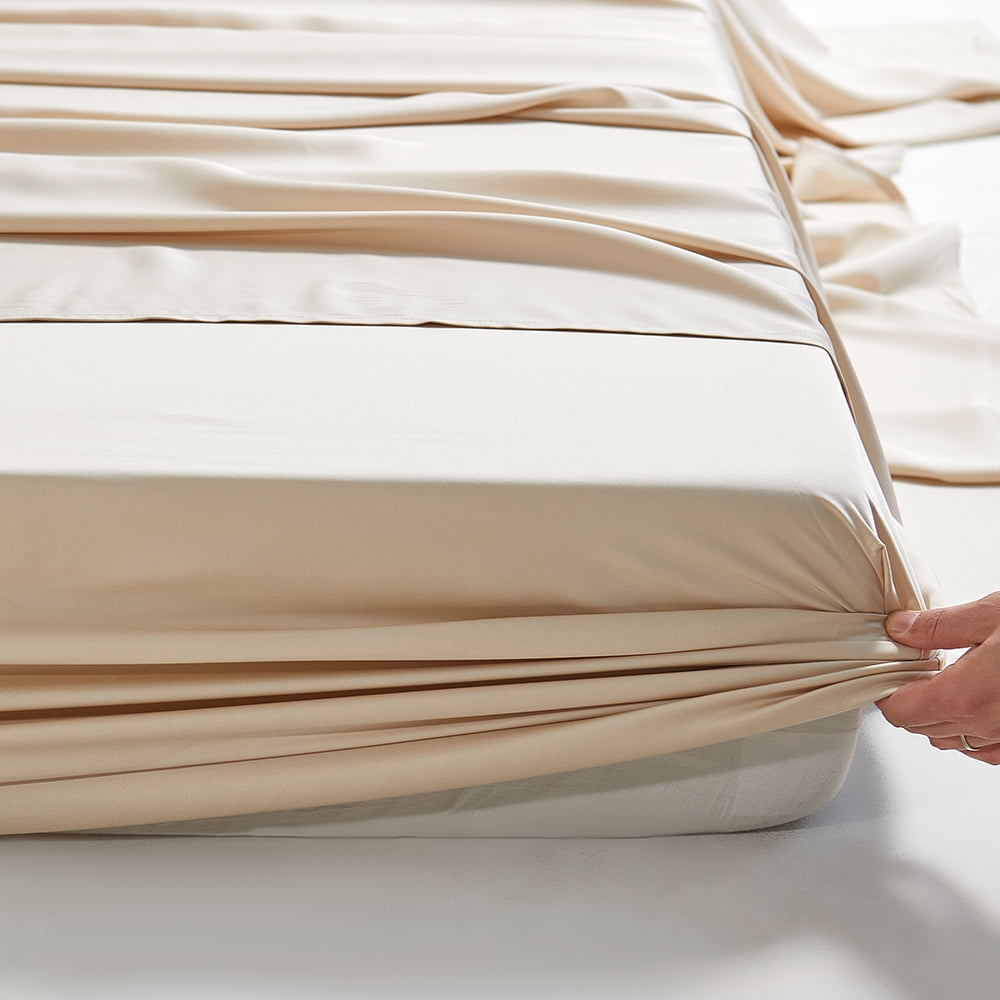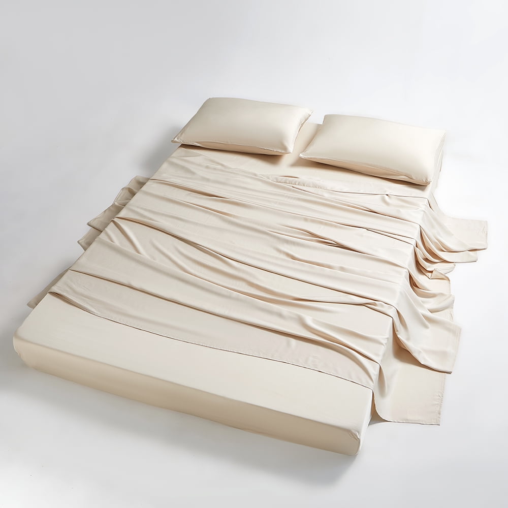 SLEEP ON THE MOST COMFORTABLE BED SHEETS IN THE WORLD! Amonol bamboo sheets set are made of 100% viscose derived, never blended with other fibers or fabrics, and has high thread count for Irresistible Softness and Comfort. COOL BREATHABLE VISCOSE -Our organic bamboo cooling sheets set 3 times more absorbent and breathable than cotton, properties help circulate airflow, keeping you all night Dry & Comfortable. Unique thermoregulatory properties help you balance your body temperature in summer and winter, keeping summer cool and winter warm. Suitable for any season, year-round use! BEIGE KING SHEET SET – includes 1 Fitted Sheet (78″x80″x18″), 1 Sheet (102″x108″) and 2 Pillowcases (20″x40″). Extra deep pocket king size sheets to fit 18″ any type of mattress. 100% HASSLE-FREE PURCHASE: We promise full refund or replacement if the bamboo bed sheet sets with any problem. Our goal to bring perfect luxury bamboo sheets to you. If you have any questions, feel free to contact us!