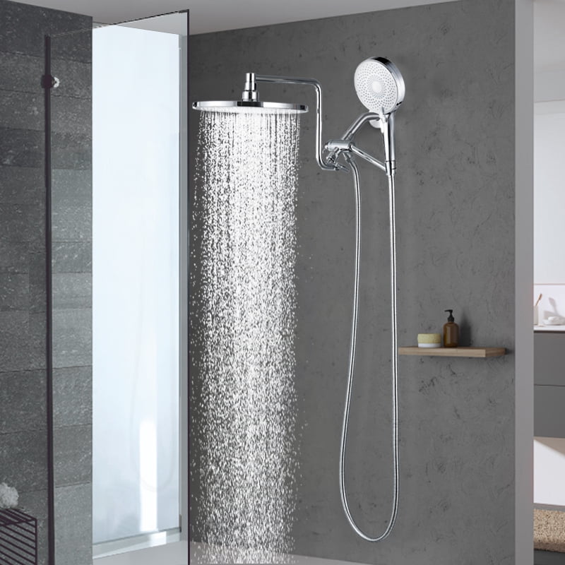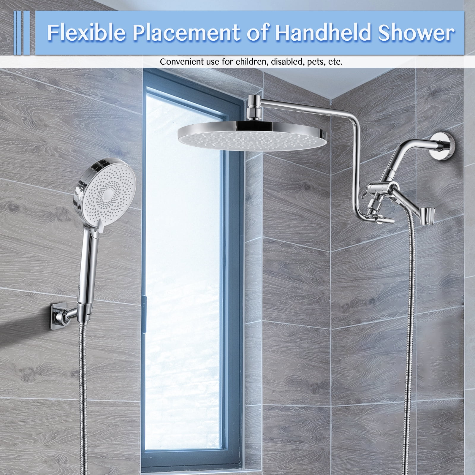 10″Rain Shower Head with Handheld Combo, YDmeet Upgraded Rainfall Shower Head with Extension Arm Adjustable, High Pressure Handheld Sprayer, Extra Brass Shower Holder, Luxury Polished Chrome & White