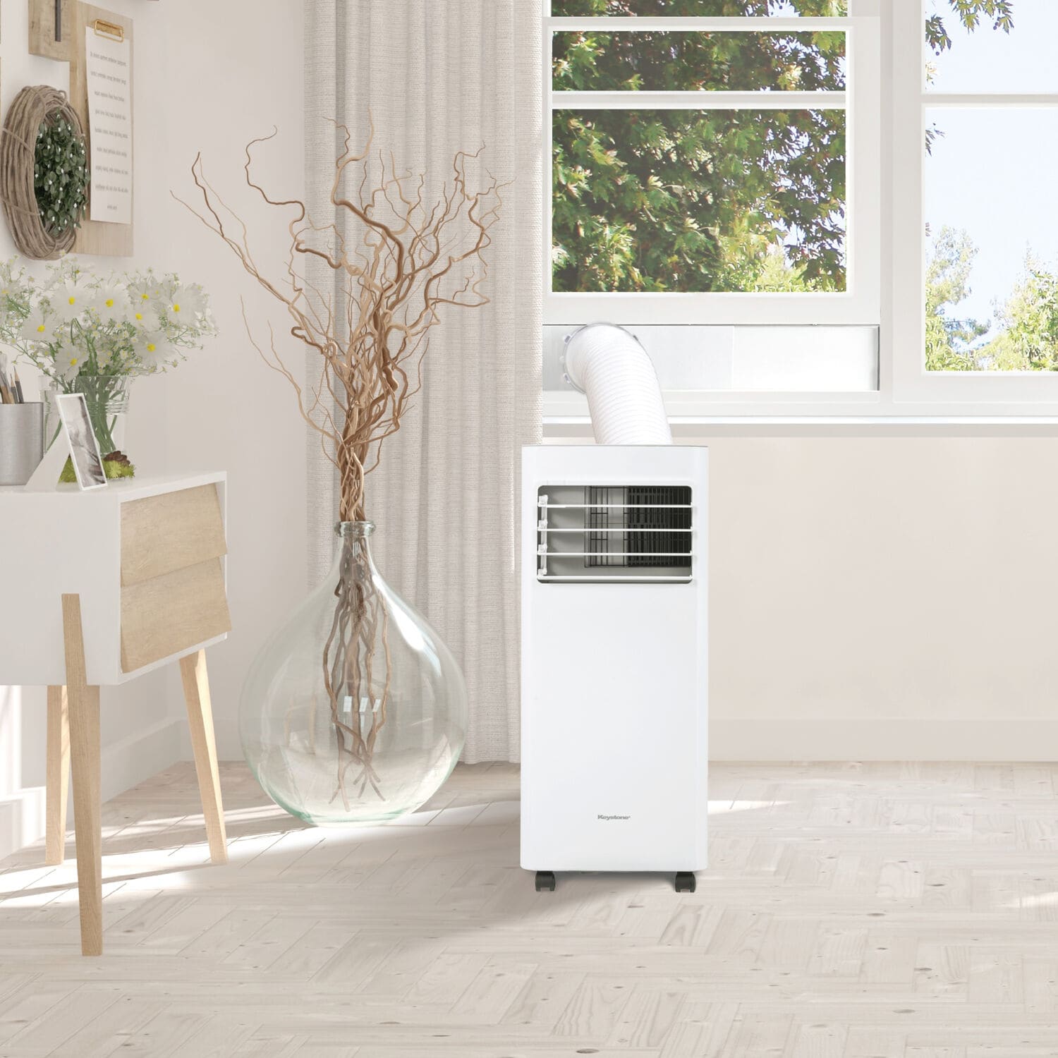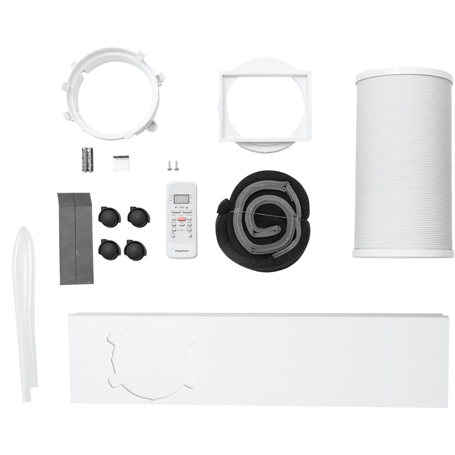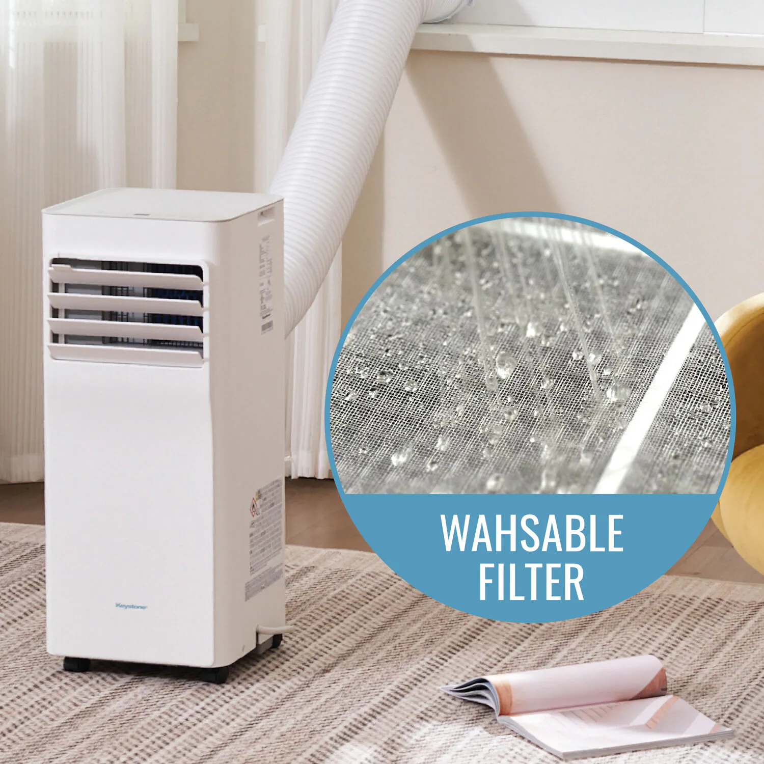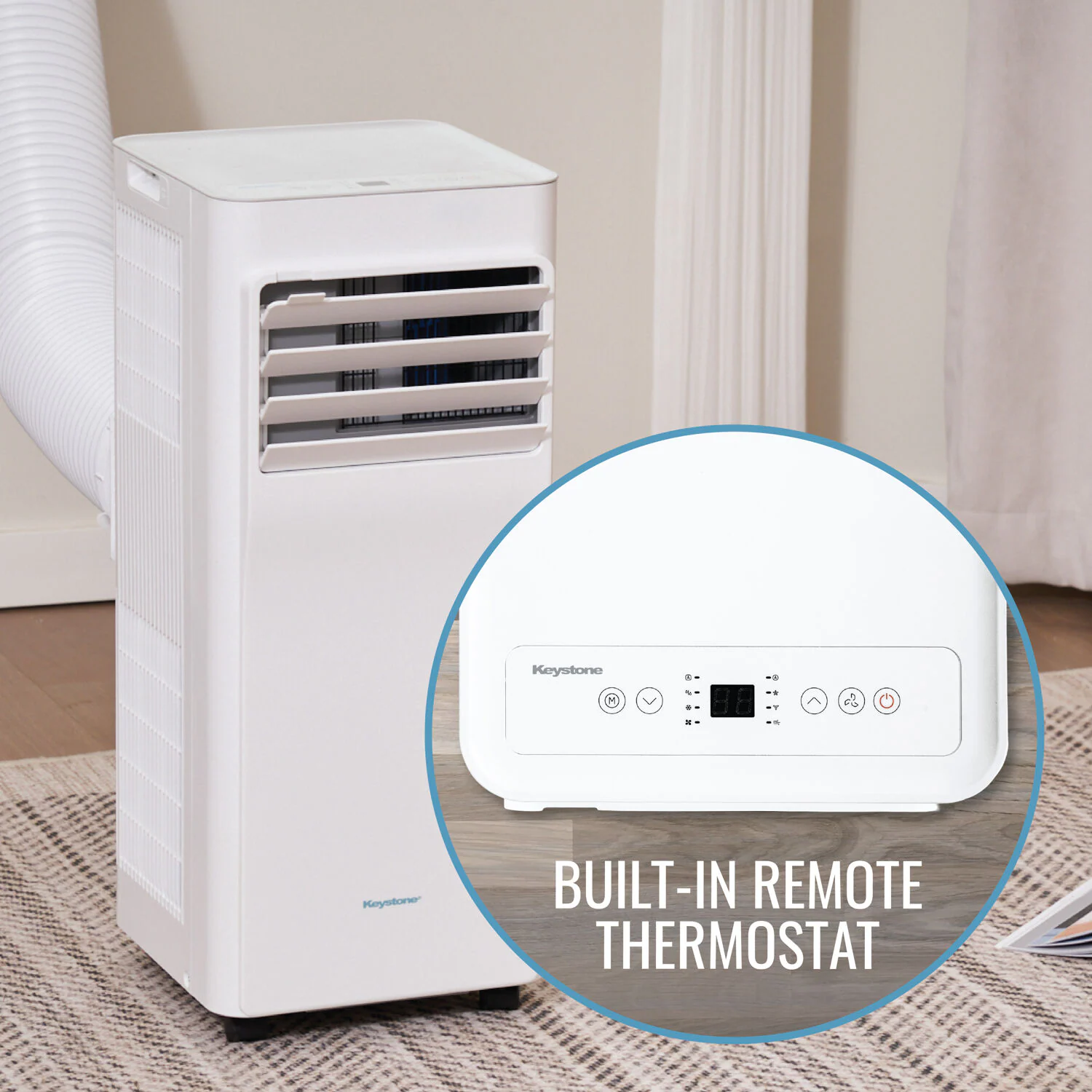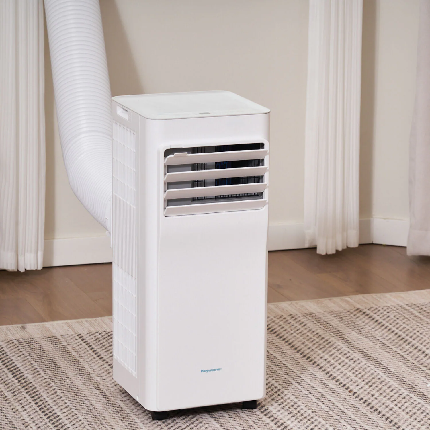 With reliable air conditioning units, Keystone produces consistent cooling to keep you comfortable, even on the hottest days. This 8,500 BTU ASHRAE/5,000 BTU DOE portable air conditioner can effectively cool rooms up to 200 square feet with dehumidification up to 2 pints per hour to remove moisture from the air. Perfect for small-sized living spaces like apartments, bedrooms, dorm rooms, and much more. A remote is included so you can control your cooling from across the room. Money saving features include energy saver mode, sleep mode, and a programmable 24-hour timer. This unit also offers an Auto Restart function that will automatically turn back on after a power outage to the last temperature it was set. The included window venting kit makes installation a breeze and allows you to easily remove it when you want to change rooms as well. Rolling caster wheels allow you to easily glide the unit wherever you need some comfort. You’ll know when it’s time to easily remove and clean the mesh filter with the Check Filter alert. Keystone not only provides a 1-year warranty but ensures that you stay cool and comfortable at a cost-conscious price.