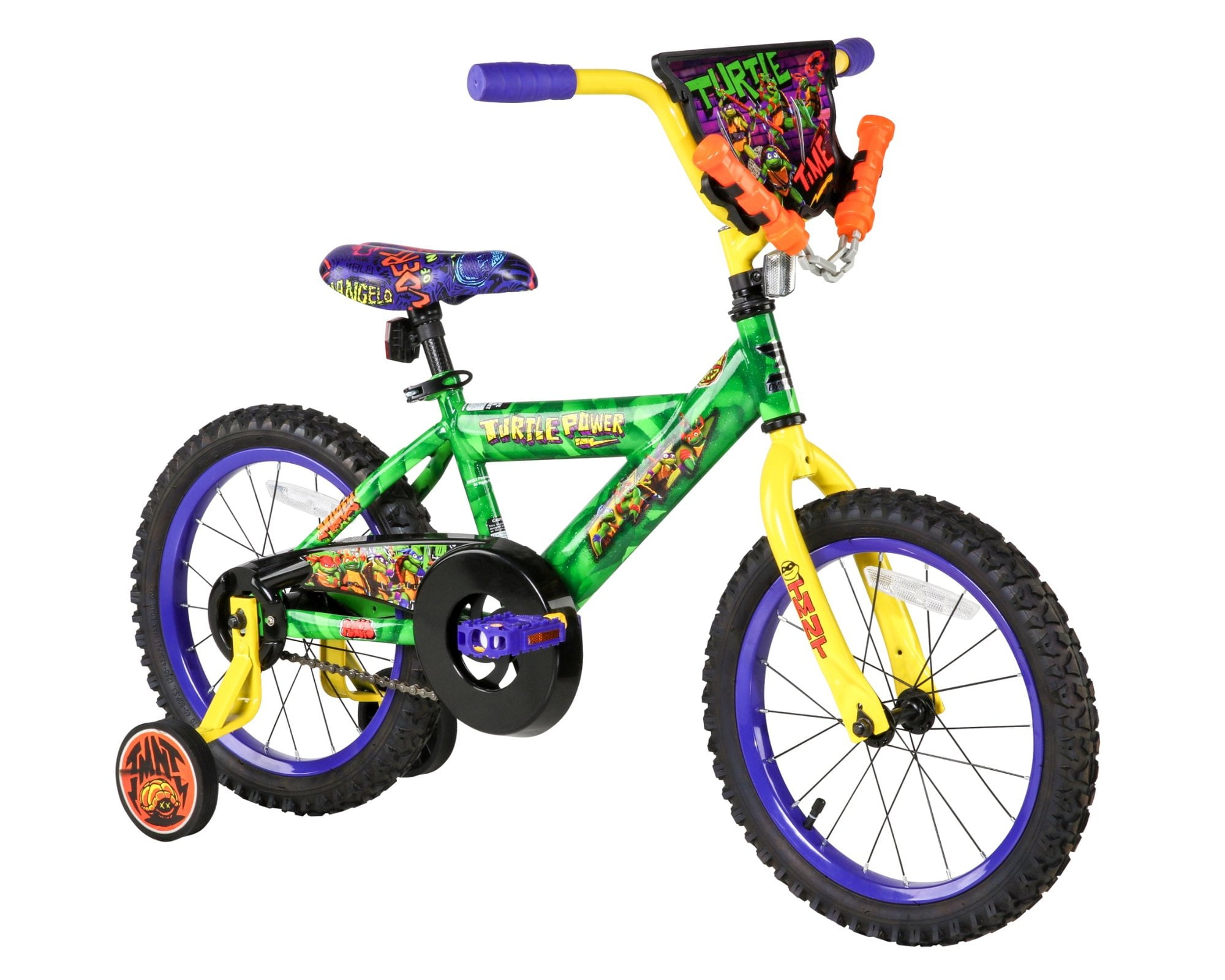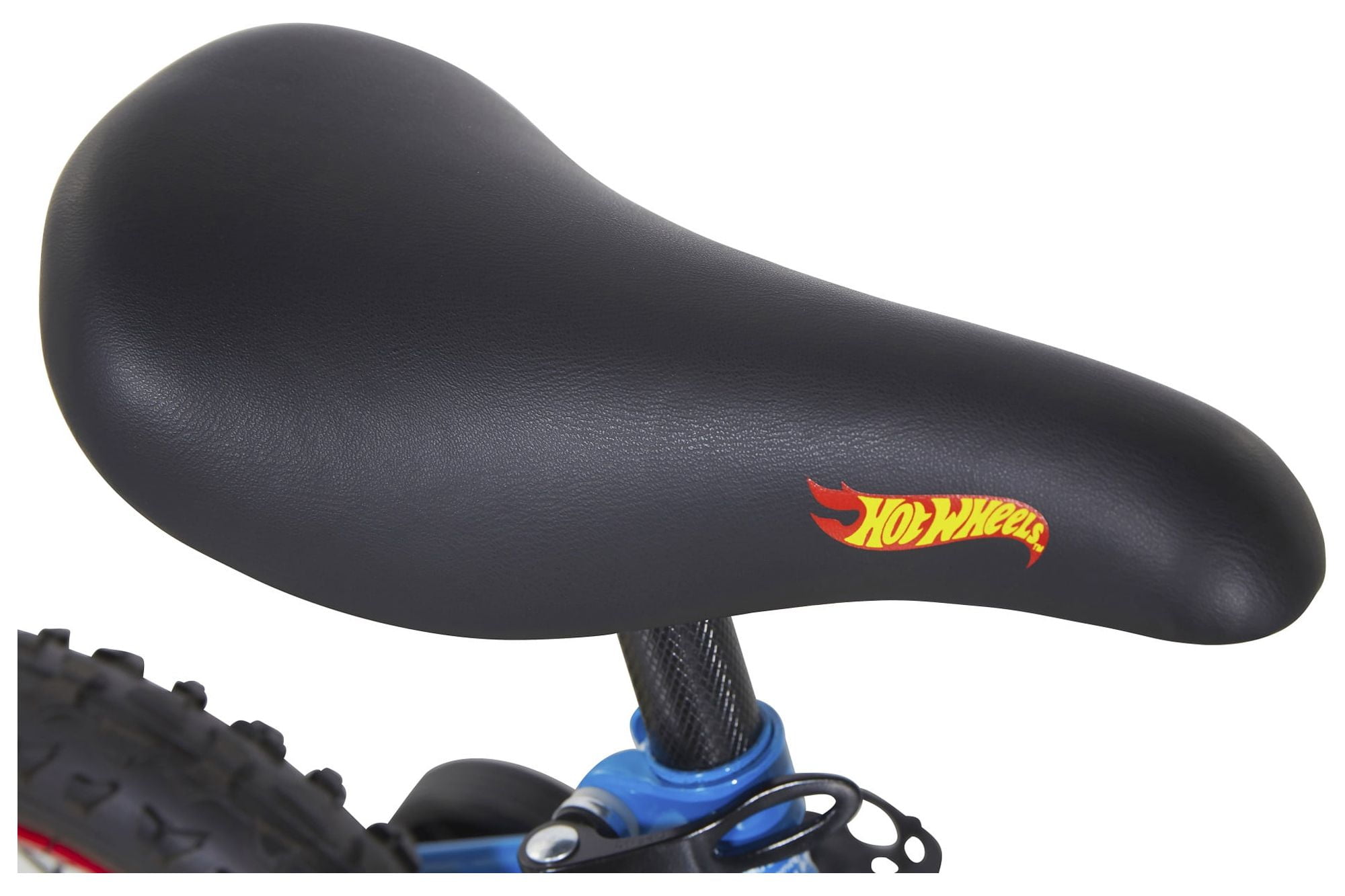 Sturdy steel frame with blue paint finish and authentic Hot Wheels graphics 12-inch wheel size on BMX bike frame for child 3-5 years or 34-40″ tall Easy to use rear coaster brake Hot Wheels Rev Grip and racing shield Adjustable and removable training wheels Limited lifetime warranty on frame and fork