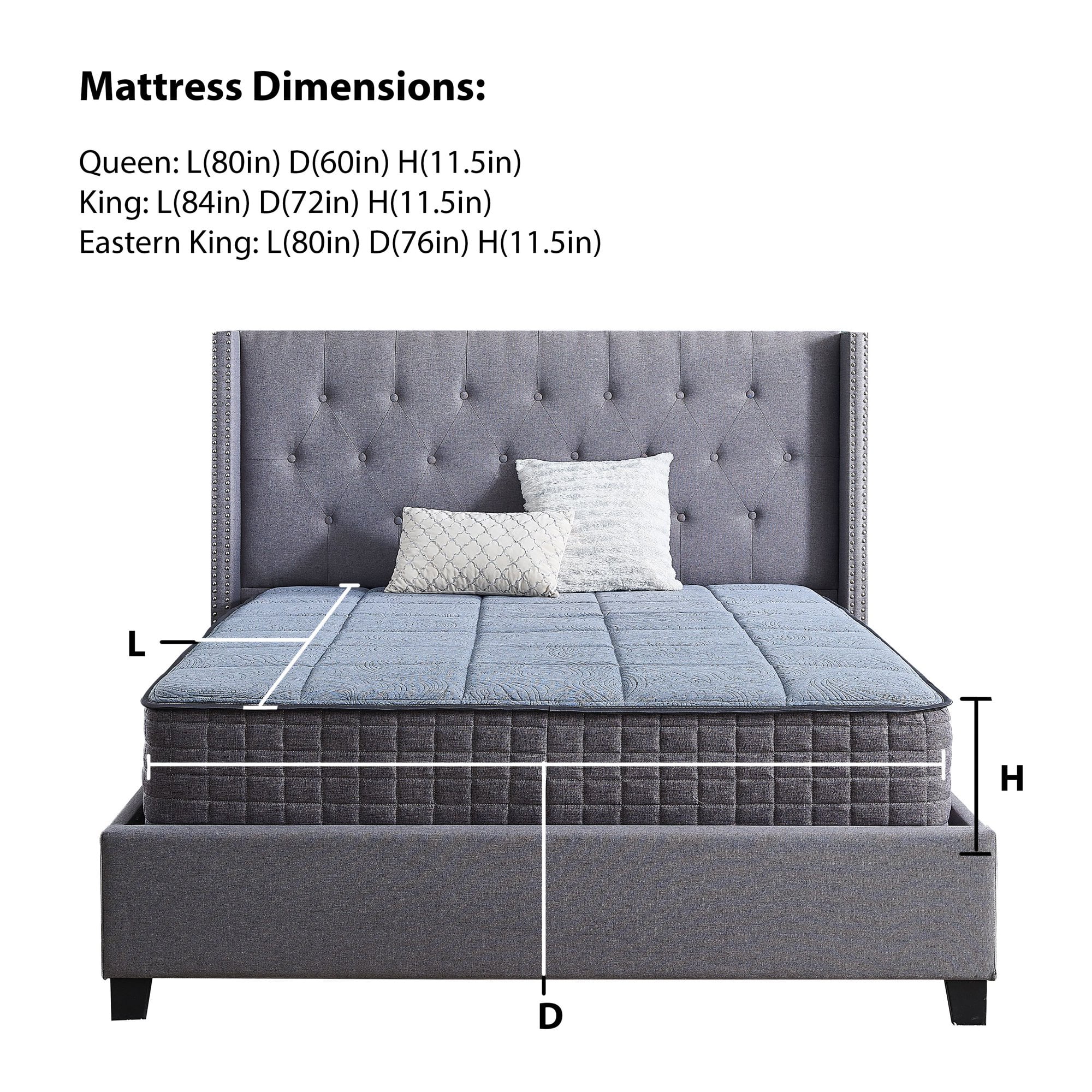 The Eastern King Mattress Measures 72″ X 84″ X 11.5″ and Weighs 138 Lbs. Arrives with No Assembly Required. Say Goodbye to Restless Nights and Hello to the Best Sleep of Your Life! Reap the Benefits of a Memory Foam Mattress without feeling like You are Sinking In with this Hybrid Mattress. Designed with Both Comfort and Support in Mind, the King Mattress has both Latex, Air Memory Foam and Pocket Coil Springs to give You the Best of Both Worlds. Made from CentriPUR-US Foam and Featuring 1″ of Air Memory Foam and 1″ of Latex, the King Mattress is Comfortable, Supportive, and Safe. *Overall Thickness: 11.5 ” *Overall: 72″ W x 84″ L *Overall Product Weight: 138 lbs *Coil Count:1050 Age Group: All Ages, Universal.