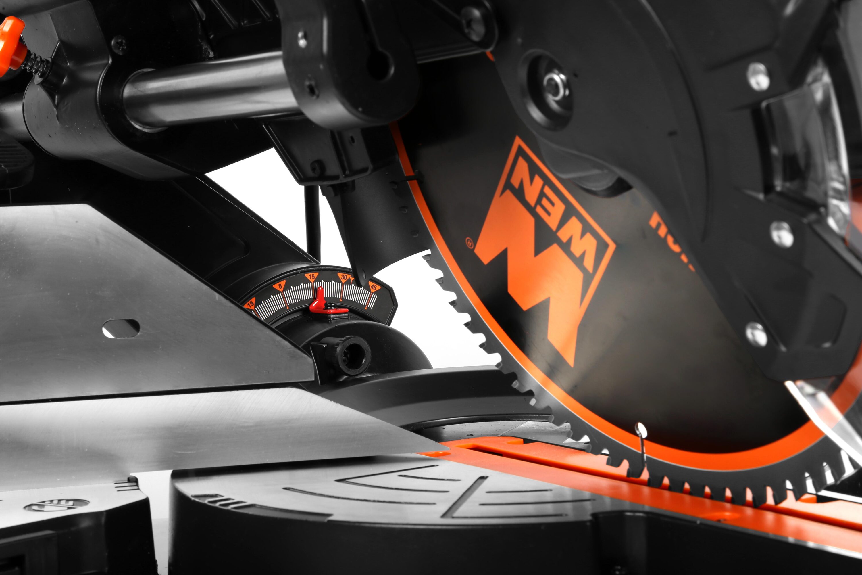 Remember when your miter saw could do it all. Create cuts at any angle with the WEN 12 in. Dual Bevel Sliding Compound Miter Saw. Our powerful 15-amp motor slices through even the hardest of woods, providing 5000 blade rotations per minute. This versatile saw bevels and miters up to 45 degree in either direction with a front bevel control for fast and easy adjustment. Cut boards up to 13.25 inches wide and 4.5 inches thick or make compound cuts (45 degree bevel and 45 degree miter) in boards up to 9.25 inches wide and 3.125 inches thick. The saw features 9 miter stops: two at 15 degrees, two at 22.5 degrees, two at 30 degrees, two at 45 degrees and one at 0. However, if a more unique angle is preferred, the miter lock still allows the saw to lock at any angle between those stops. The onboard LED cutline guide casts a shadow against the blade to illuminate your line of cut for maximum accuracy while the dust collection port allows for connection to either the included dust bag or your dust collection device of choice. This spacious saw also features a 6-1/2-inch crown molding nested capacity and a 6-1/2-inch base board vertical capacity. This package includes an 80-tooth carbide-tipped blade with a 1-inch arbor (model BL1280), two quick-lock table extension support arms, two adjustable support fences, one quick-clamp assembly, a dust port, a dust bag, and a carrying handle. And, because it’s a WEN product, your miter saw comes backed by a two-year warranty, a stocked inventory of replacement parts, and a friendly customer help line, all to make sure you remember WEN.