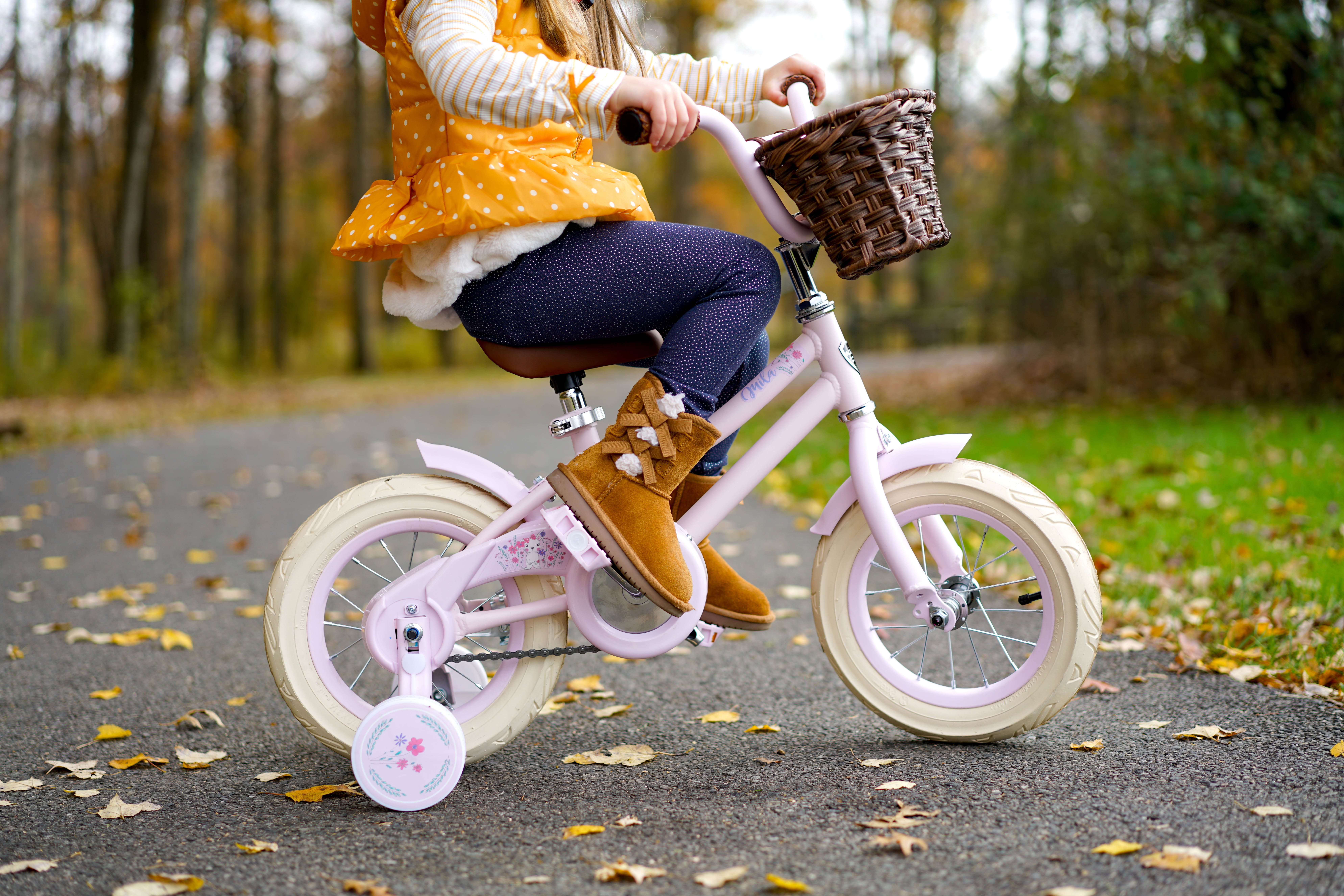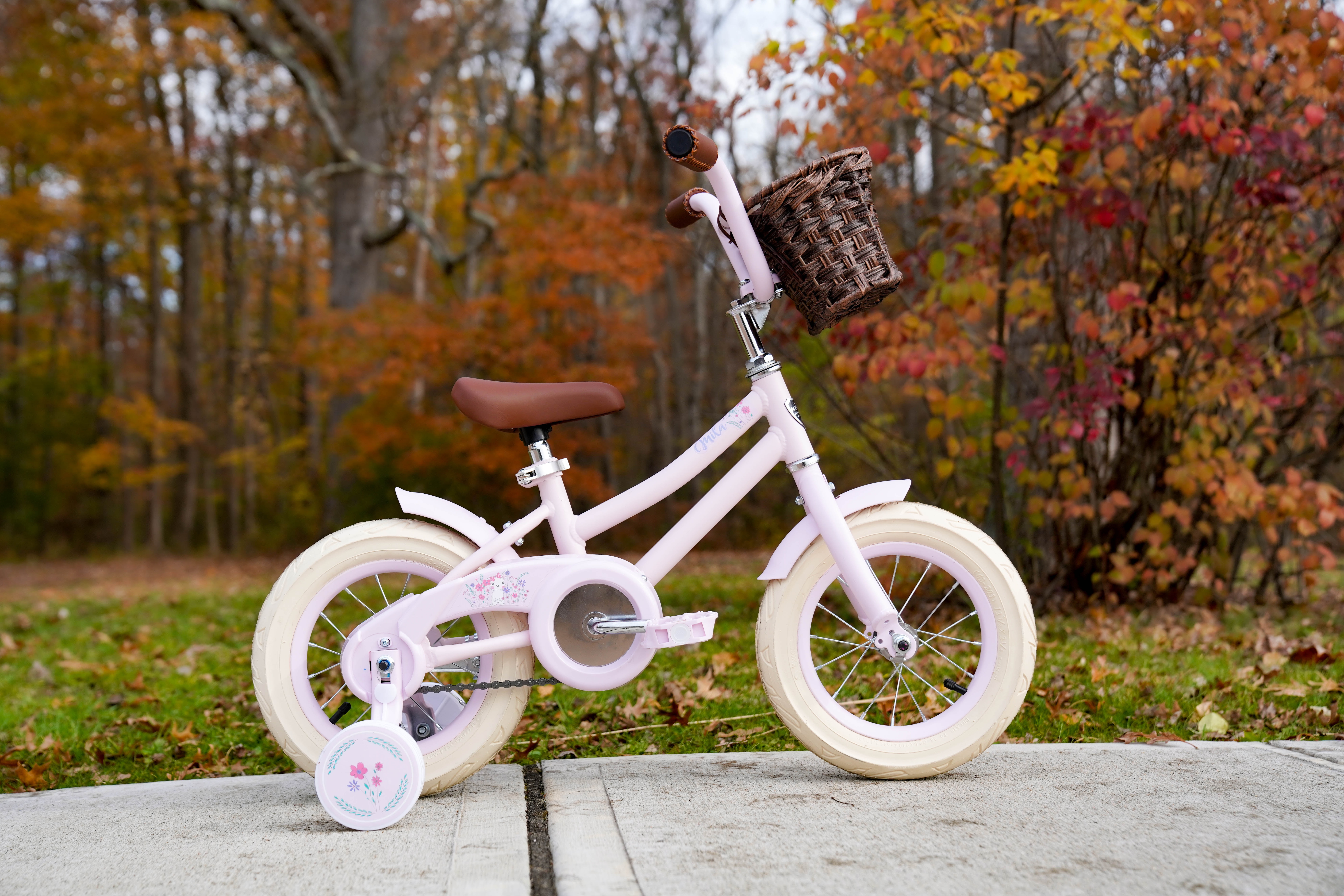 Kent Bicycle Bicycle with training wheels 12″-wheel diameter Child bike Single-speed bike Steel frame girl’s bike Stylish traditional colored brown front basket Cute matching brown seat and handlebar grips Cruiser looks cream color tires Ideal for female children age 3 to 5 years old