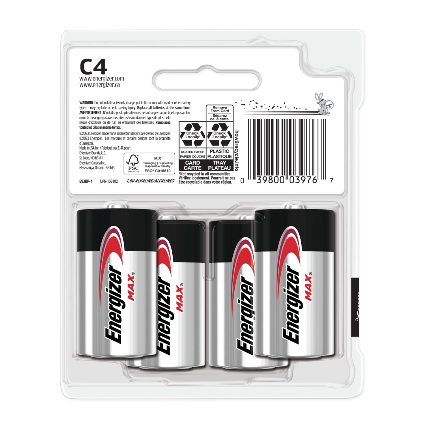 4 pack of Energizer MAX C Batteries, C Cell Alkaline Batteries These alkaline C batteries provide long lasting power for your everyday devices The power you depend on for high-tech C battery flashlights, radios, toys and other high-drain devices MAX C battery pack that holds power for up to 10 years in storage C Alkaline batteries that are made to last. Not to leak. Also available in AAA batteries, AA batteries, D batteries and 9V batteries Feel confident knowing you have the long-lasting power and protection you expect from Energizer
