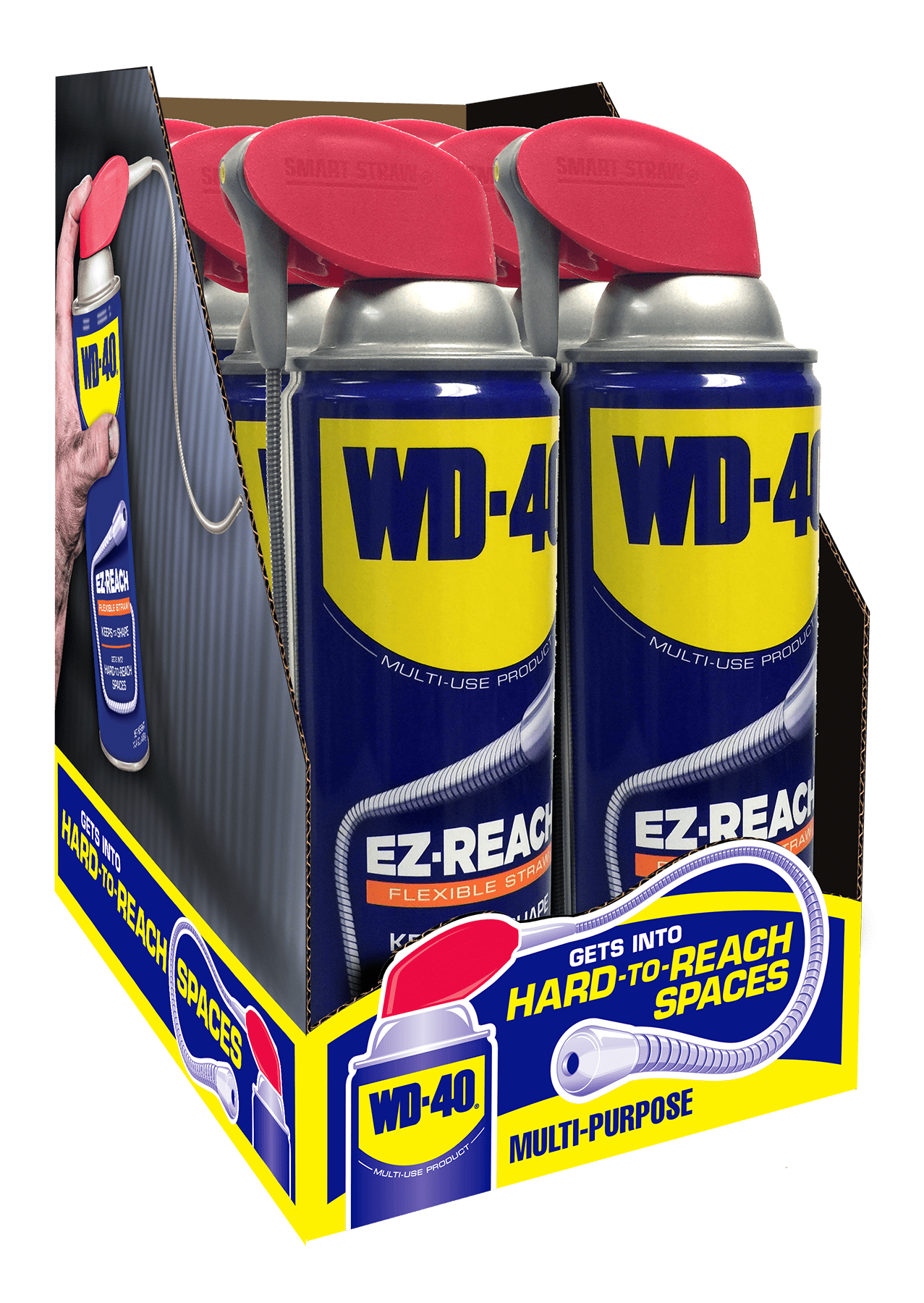 Be ready for anything, this multi-purpose lubricant is truly a toolkit in a can, harness the power of WD-40 as you get every job done with ease, this formula has been around for over 70-years and has proven effective for over 2,000 different uses 8 in. flexible straw, this straw bends and keeps its shape allowing you to get into those hard-to-reach spaces; the Smart Straw Sprays 2 Ways; flip it up for stream, or down for spray as you solve problems, one project at a time 1 formula 5 functions WD-40 multi-use product lubricates, penetrates, protects, loosens, and displaces moisture Thousands of uses, this lubricating spray can be used on alloy wheels, engines, hedge trimmers, hinges, bikes, and all the nuts and bolts you throw its way