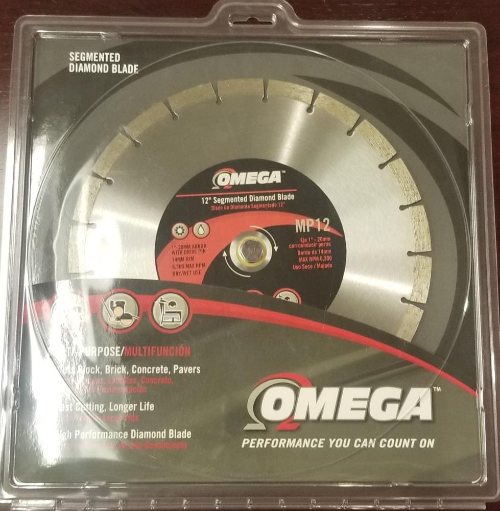 The Omega 12 inch Segmented blade is designed for maximum cutting performance and long life. Use this blade on 12 inch saws. This blade provides ideal quality cutting for concrete, brick, pavers and roof tile