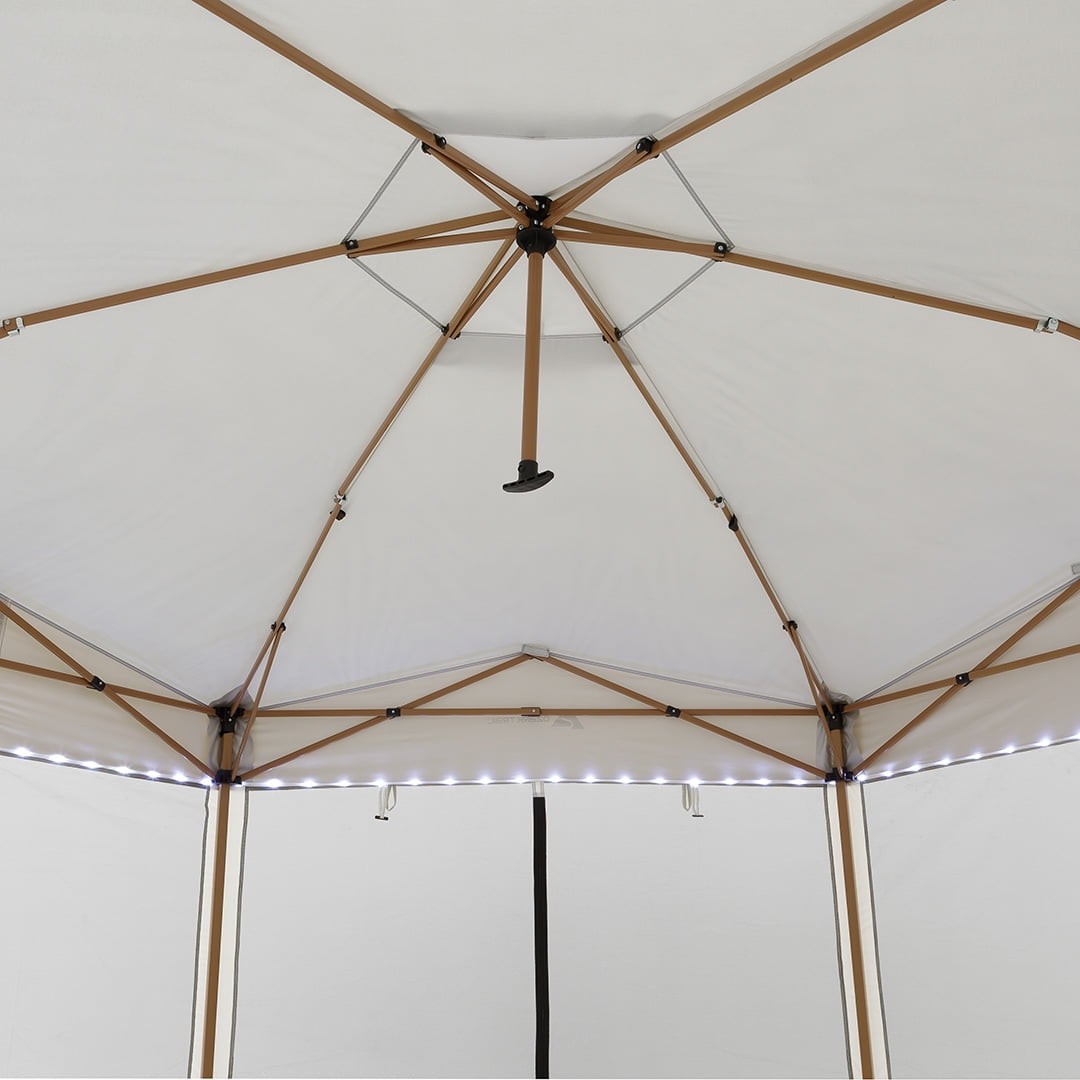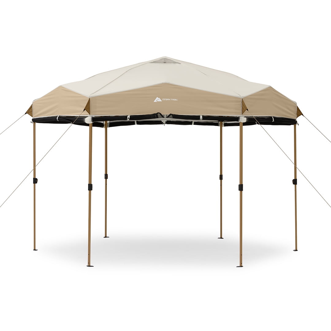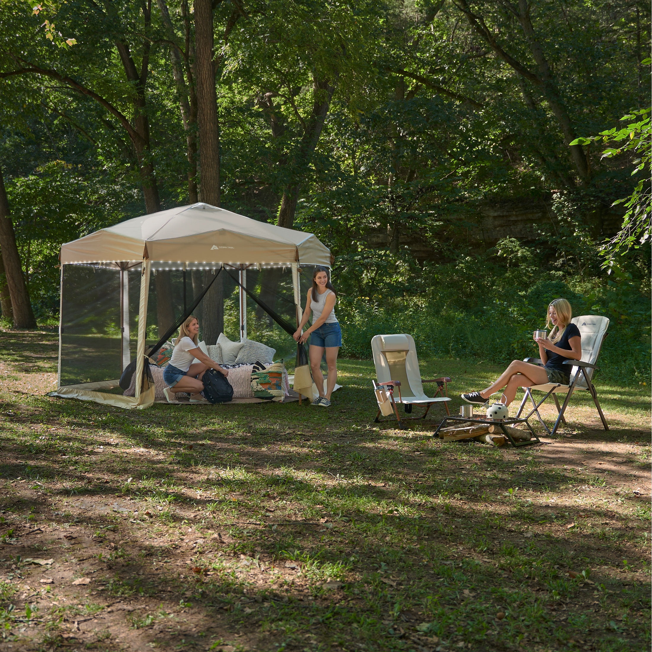 Enjoy the great outdoors even more with the Ozark Trail 12′ x 10′ Glamping Hexagon Lighted Canopy. It is just right for backyard parties, outdoor events or tailgates. The string lights make this Ozark Trail lighted canopy an ideal choice for evening events. When the sun goes down, just use the remote controller to turn on the LED lights and continue the party even after it gets dark. The canopy top includes a mesh pocket to keep important items close by. This outdoor lighted canopy provides 110 square feet of 50+ UV protection from the sun. The integrated remote-control holder helps ensure that you never lose track of the remote control. This Ozark Trail lighted canopy transitions for high, medium, and low-level lighting for all types of sunlight. With innovative technology, you can set it up and take it down in just minutes. An included storage bag offers compact storage and easy portability. Keep the party going with the Ozark Trail 12′ x 10′ Glamping Hexagon Lighted Canopy. Adventure is where memories are made, whether its campouts in the backyard with the kids, Saturdays at the river with friends, or a week in the wilderness alone. Ozark Trail helps you and your family create everyday adventures with gear and accessories built with you in mind. From backpacks to tents, they are rugged, dependable, and priced to be practical. Because adventure is not a destination; it is a lifestyle.