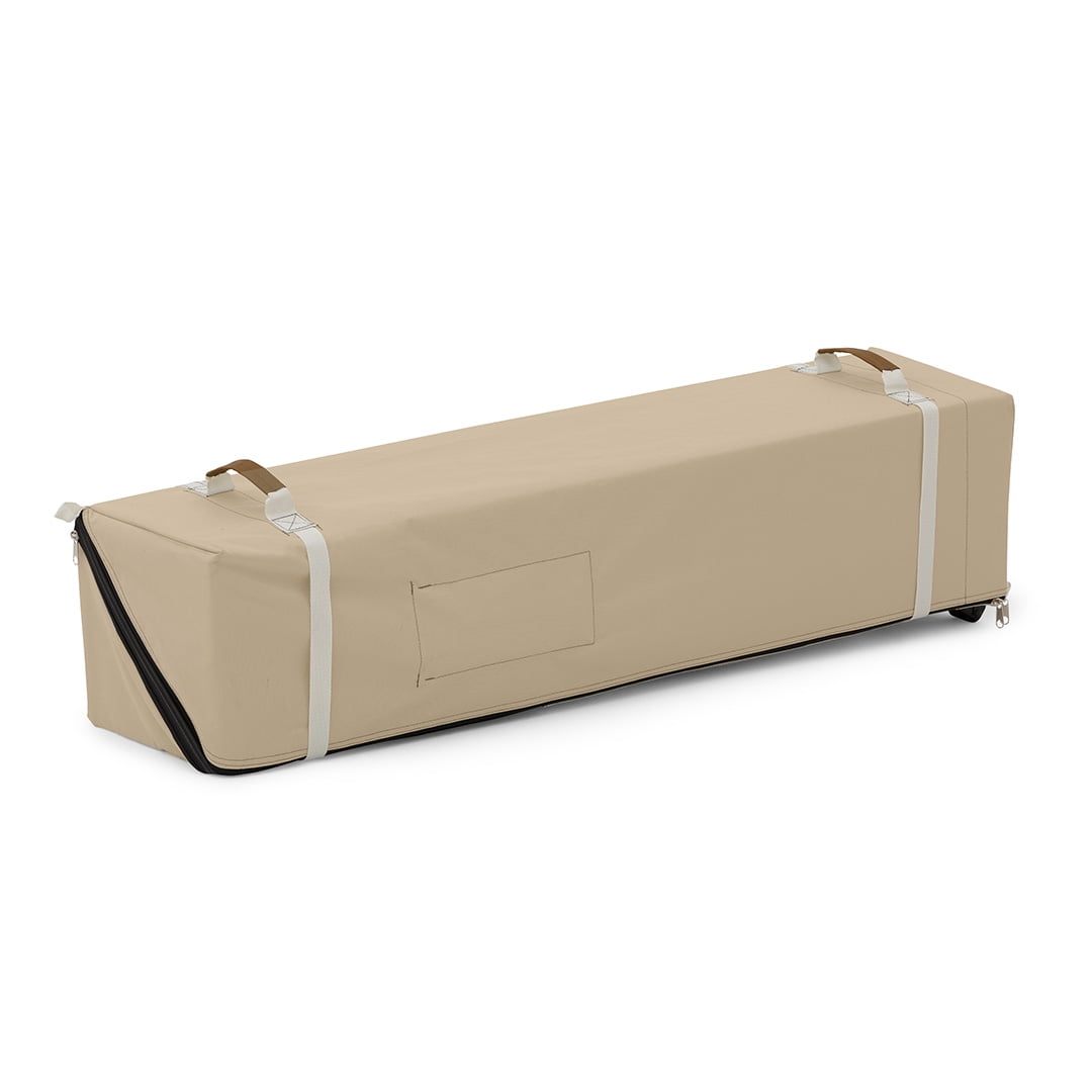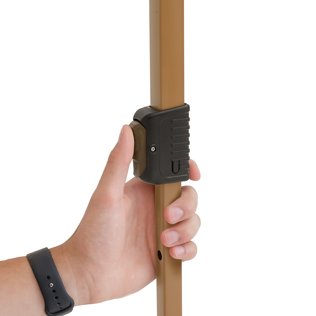 Sets up in just 2 minutes 110 square feet of shade Easy push-button system for quick setup and takedown Polyester canopy top and durable steel frame Canopy includes mesh pocket for storing small item like a wallet, sunglasses or keys Two roof vents and mesh panels for added ventilation Strong telescoping 3-position steel frame and feet for use on concrete or dirt UV 50+ protection to keep your cool and comfortable on warm summer days Attached guylines for added stability Includes wheeled carry bag Perfect for backyard parties, tailgates or campouts Dimensions: 12′ x 10′ x 110″ Model #: 30943