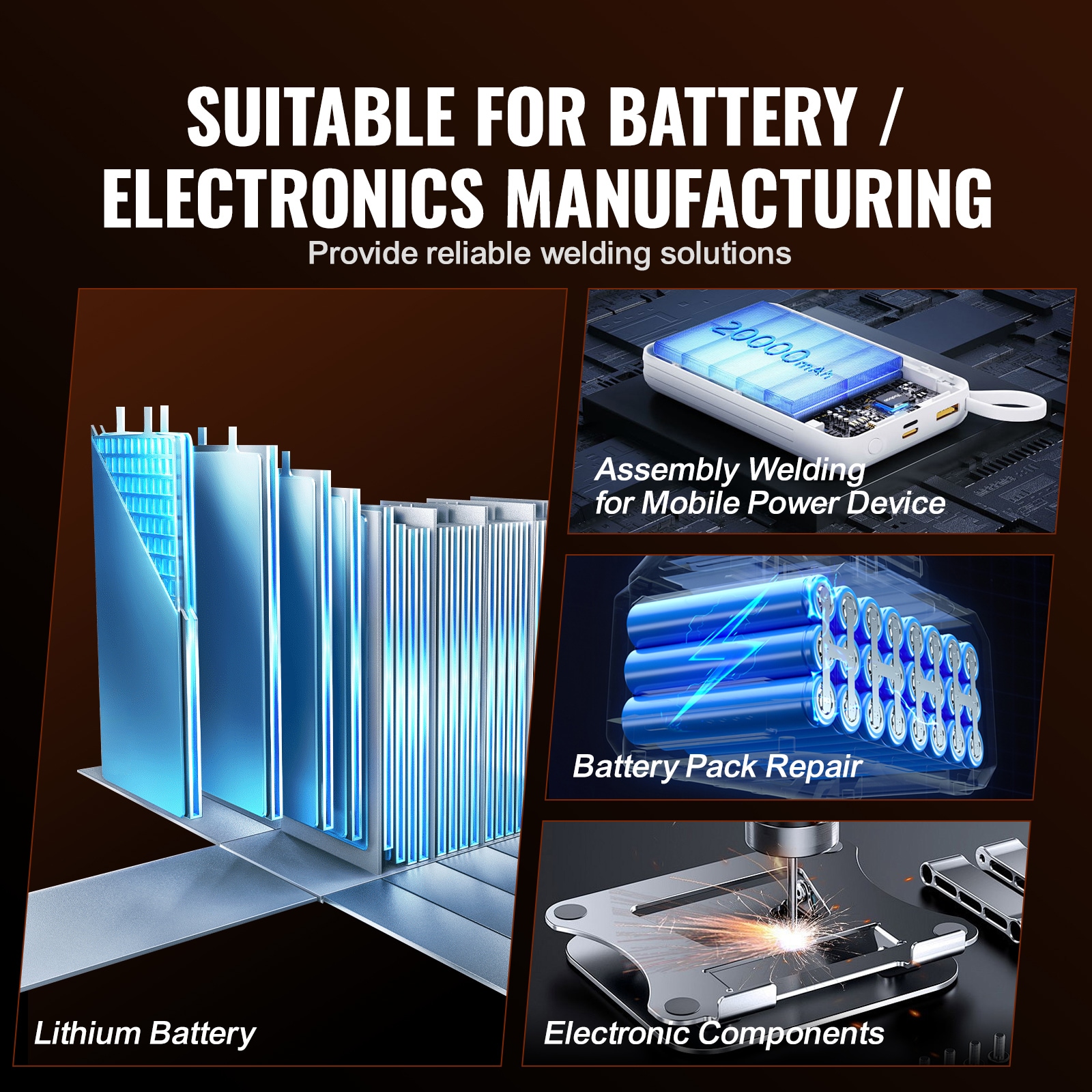 VEVOR Battery Spot Welder: Introducing VEVOR 788H battery pulse spot welder & battery charger – your ultimate solution for enhanced welding efficiency; With 2.8KW pulse output power and 300g-750g adjustable welding needle pressure, it achieves superior spot welding results for battery pack, pure nickel, and plated nickel;; [Package Content] 1 x Spot Welder; 1 x 1 kg Nickel-Plated Strip; 1 x Foot Pedal Switch; 1 x 18650 Six-Jaw Fixture; 4 x Fixed Head Welding Needles; 1 x Test Wire; 2 x Fuses; 1 x Hexagonal Wrench; 100PCS x Nickel Samples; 1 x User Manual