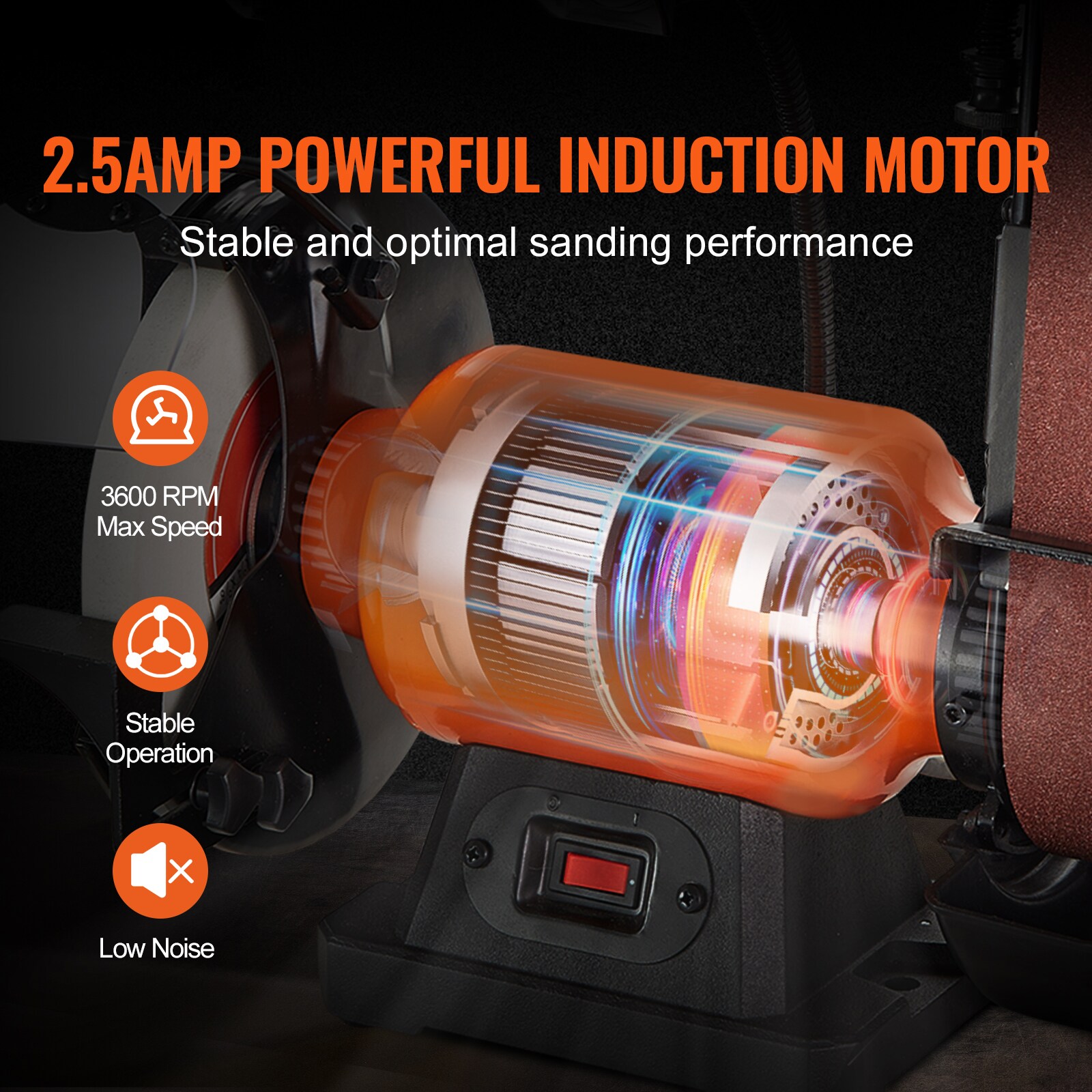 VEVOR Belt Grinder Sander Combo: With a powerful 2.5A induction motor, 3600 RPM high speed, and 60-grit grinding wheel, VEVOR 8″ bench grinder & 2″ x 28″ belt sander handle various material easily, whether you need to remove material quickly or perform precise grinding; An indispensable sanding assistant for DIYers and mechanics;; [Package Content] 1 x 8″ Bench Grinder and 2″ x 28″ Belt; 1 x Eye Safety Shield; 1 x Light Bulb; 1 x Grinding Wheel Tool Rest