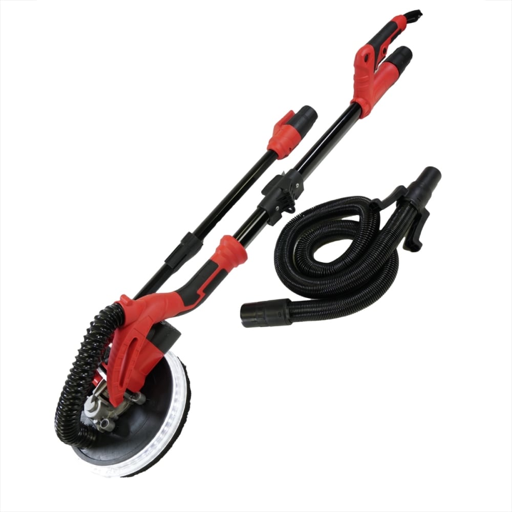 This tool is designed for sanding walls and ceilings made of drywall or plaster in any position. Just use the built in extensions to change the length of the tool from 3.6 ft. to 5.4 ft. long. The long-reach is ideal for sanding high walls and ceilings. The removable brush segment allows sanding right up to the edge with ease. The tool includes our new HALO lighting system that helps make sure you can see all the variations on the surface you are sanding.