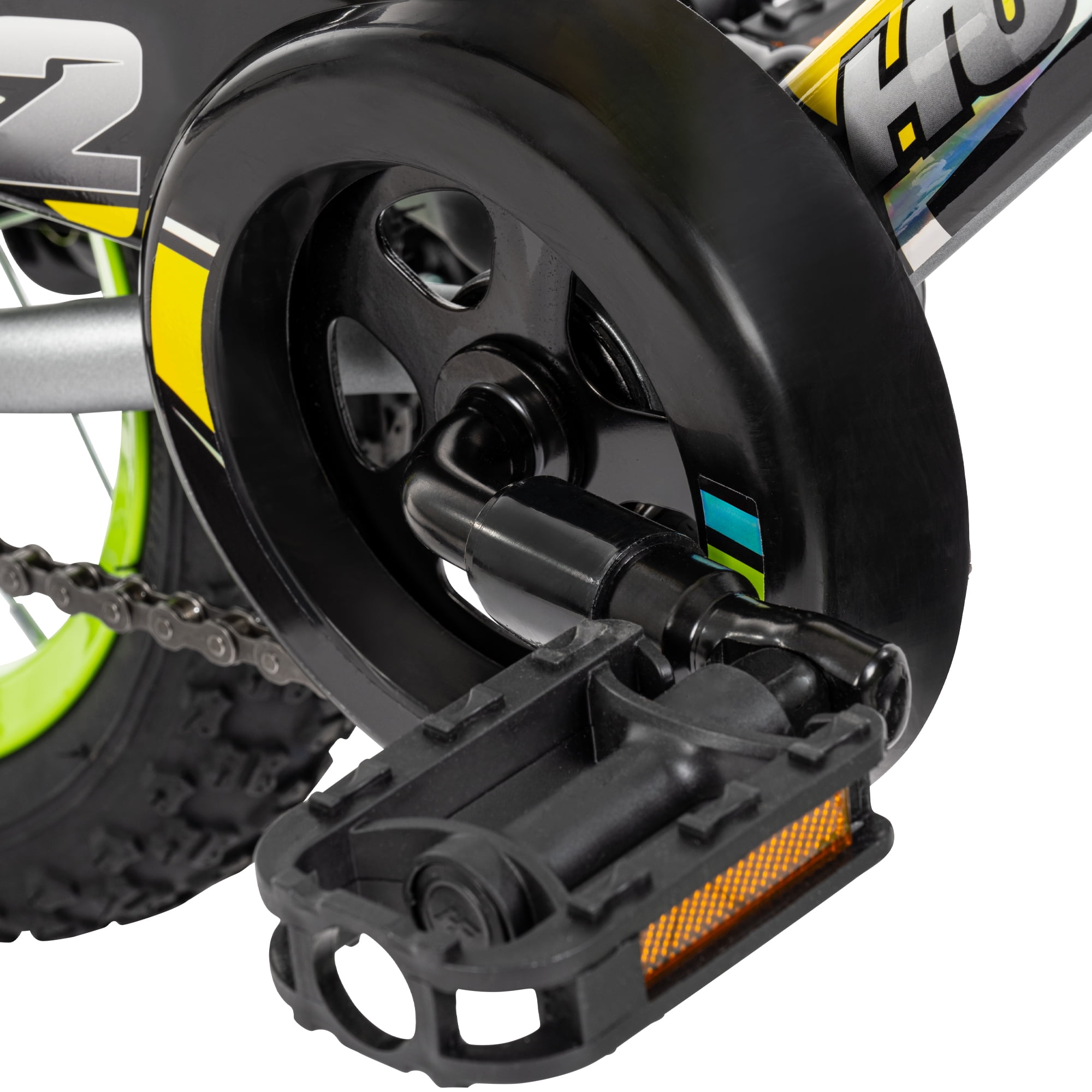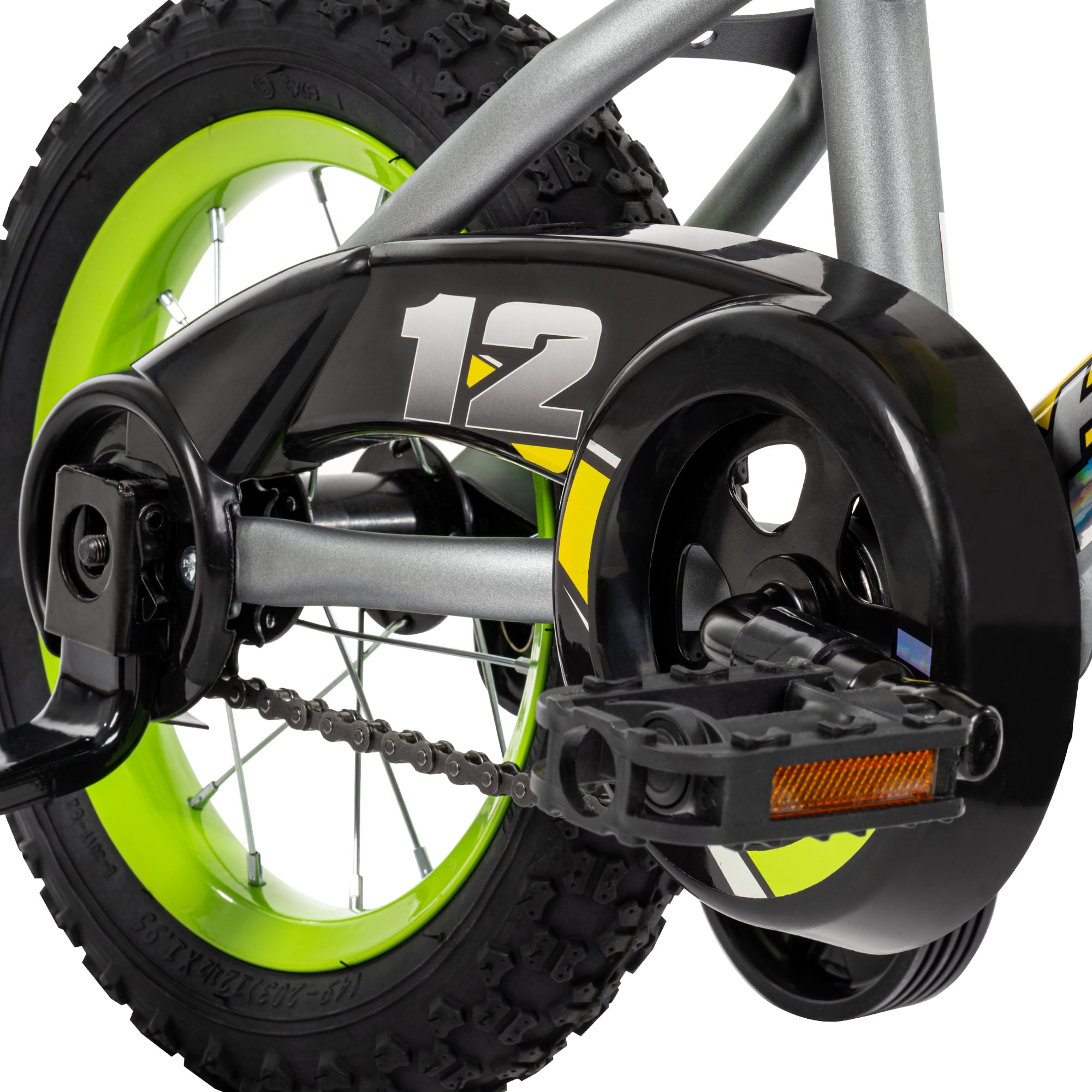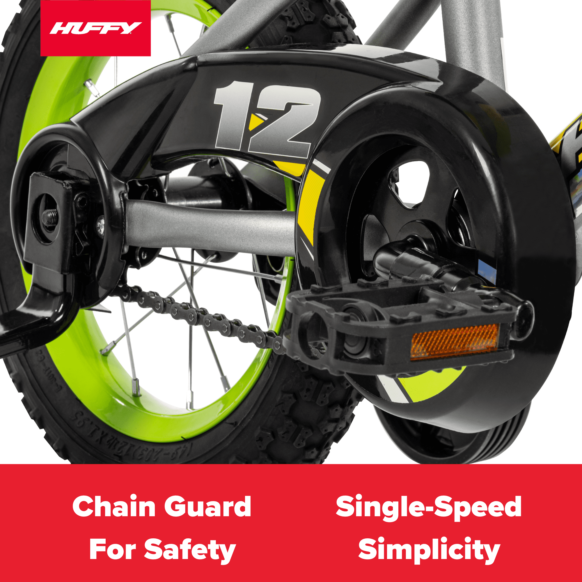 Bold, Rugged Style: Sleek matte gray frame with bright lime accents and racing-inspired graphics for a cool, standout look. Easy Riding: Single-speed design and smooth-rolling tires make pedaling effortless for young riders. Safe Braking: Rear coaster brake allows for simple, easy stopping—just pedal backward to slow down safely. Extra Stability: Removable training wheels provide extra support while helping kids gain confidence as they learn to ride. Comfortable Seat: Adjustable padded seat grows with your child, ensuring a comfy and secure fit for every ride. Durable Frame: Strong steel frame built to handle everyday adventures, offering long-lasting performance. Perfect Fit: Designed for growing riders, with an adjustable seat and training wheels that can be removed when ready. Age Group: 3 to 5 years old. Character Group: Huffy
