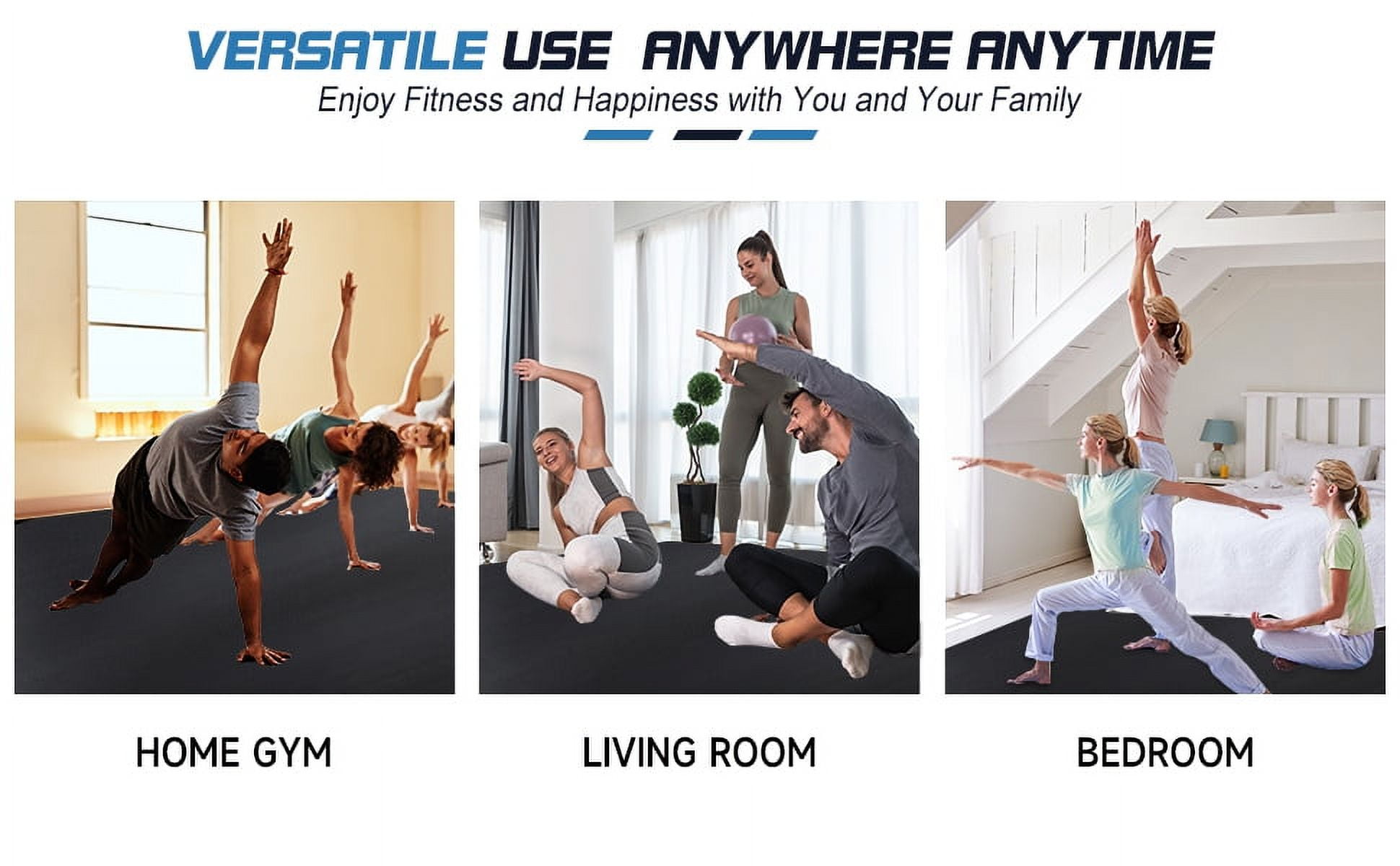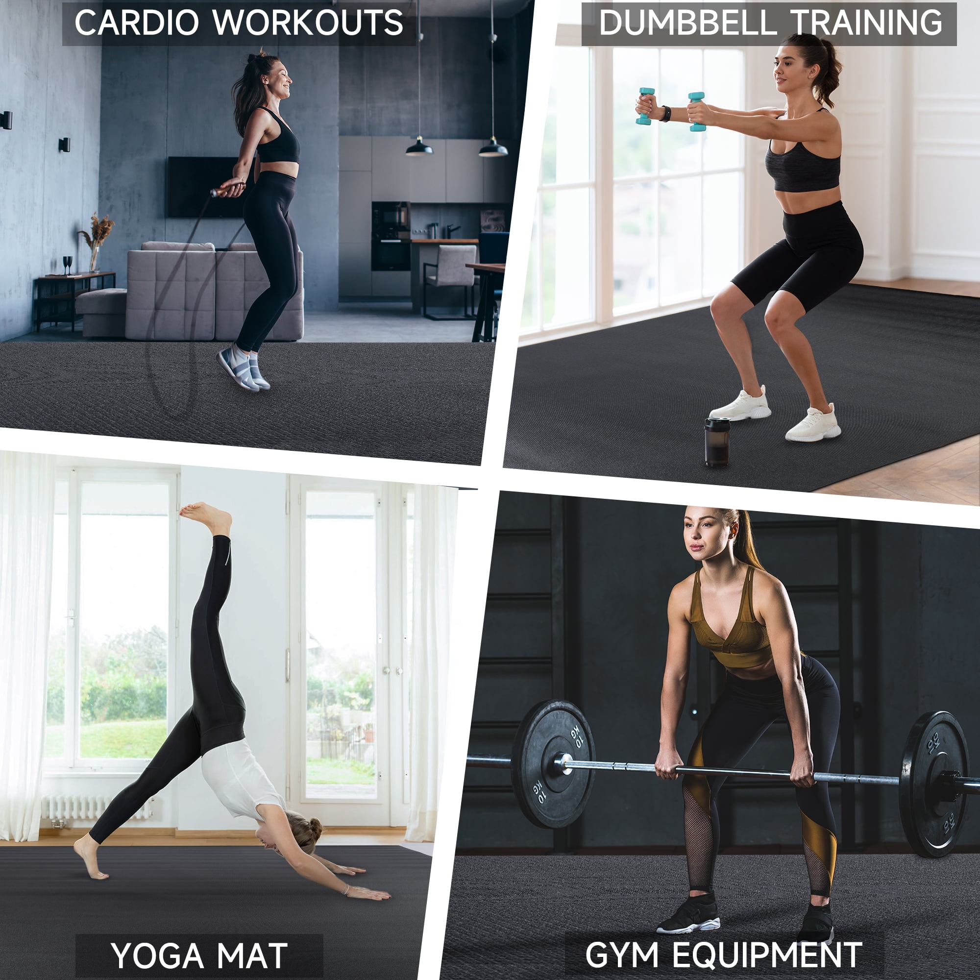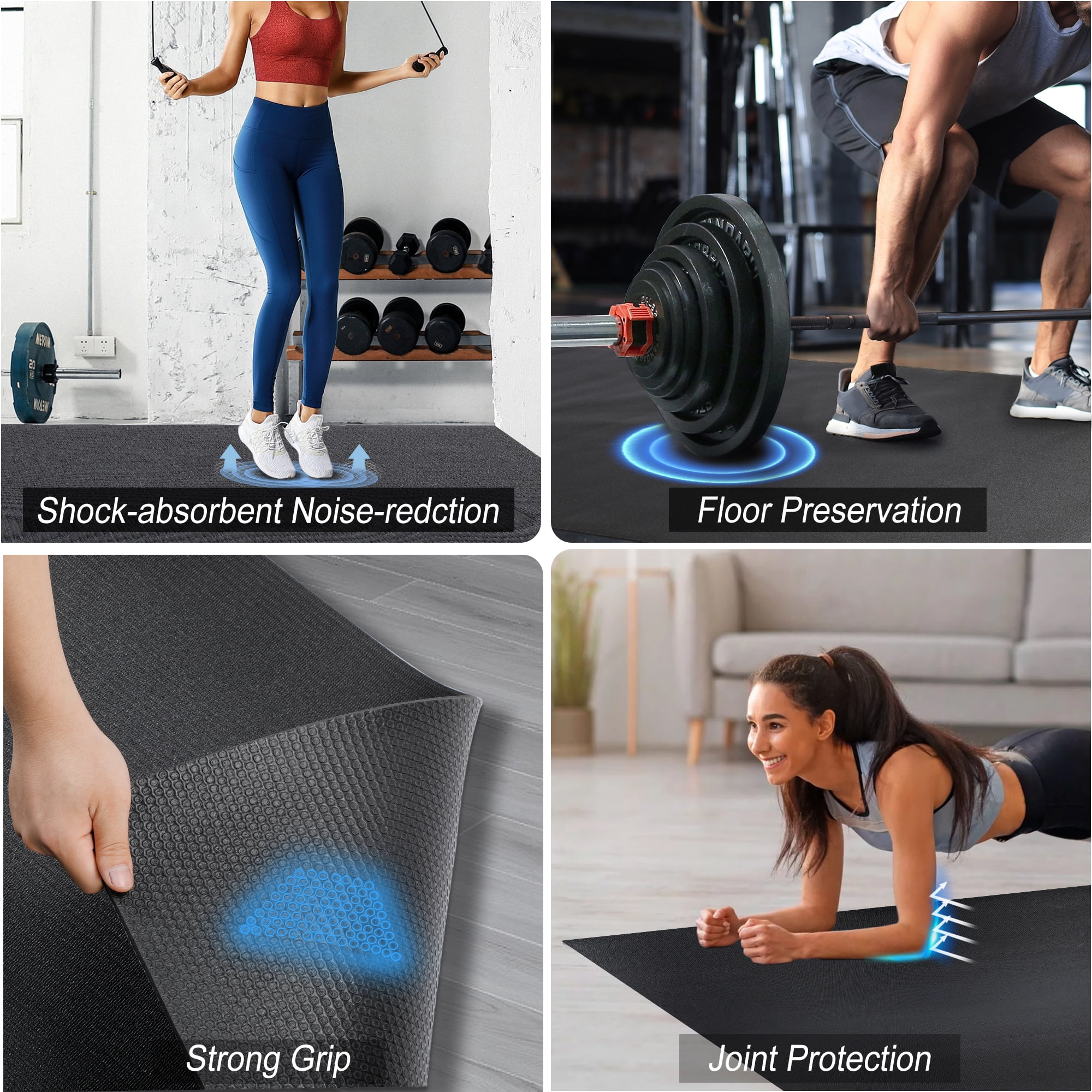 ????【WATERPROOF】The closed cell surface prevents moisture and sweat from penetrating into the pad and creates no odor. When water drips onto the mat, just wipe it gently. ????【UNLIMITED WORKOUT】This premium extra large exercise mat is perfect for fitness enthusiasts who need plenty of space to exercise. The 8’x6’size provides 48 square feet of coverage, allowing you and your partner to exercise comfortably without worrying about too little space. Whether you’re doing cardio, yoga, weight lifting, or other strength training, this mat has you covered. ????【SHOCK ABSORBING COMFORT】This 7mm thick fitness mat uses high-density micro-foam technology, providing excellent cushioning for your palms, knees, wrists and ankles. After many tests, the fitness mat can effectively protect joints during exercise and provide additional support and comfort, greatly reducing the risk of injury. Whether you’re exercising on wood floors, carpet, concrete or tile, this gym mat protects your joints and reduces noise. ????【NON-TOXIC AND SAFE TO USE】The extra large exercise mat is made of high-quality materials and is free of latex, phthalates and silicone. Our fitness mats come with storage bags and Straps for easier storage. The safe and comfortable exercise mat can also be used as a fitness equipment mat, jump rope mat and dance mat. You can place it in your garage, basement, living room, bedroom and anywhere else in your home. Unfold the exercise mat to turn any room into a home gym. ????【UPGRADED WEAR-RESISTANT AND ANTI-SLIP DESIGN】Double-sided design, the front anti-tear layer can withstand the jumping movement of shoes, and the bottom anti-slip dot design provides maximum grip to ensure that the mat will not move during strenuous exercise. The shoe-friendly surface allows you to work out on your home fitness mat with or without shoes.