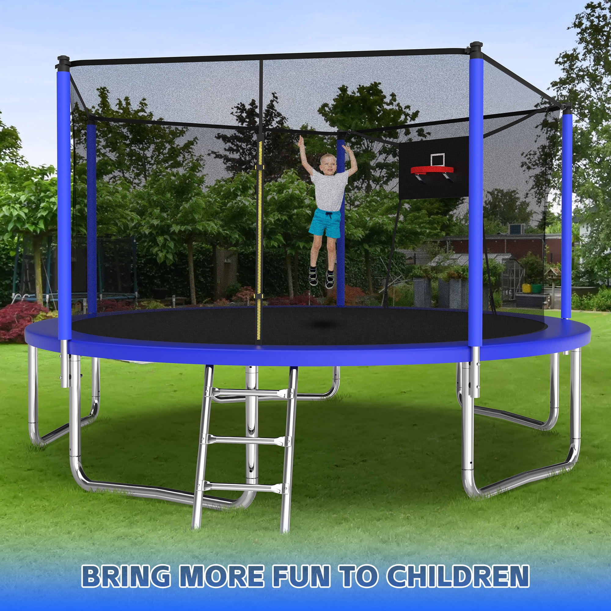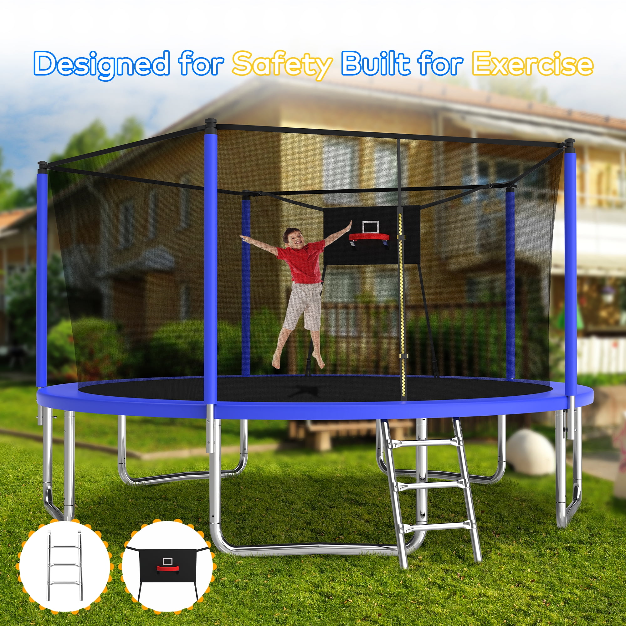 14ft Trampoline with Basketball Hoop,Outdoor Trampoline with with Enclosure Net,Heavy-Duty Backyard Trampoline for Adults and Kids,Blue