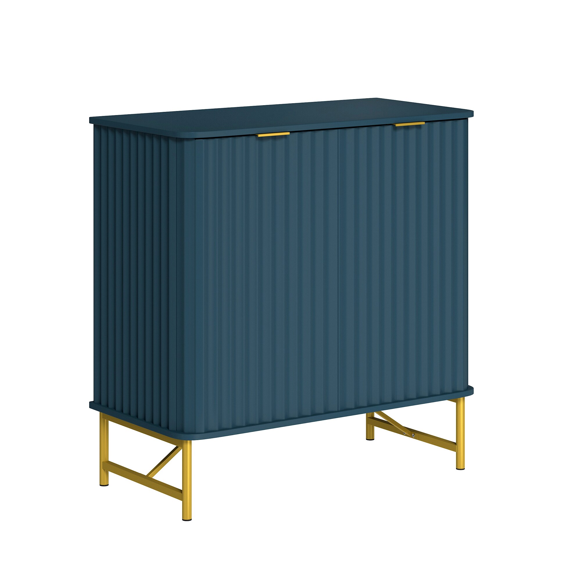 This is a two-doors storage cabinet available in 4 colors. Surface is designed with distinct layers of geometric lines to enhance the sense of fashion, and the rounded design of the edges ensures beauty while improving safety. The base has strong metal legs, and beams are added to help improve stability.