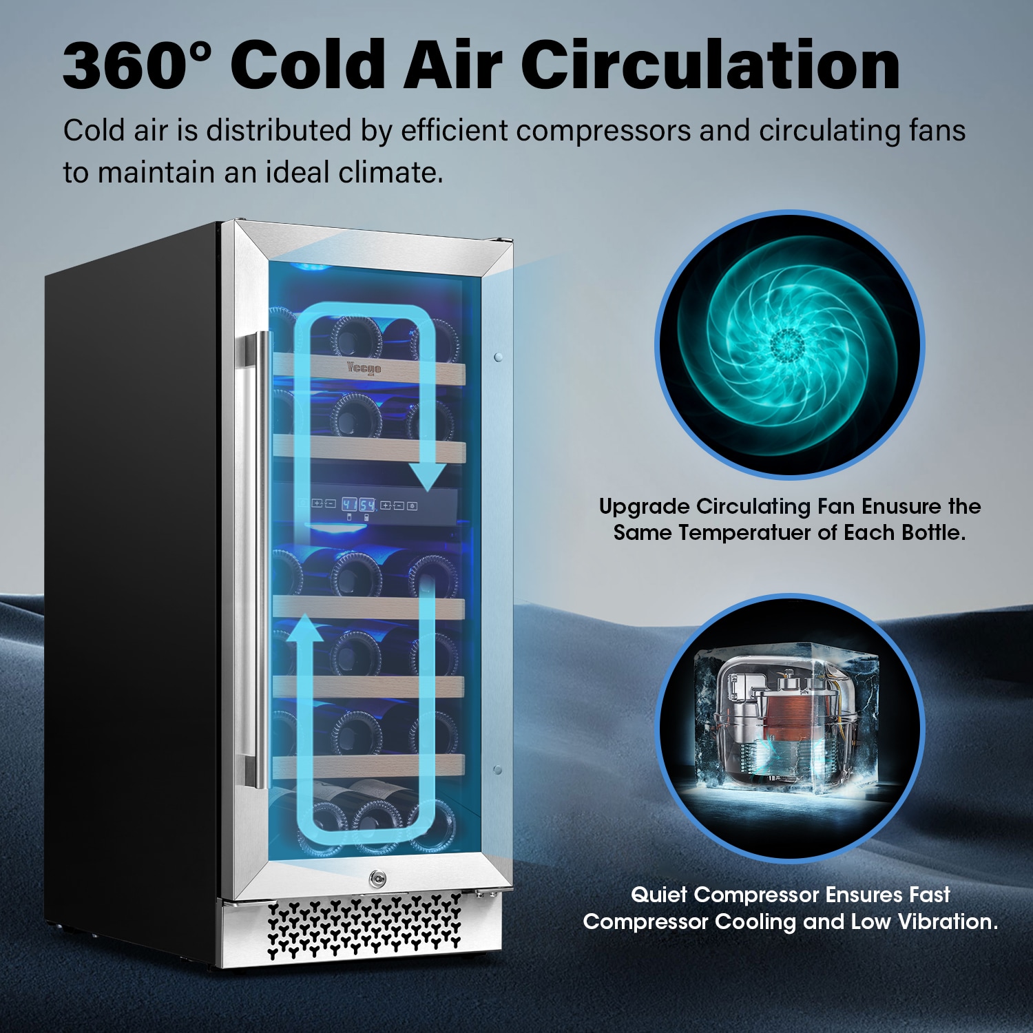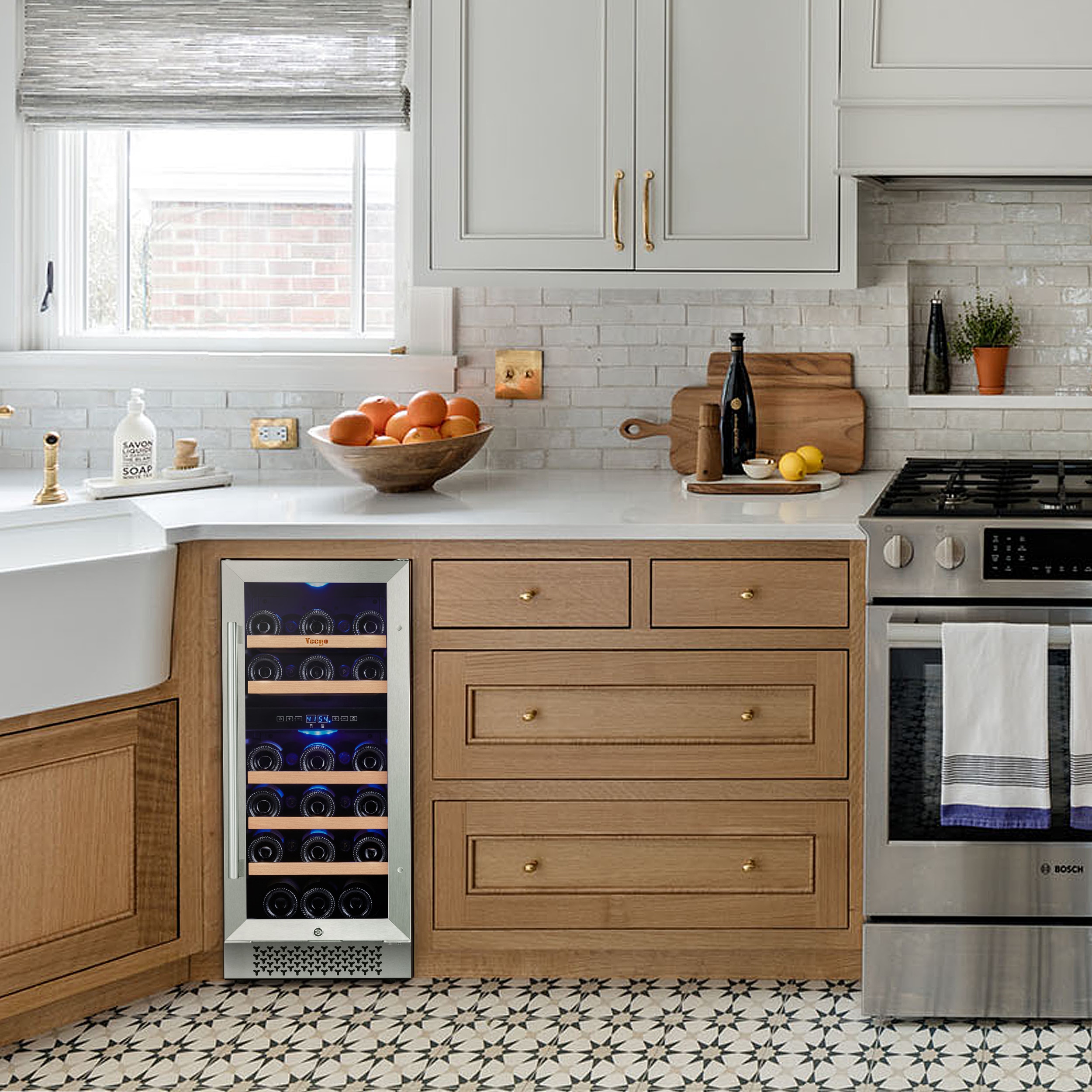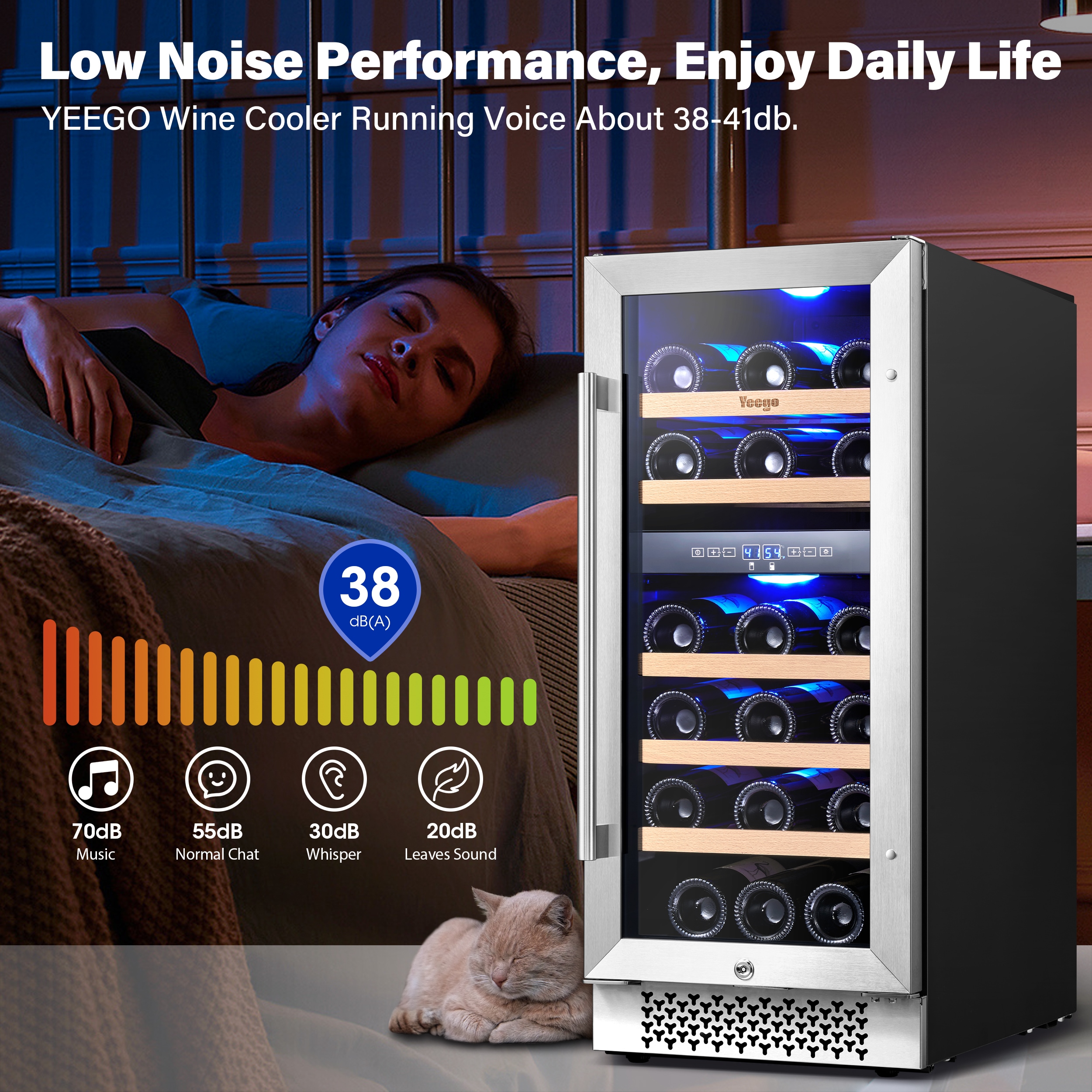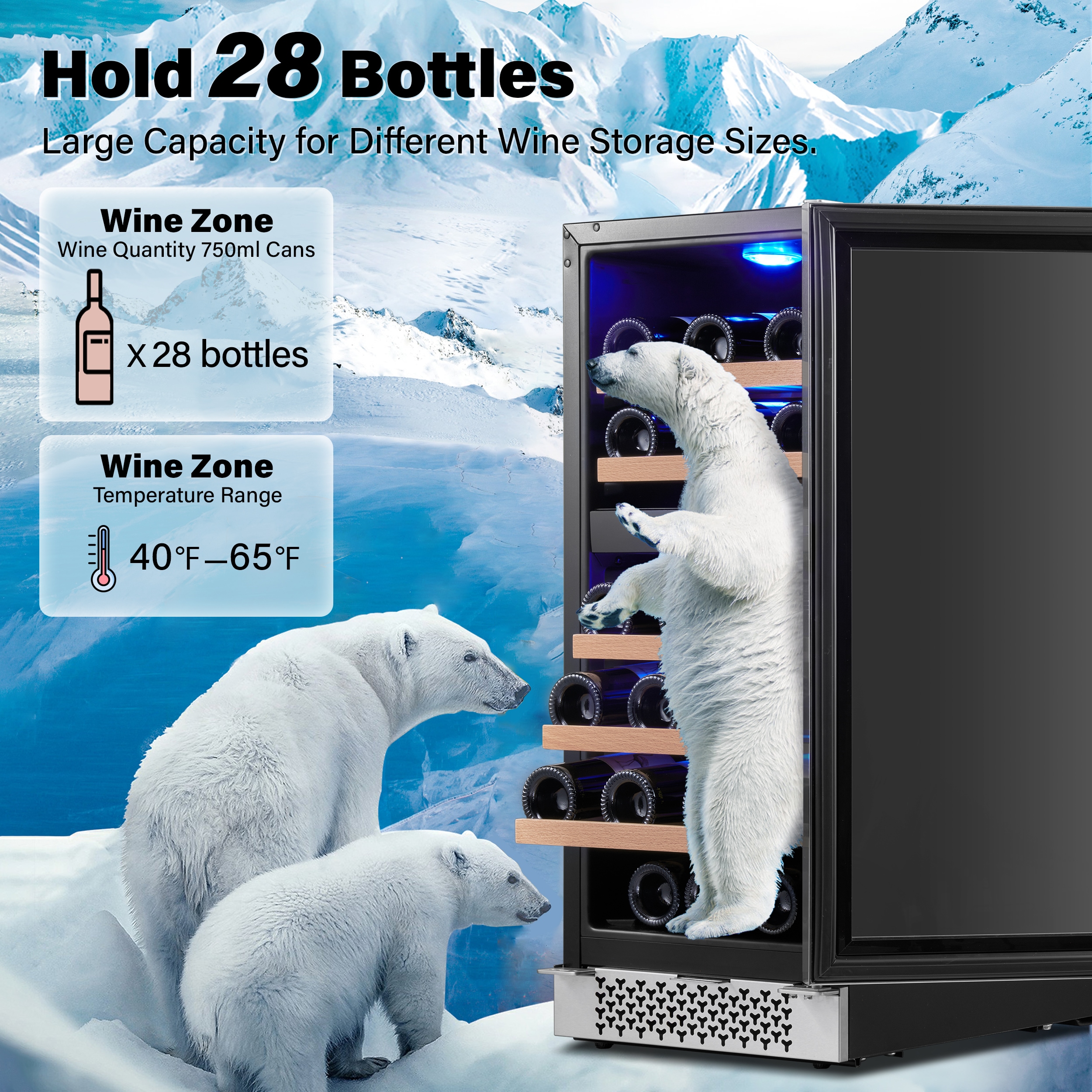 Yeego dual zone 15 in. wine fridge, under counter/built-in 28-bottle wine cooler refrigerator with upgraded compressor fits large bottles low noise reversible tempered glass door with safety lock. The dual-zone control makes it suitable for virtually any type of wine. With 5 removable premium wire-wood shelves that slide smoothly and are strong enough to hold your bottles. This wine refrigerator features automatic defrosting and an active charcoal filtration system to ensure air purity and maintain an odor-free cabinet for your wine storage. with intelligent and sensitive digital control that can be adjusted from 40-65 Fahrenheit to provide you with the best taste. Yeego wine cooler is the best Christmas gift for the family.