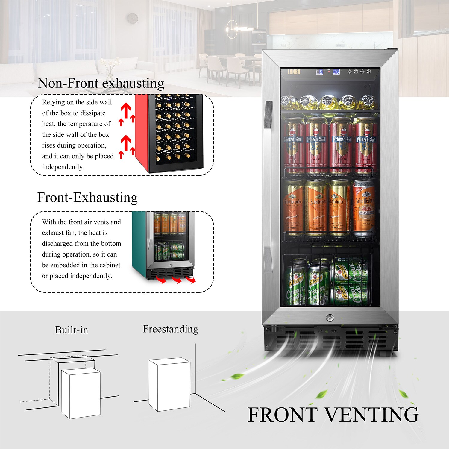 Keep chilled drinks close at hand for your big game nights with this under counter compressor beverage fridge. It is no installation required and easy to set up. Small size but offers high-capacity storage. Built-in or Freestanding installation style are both suitable. It can be put in any tight spare space of your house.
