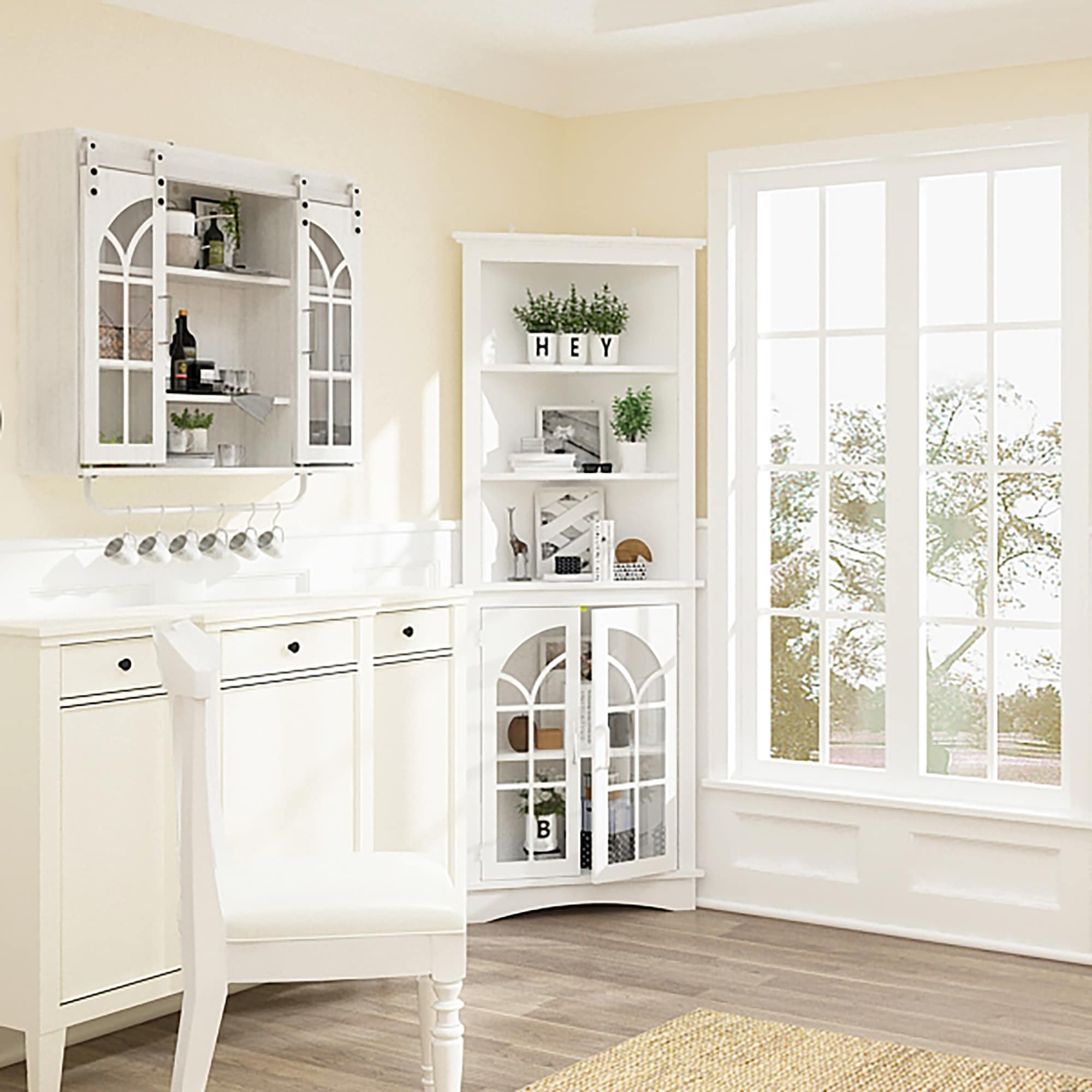 The elegant appearance, antiqued glass cabinets, and clean lines show rustic features. Besides this, the tall cabinet is changeable for various styles, bookcases/storage cabinets/display shelves/buffet cupboards.