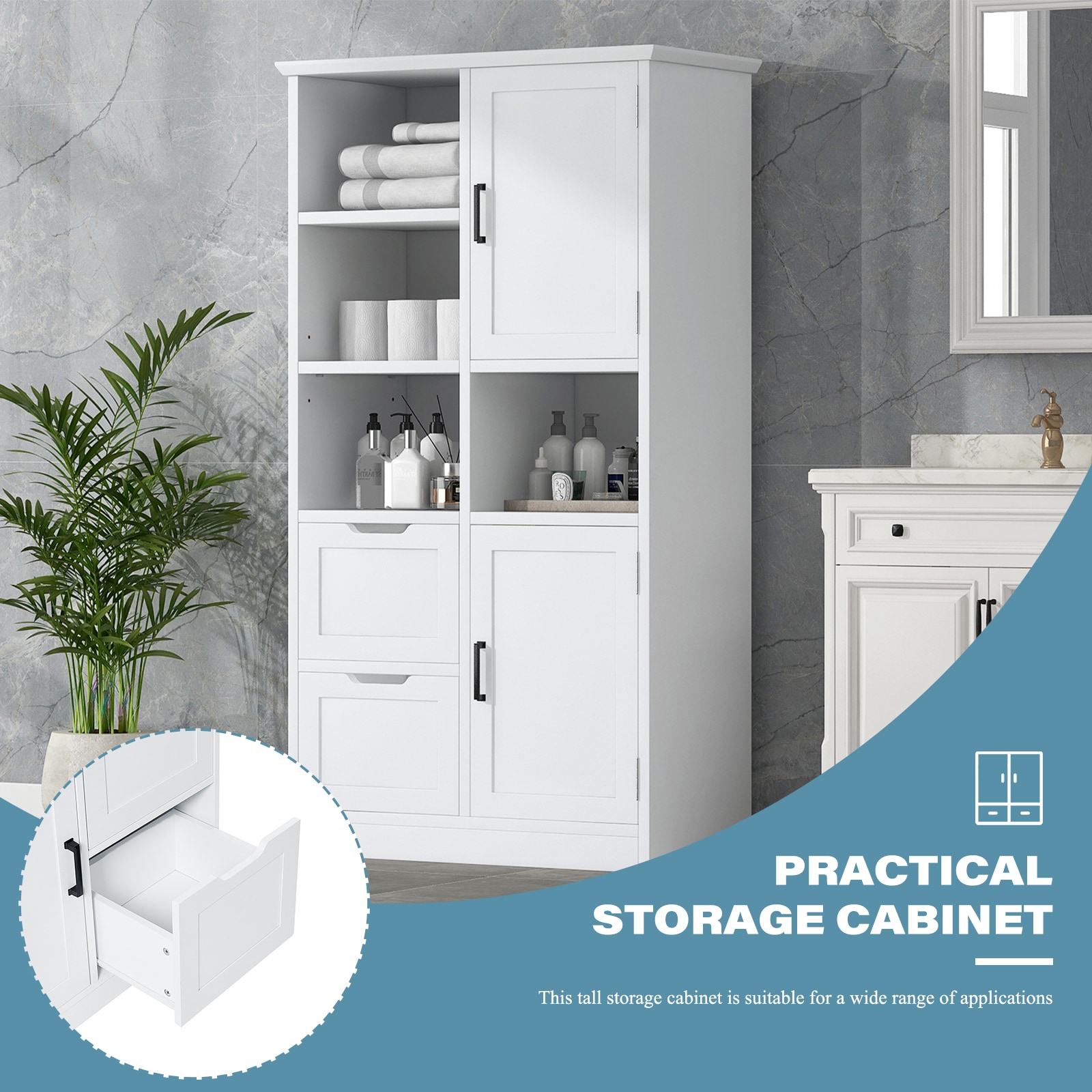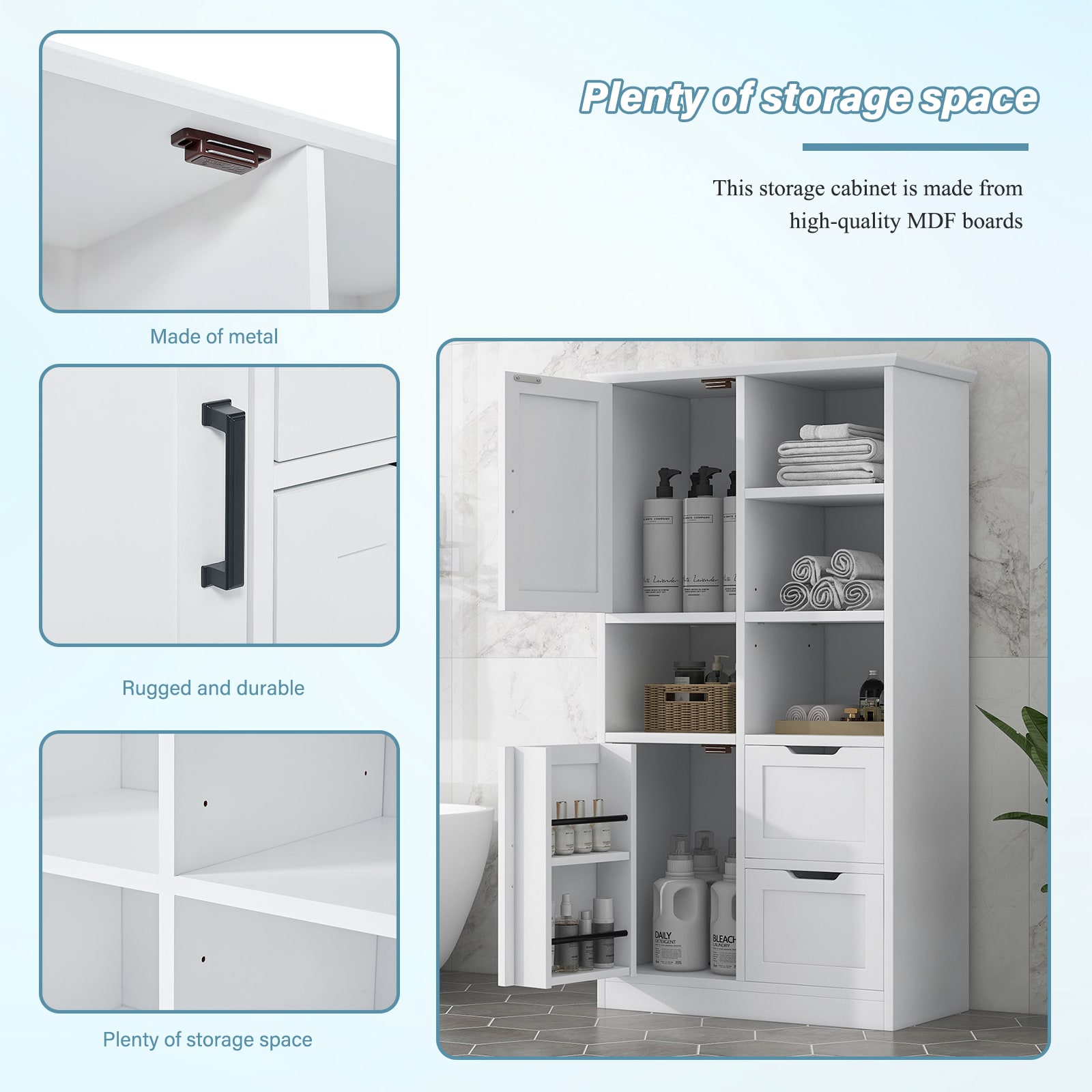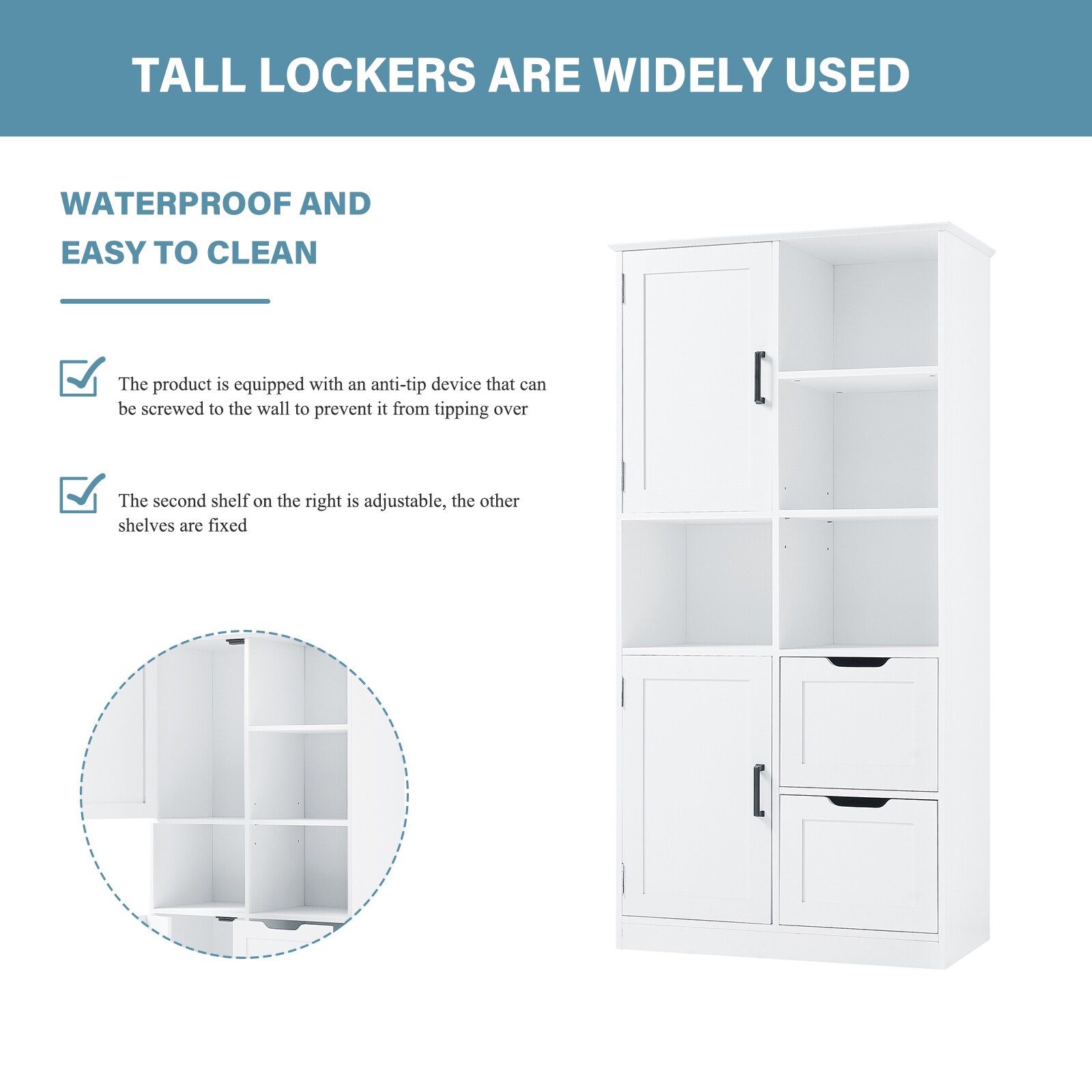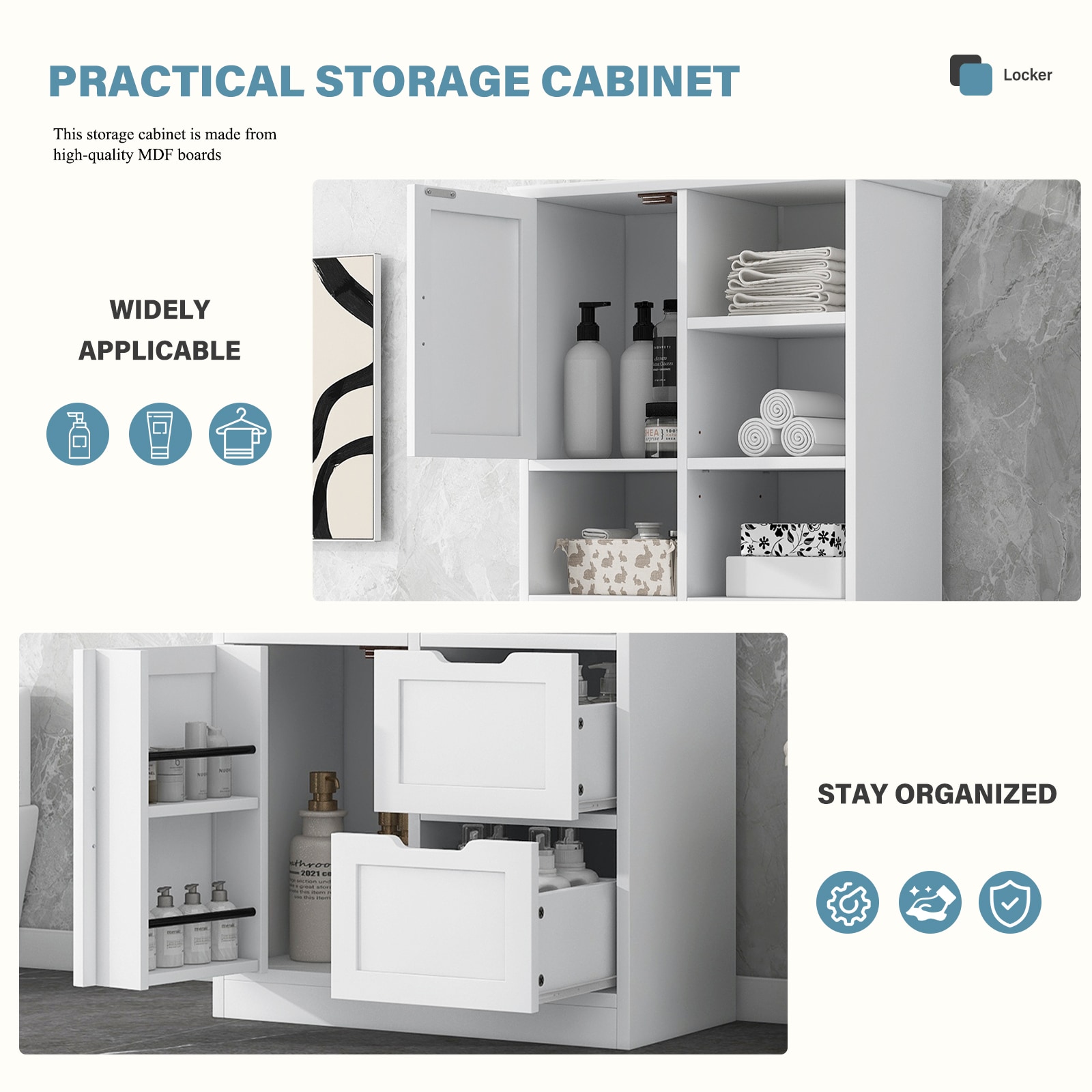 Upgrade your storage with our exceptional storage cabinet! Made of high-quality MDF, it’s durable and easy to maintain. Enjoy ample storage space with adjustable shelves for all your items. It’s incredibly versatile, suitable for offices, bathrooms, and more. The anti-tipping device ensures safety, while the easy installation process saves you time and effort. With its sleek design, it’ll enhance the look of any room. Don’t miss out on this must-have storage solution!