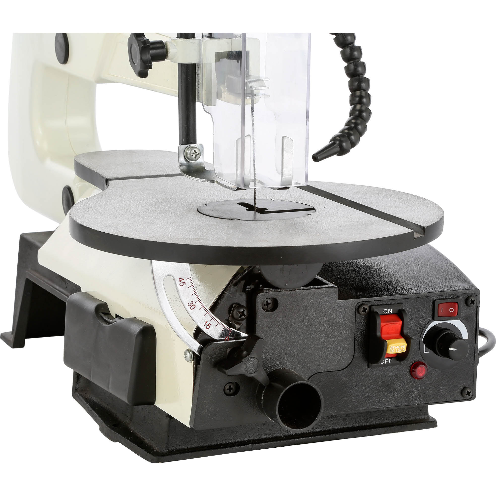Package Contents: Saw, foot pedal, rotary attachment, work light