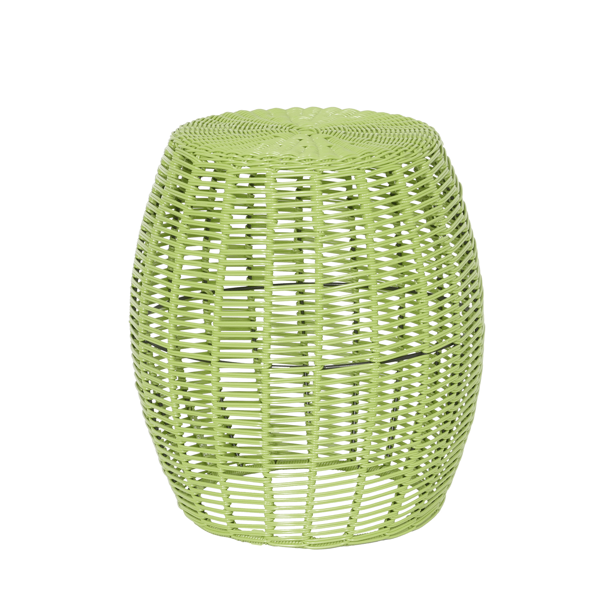 Step up your game in styling your outdoor decor by bringing both classy aesthetics and convenient function to your space. Standing 18 inches tall and measuring 16 inches in diameter, this resin wicker accent piece makes a perfect plant stand, ottoman, or end table for your patio, deck, or living room. For added support and strength, the table is braced with a hidden metal frame to help preserve and maintain its signature shape and durability. This lovely white resin wicker table comes as one solid piece and is ready for display the day it arrives at your home, with no assembly required.