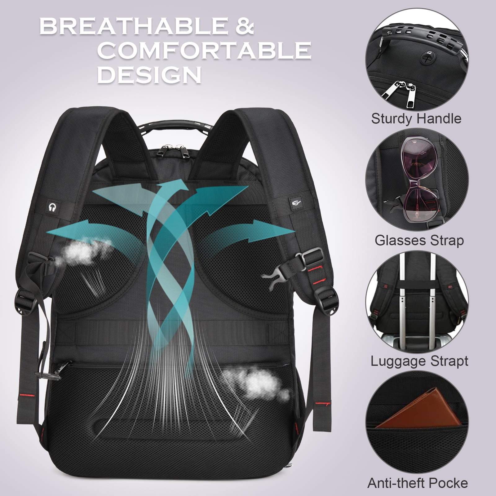 ✈TSA FRIENDLY & LUGGAGE STRAP: Unfolds the backpack freely 180 degrees making you quickly through the airport security, exclusive designed for airplane traveling. Unleash the pressure on your shoulders and make your journey easier by attaching the backpack to the trolley case of the luggage strap. Served as durable large backpack, large laptop bag or large backpacks for high school, you can use it at anywhere for International travel ,camping, hiking and overnight trip. ✈EXTRA LARGE CAPACITY & ANTI-THEFT: 65L oversized backpack is perfect for international travel. It can holds all travel stuffs you need and also have room for travels gifts while back to home. The oversized anti-theft pocket on the back of the backpack makes it easy to put your phone and wallet in.Design of an air-flow back padding system and a secret pocket ensures great comfort and safety in your journey. ✈USB CHARGING & WATER RESISTANT: External USB port with set-in charging cable offers convenient charging your cellphone and other electronic devices everywhere. A hole for headphone outside gives easy access to Earphone usage. The travel backpack made of water-resistant sturdy polyester fabric and heavy-duty zippers, which can withstand harsh conditions and heavy use. A rugged handle with steel cable on the top is easy for you to carry with one hand. ✈COMFORTABLE BACK DESIGN & CHEST STRAP: With Back U-shaped three-dimensional ventilation design help for the air convection. Both sides of the shoulder strap with lanyard design can hang sunglasses and pendants. Adjustable chest strap brings the shoulder straps in tighter to the chest,helps you lock your backpack in place securely, prevents the shoulder straps from falling off. And it is an ideal present for men or women fathers day gift and Chrismas of peace of mind, fashion.