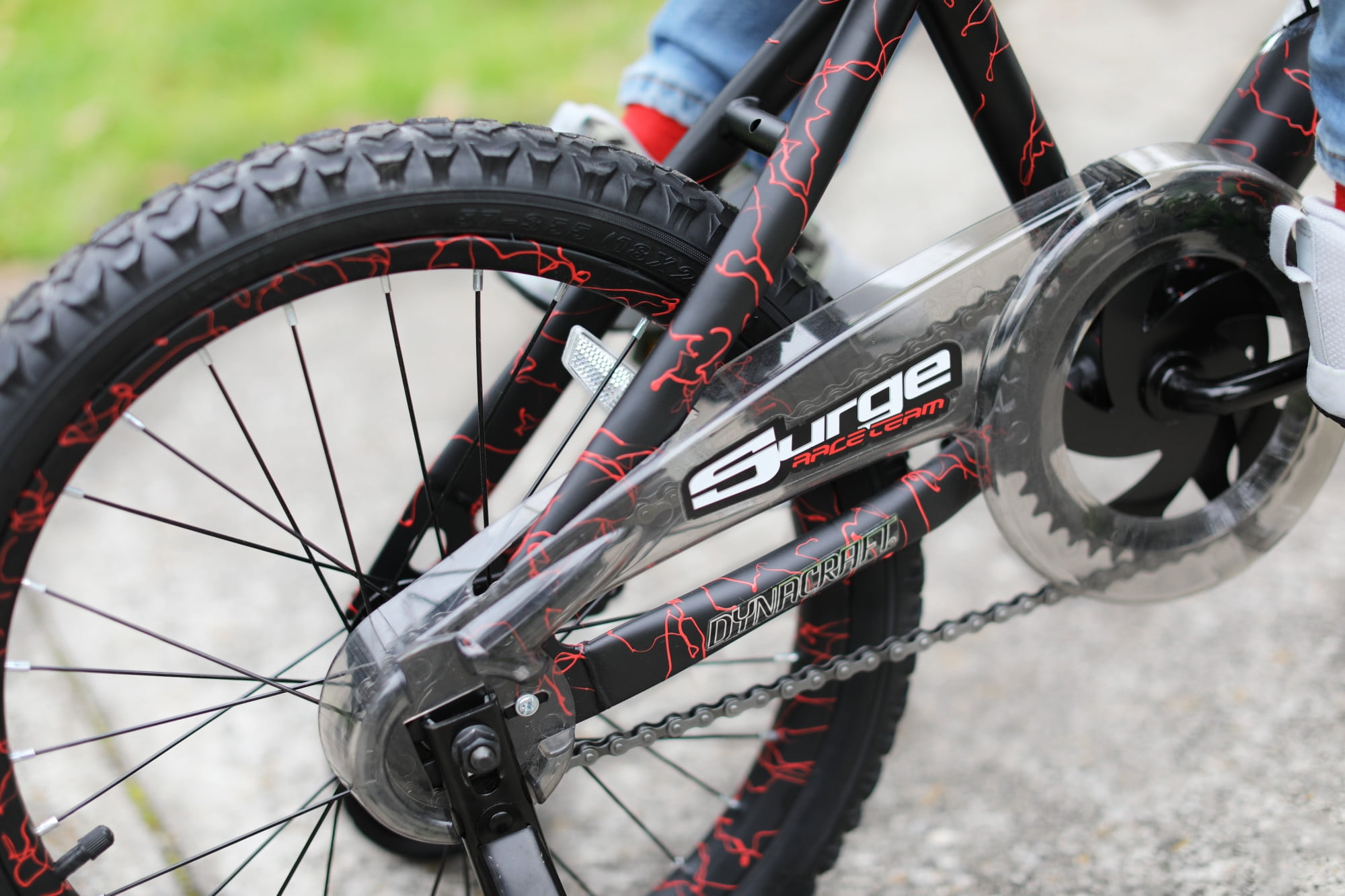 The Next 18-inch Surge Boy’s BMX Bike by Dynacraft is the perfect choice for young adventurers who love to ride. With its deluxe red and black paint finish and custom graphics, this bike is sure to turn heads as your little one explores the neighborhood. Equipped with removable/adjustable training wheels, this bike gives kids the confidence they need to hit the road and have fun. The solid steel BMX frame, front caliper brake and rear coaster brake ensure a safe and easy ride, while the single-speed design provides plenty of power for cruising on flat surfaces or tackling small hills. Give your child the gift of freedom and adventure with the 18-inch Surge Boys BMX Bike.