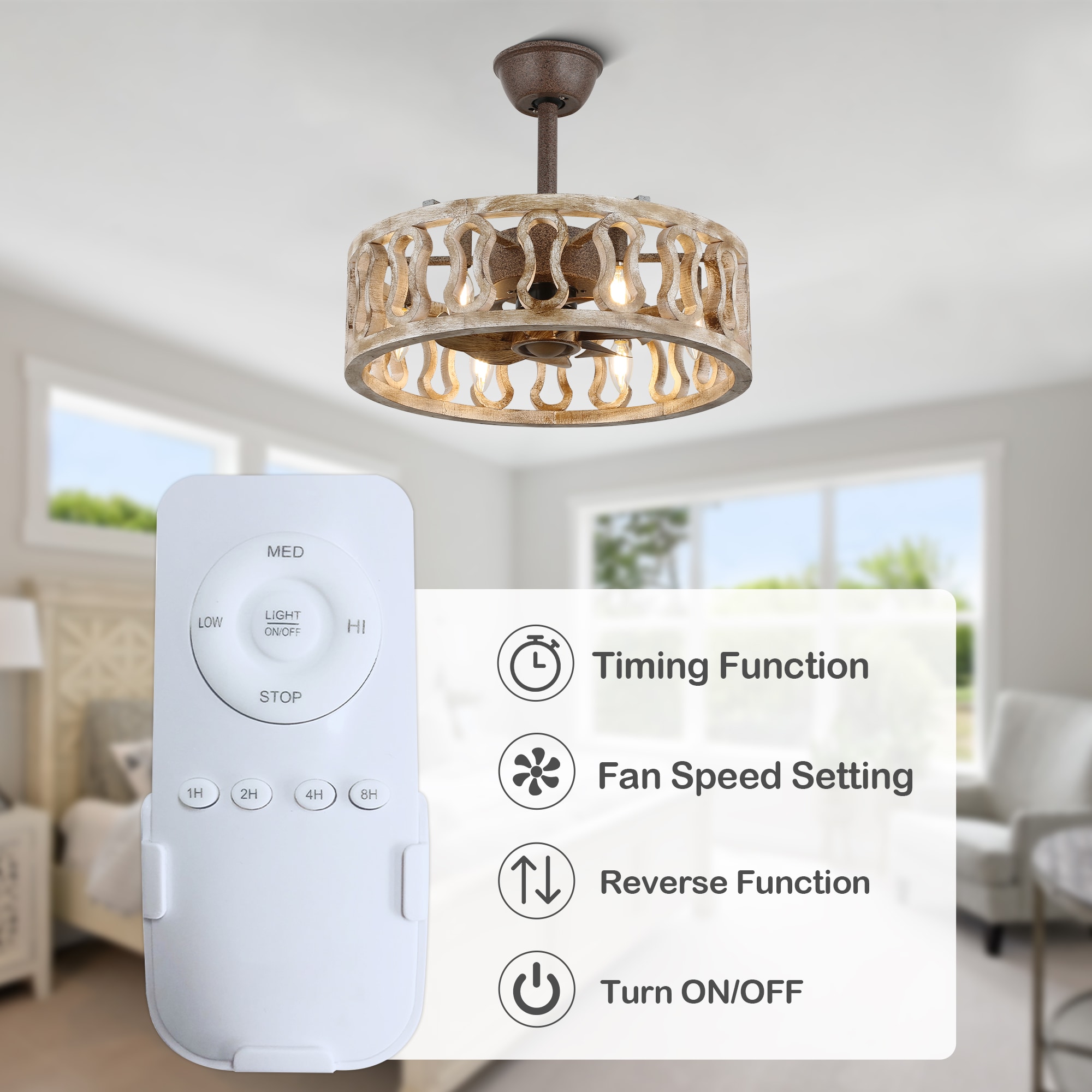Embrace the essence of a tropical breeze with this natural rattan brown cage ceiling fan, a rustic yet elegant addition to any indoor space. Its design evokes the warmth of a serene tropical escape and is equally at home on an indoor porch or covered patio. While the fan cools your surroundings, it also supports 4 E12 base bulbs to brighten your space with a soft, ambient glow (bulbs not included). Perfect for enhancing the ambiance of dining rooms, covered decks and kitchens, this small cage fan combines function with a timeless aesthetic.