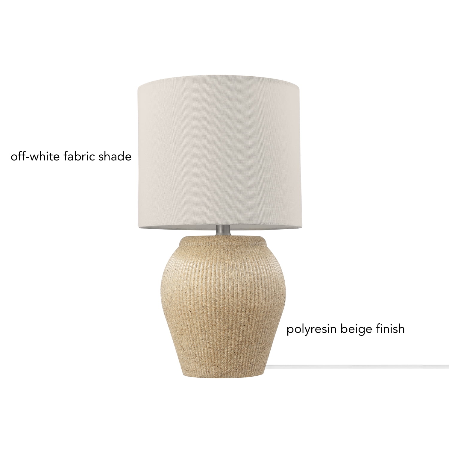 18″ Soft Beige Ceramic Table Lamp with White Linen Shade