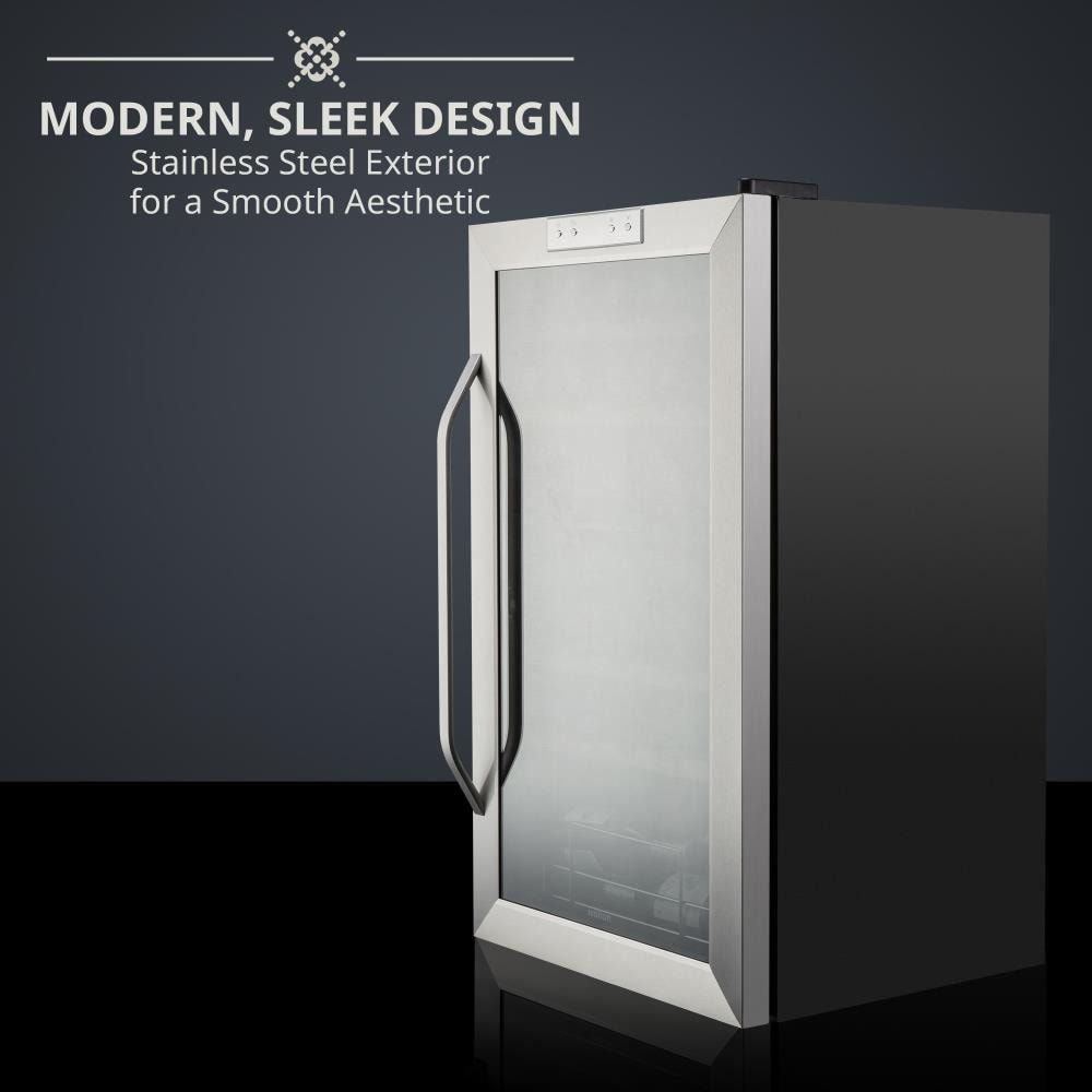 This 33 bottle freestanding wine cooler from Ivation is the next best thing to having a real wine cellar in your own home. Protect and preserve the flavor and aroma intended for your collection by keeping harmful UV rays out and maintaining an optimal environment for your wines to age with grace. It includes a dual zone temperature and easy to use touch controls. The advanced compressor cooling system delivers the optimal environment for those special vintages, preserving their unique flavor and delicacy.
