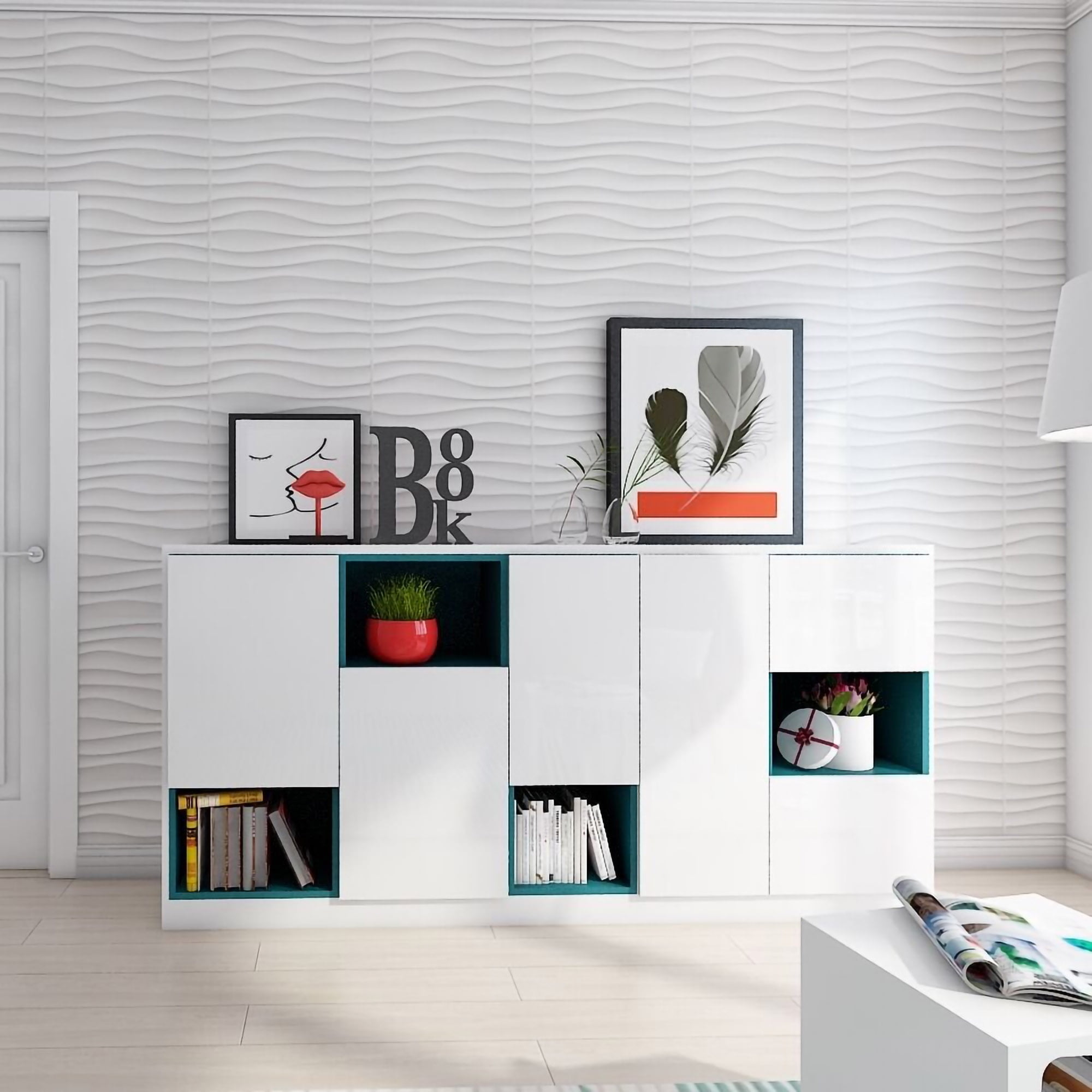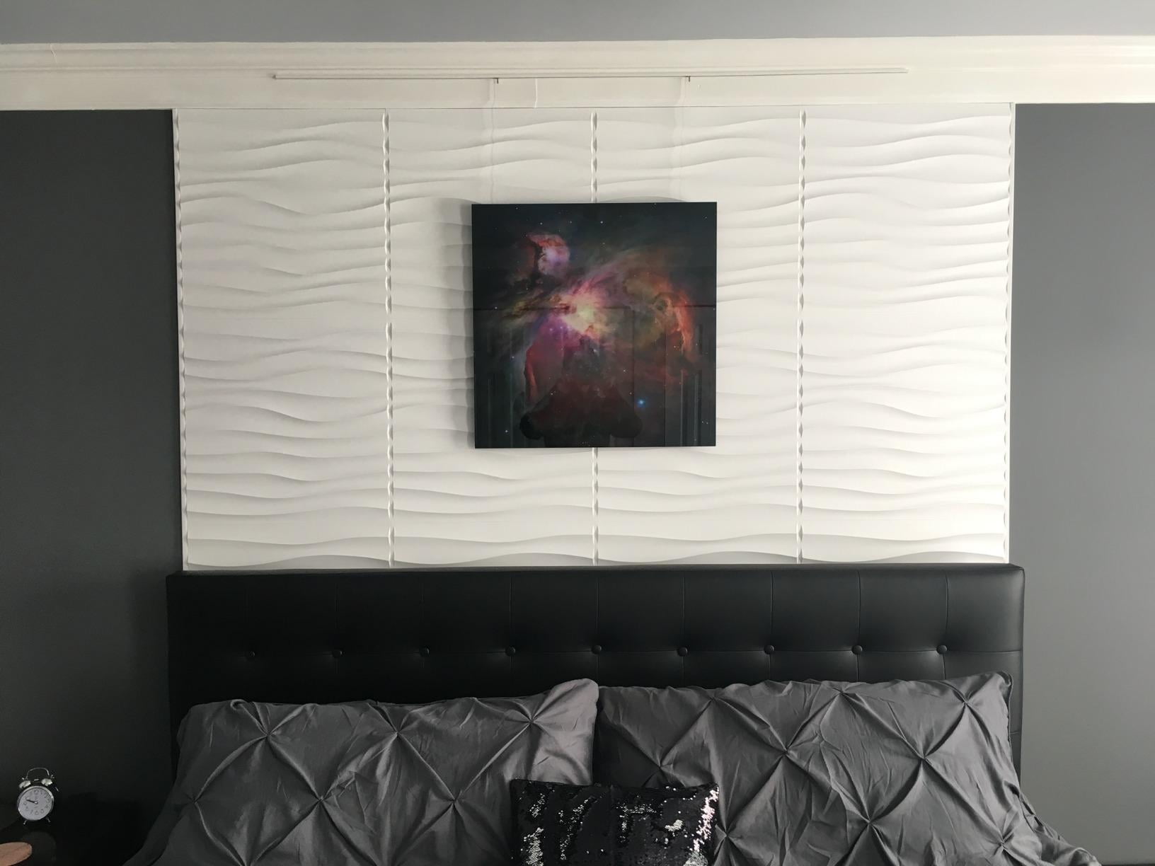 Art3d Wave Design 19.7 in. x 19.7 in. PVC 3D Wall Panel (12-Pack) Such as living room, bedroom, kitchen room, TV background, feature walls and ceiling in house decoration they are great solutions to ugly, stubborn problematic wall, ceiling or any surface that needs covering. Made of PVC material, which is easy to clean, heat-resistant.